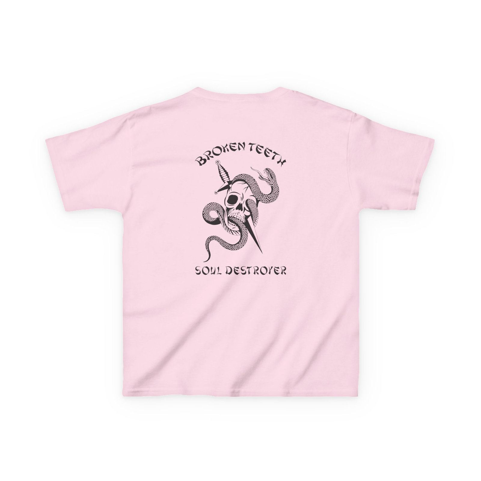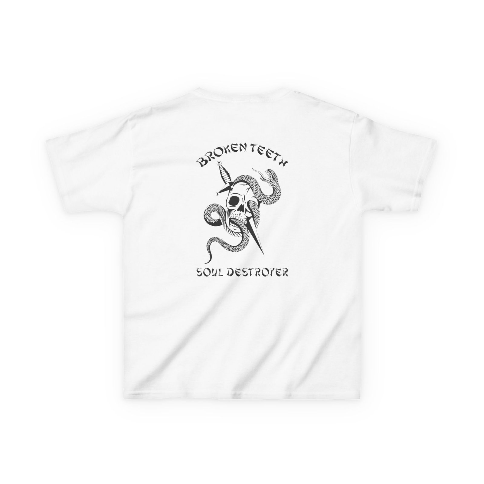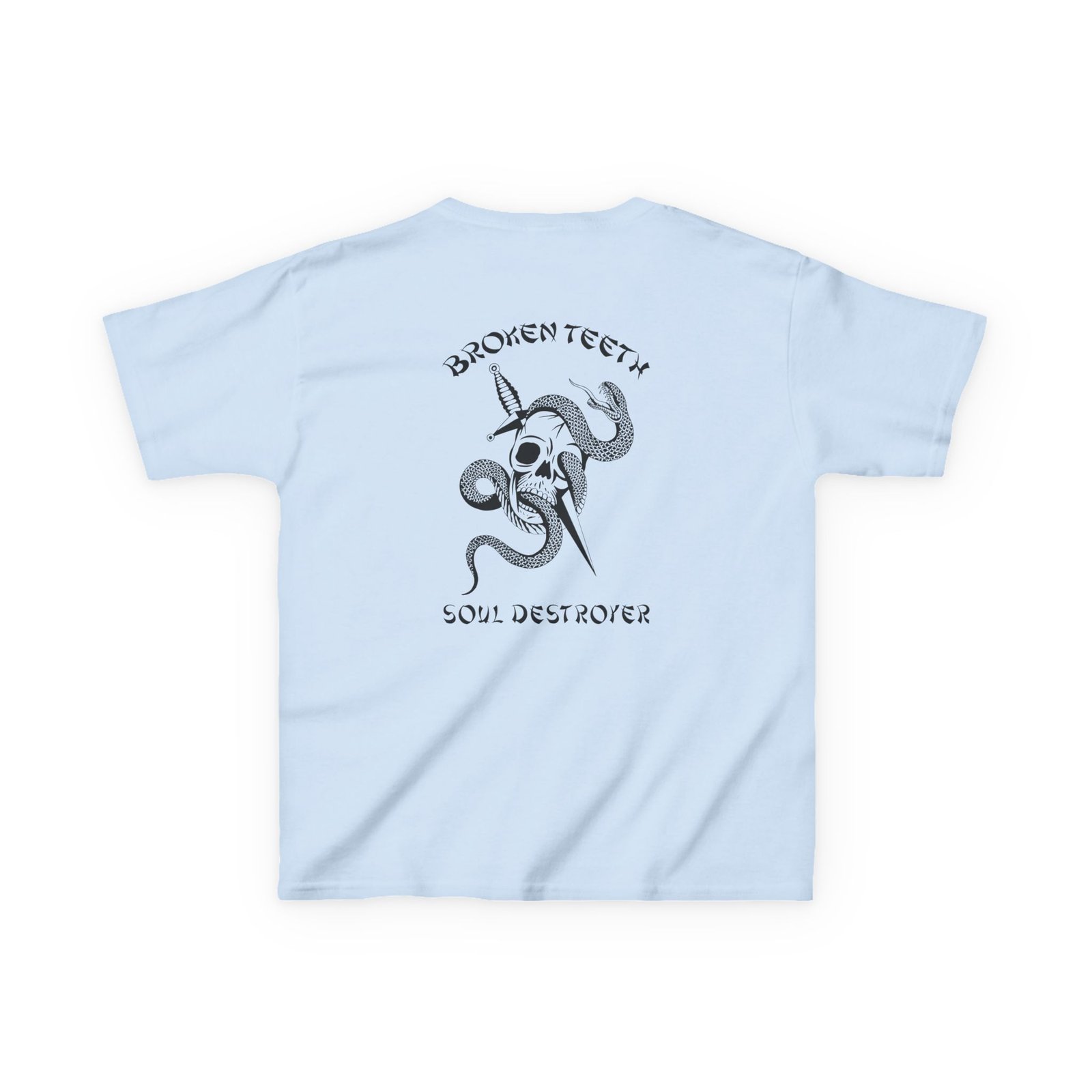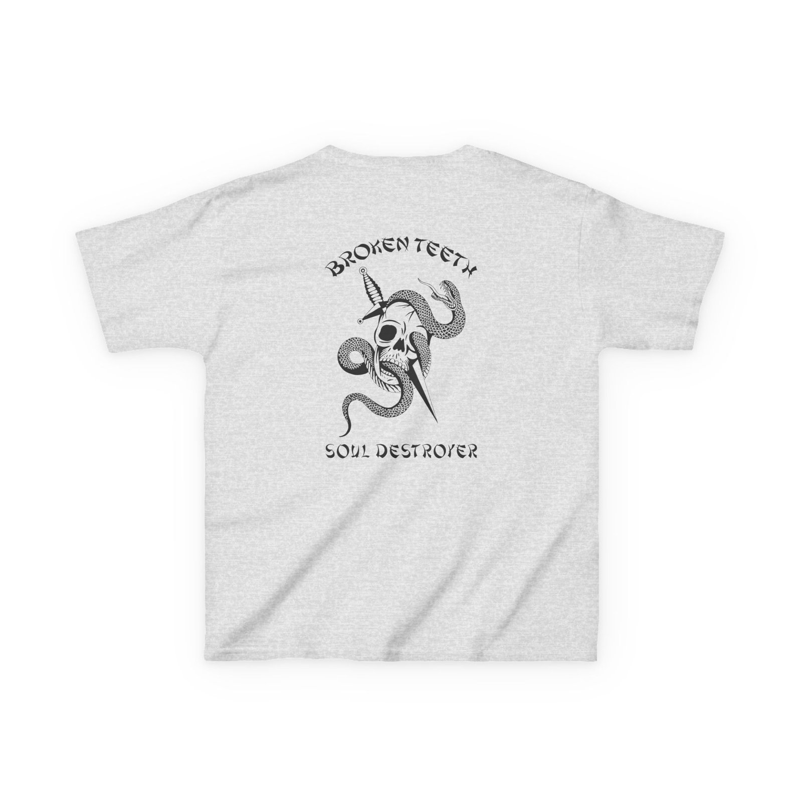 This kids Broken Teeth Soul Destroyer tee brings playful fruit-card humor to everyday wear. The soft midweight cotton keeps active little ones comfy through playground antics and quiet storytime alike, while the bold front graphic—two banana card illustrations with the cheeky caption about Gros Michel and Cavendish varieties—adds a wink of botanical nostalgia. The classic crew neck and relaxed cut move with kids, and tear-away labels and ribbed collar keep irritation low. Ethically sourced, REACH- and Oeko‑Tex‑certified materials mean you can feel good about a shirt built for repeated washes and season-to-season wear. It sits easily under jackets or on its own for warm days and brings a lighthearted, nerdy flair to family outings, school events, or casual weekends.