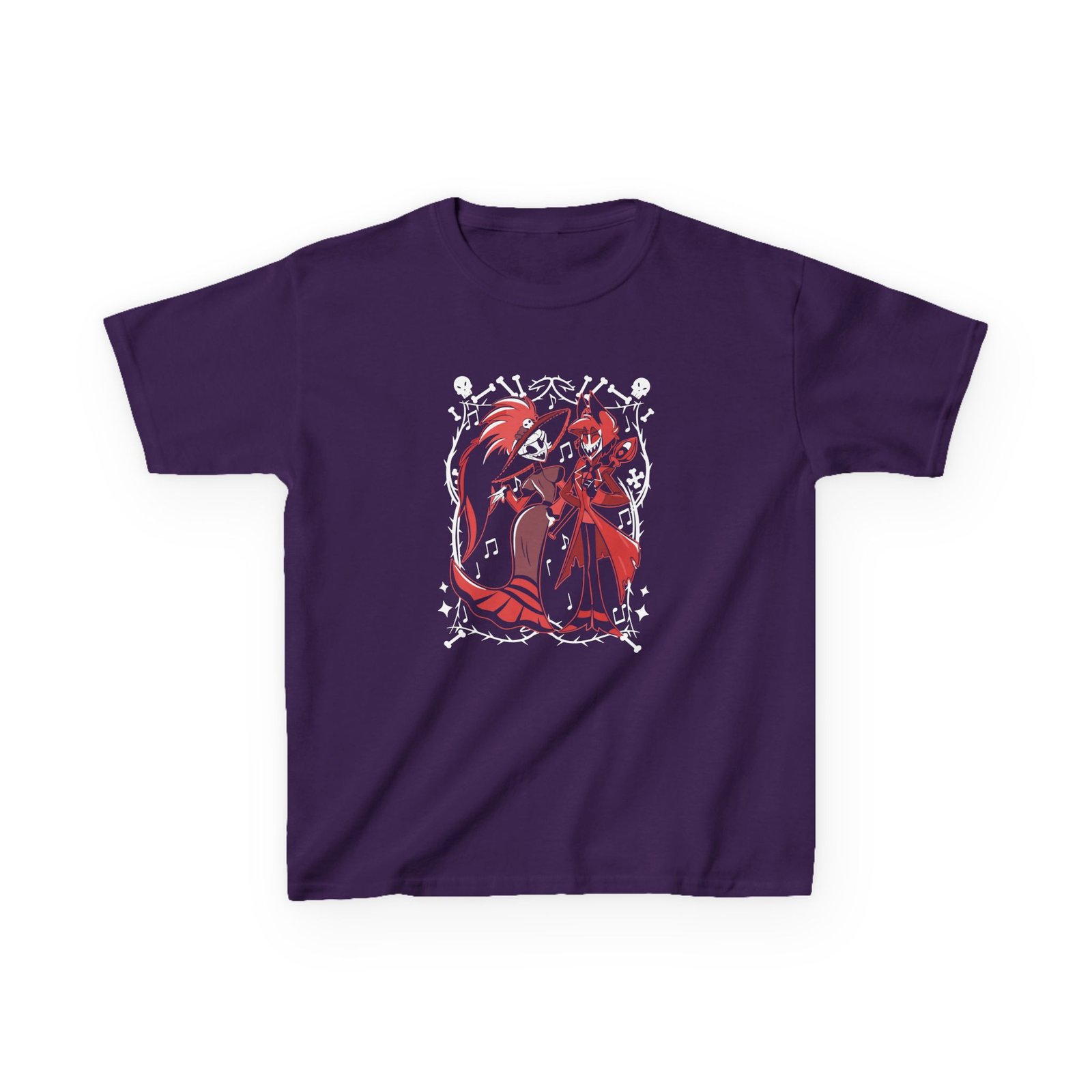 This kids Hazbin Hotel Rosie & Alastor Ace tee brings playful fruit-card humor to everyday wear. The soft midweight cotton keeps active little ones comfy through playground antics and quiet storytime alike, while the bold front graphic—two banana card illustrations with the cheeky caption about Gros Michel and Cavendish varieties—adds a wink of botanical nostalgia. The classic crew neck and relaxed cut move with kids, and tear-away labels and ribbed collar keep irritation low. Ethically sourced, REACH- and Oeko‑Tex‑certified materials mean you can feel good about a shirt built for repeated washes and season-to-season wear. It sits easily under jackets or on its own for warm days and brings a lighthearted, nerdy flair to family outings, school events, or casual weekends.