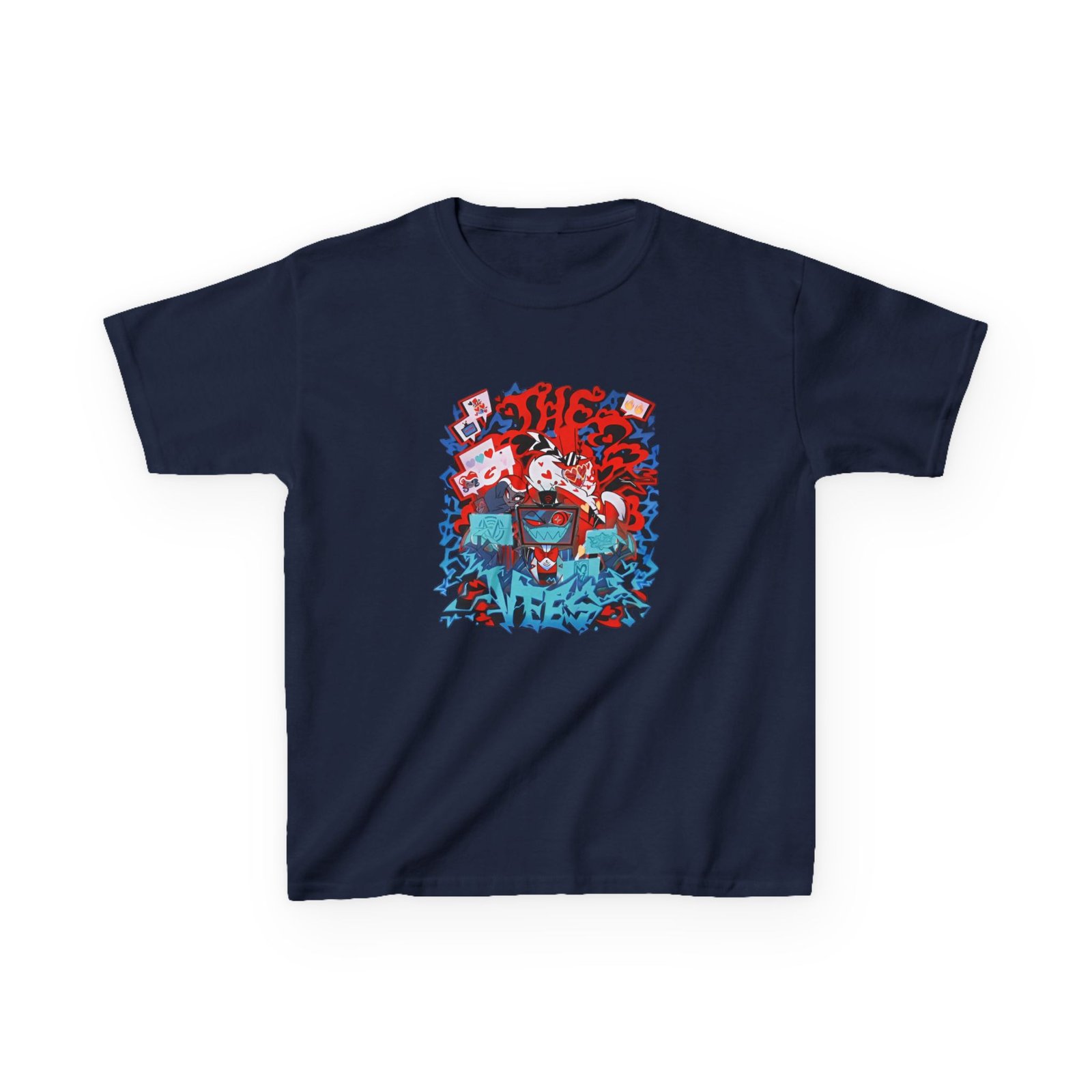 This kids Hazbin Hotel the Vees tee brings playful fruit-card humor to everyday wear. The soft midweight cotton keeps active little ones comfy through playground antics and quiet storytime alike, while the bold front graphic—two banana card illustrations with the cheeky caption about Gros Michel and Cavendish varieties—adds a wink of botanical nostalgia. The classic crew neck and relaxed cut move with kids, and tear-away labels and ribbed collar keep irritation low. Ethically sourced, REACH- and Oeko‑Tex‑certified materials mean you can feel good about a shirt built for repeated washes and season-to-season wear. It sits easily under jackets or on its own for warm days and brings a lighthearted, nerdy flair to family outings, school events, or casual weekends.
