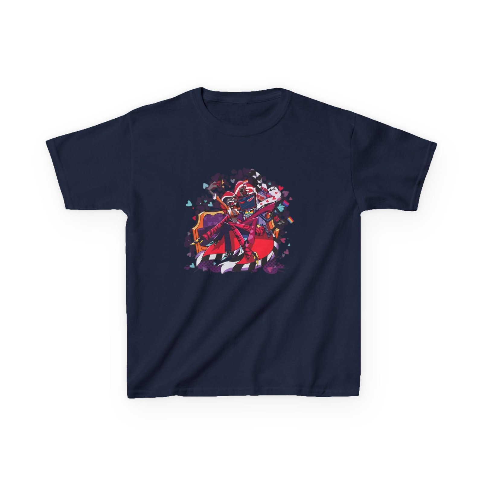 This kids Hazbin Hotel the Vees Pride tee brings playful fruit-card humor to everyday wear. The soft midweight cotton keeps active little ones comfy through playground antics and quiet storytime alike, while the bold front graphic—two banana card illustrations with the cheeky caption about Gros Michel and Cavendish varieties—adds a wink of botanical nostalgia. The classic crew neck and relaxed cut move with kids, and tear-away labels and ribbed collar keep irritation low. Ethically sourced, REACH- and Oeko‑Tex‑certified materials mean you can feel good about a shirt built for repeated washes and season-to-season wear. It sits easily under jackets or on its own for warm days and brings a lighthearted, nerdy flair to family outings, school events, or casual weekends.