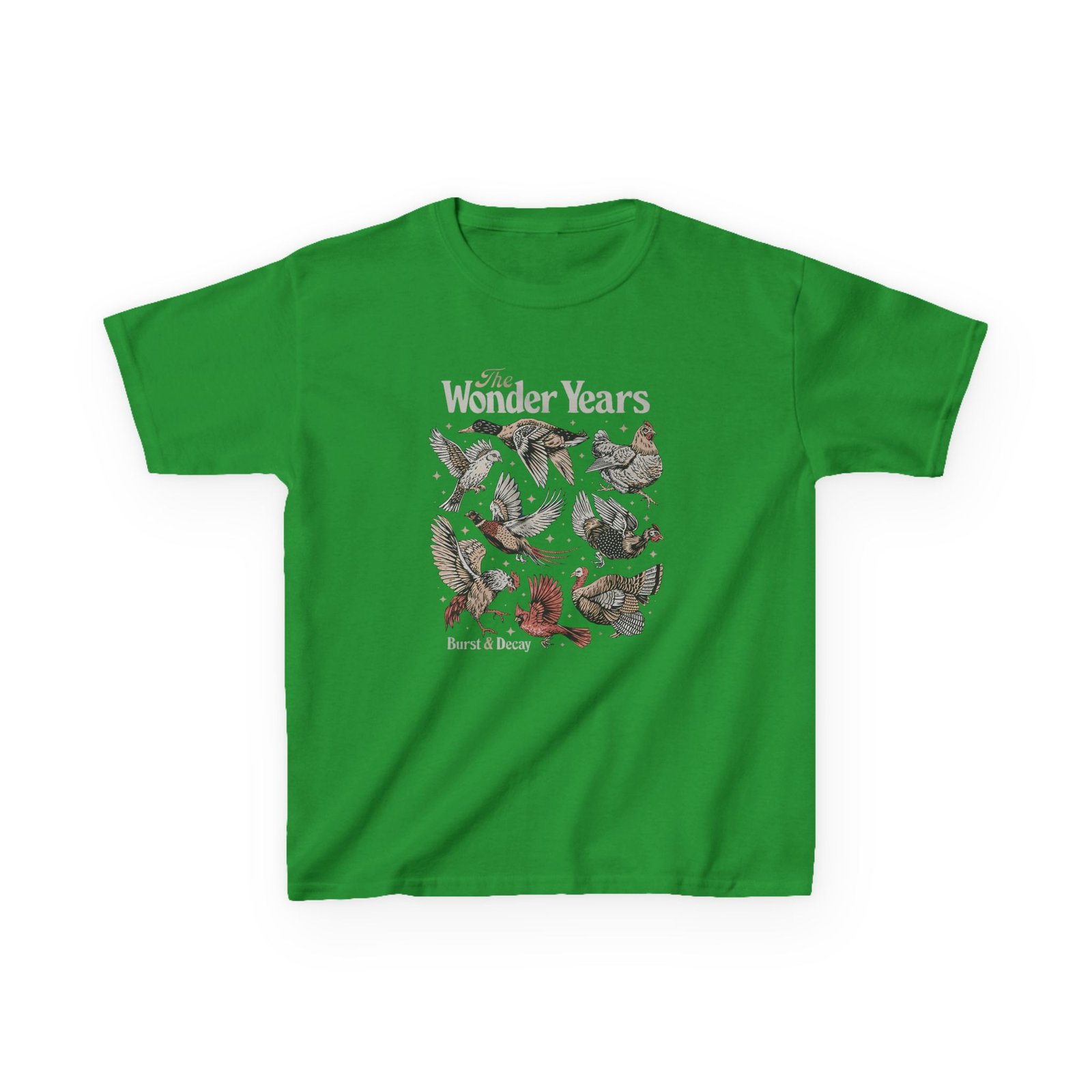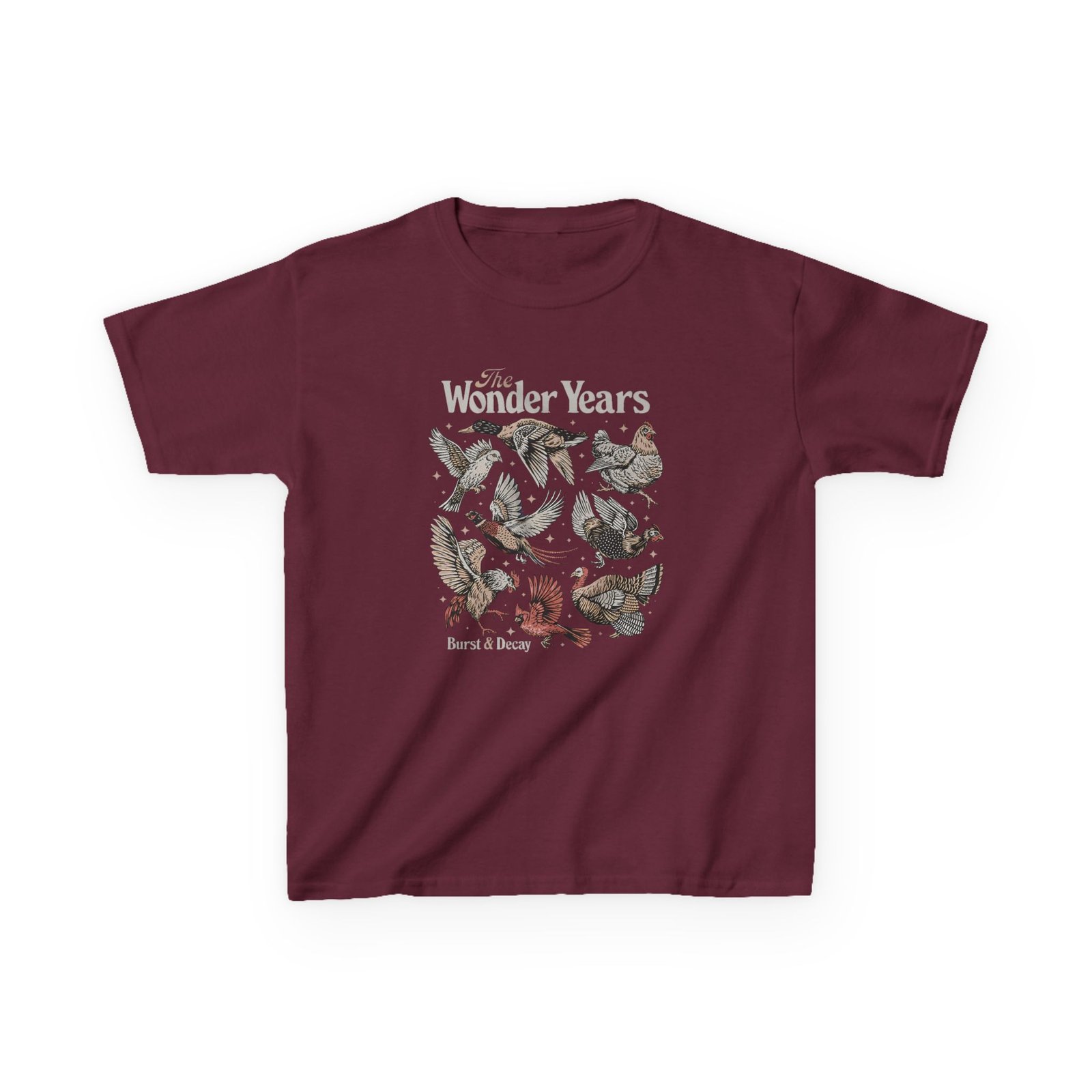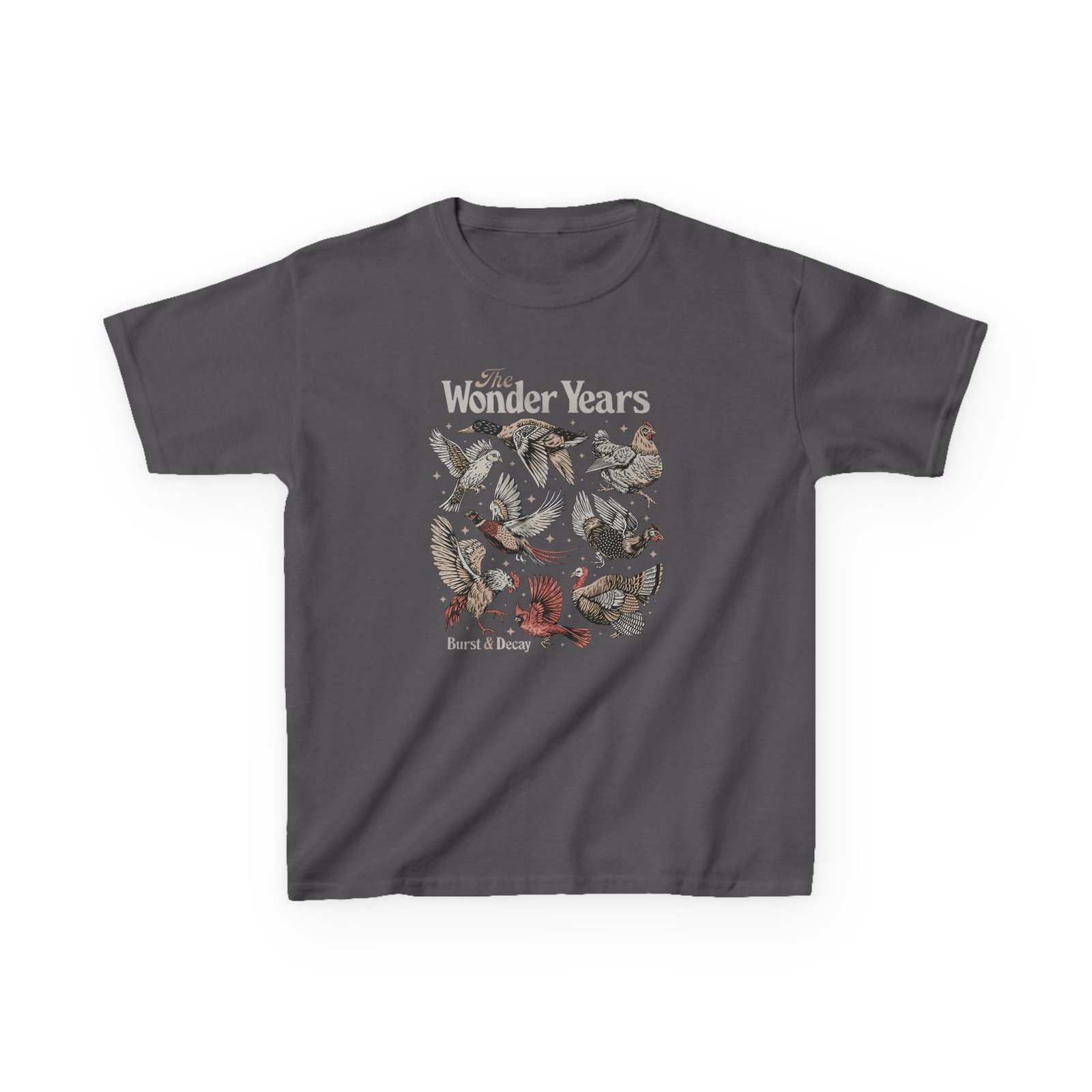 This kids The Wonder Years Bird Collage tee brings playful fruit-card humor to everyday wear. The soft midweight cotton keeps active little ones comfy through playground antics and quiet storytime alike, while the bold front graphic—two banana card illustrations with the cheeky caption about Gros Michel and Cavendish varieties—adds a wink of botanical nostalgia. The classic crew neck and relaxed cut move with kids, and tear-away labels and ribbed collar keep irritation low. Ethically sourced, REACH- and Oeko‑Tex‑certified materials mean you can feel good about a shirt built for repeated washes and season-to-season wear. It sits easily under jackets or on its own for warm days and brings a lighthearted, nerdy flair to family outings, school events, or casual weekends.