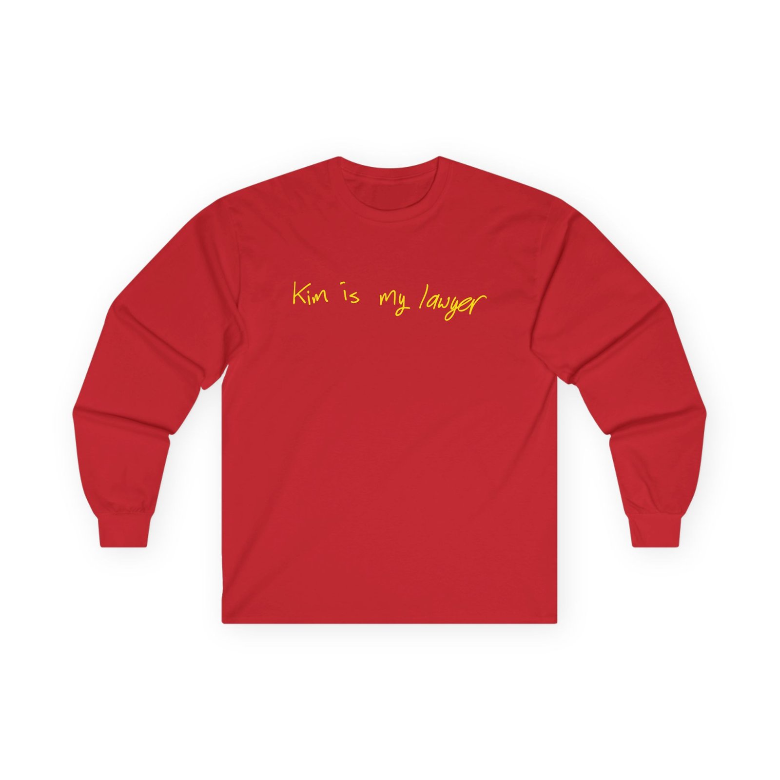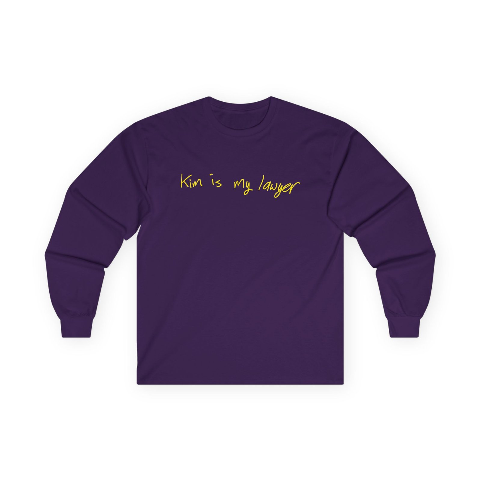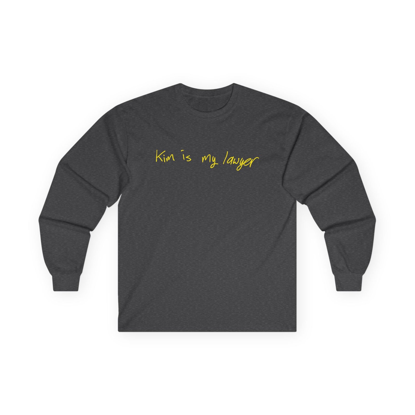 A bit more formal than a standard-issue t-shirt, the Kim Kardashian Is My Lawyer ultra cotton long sleeve tee is a clear comfort winner. The sleeves also act as a nice frame. There are no side seams. The shoulders are taped for improved durability. This makes for a good fitting around the shoulders and neck. The cotton used for these shirts is environmentally friendly.