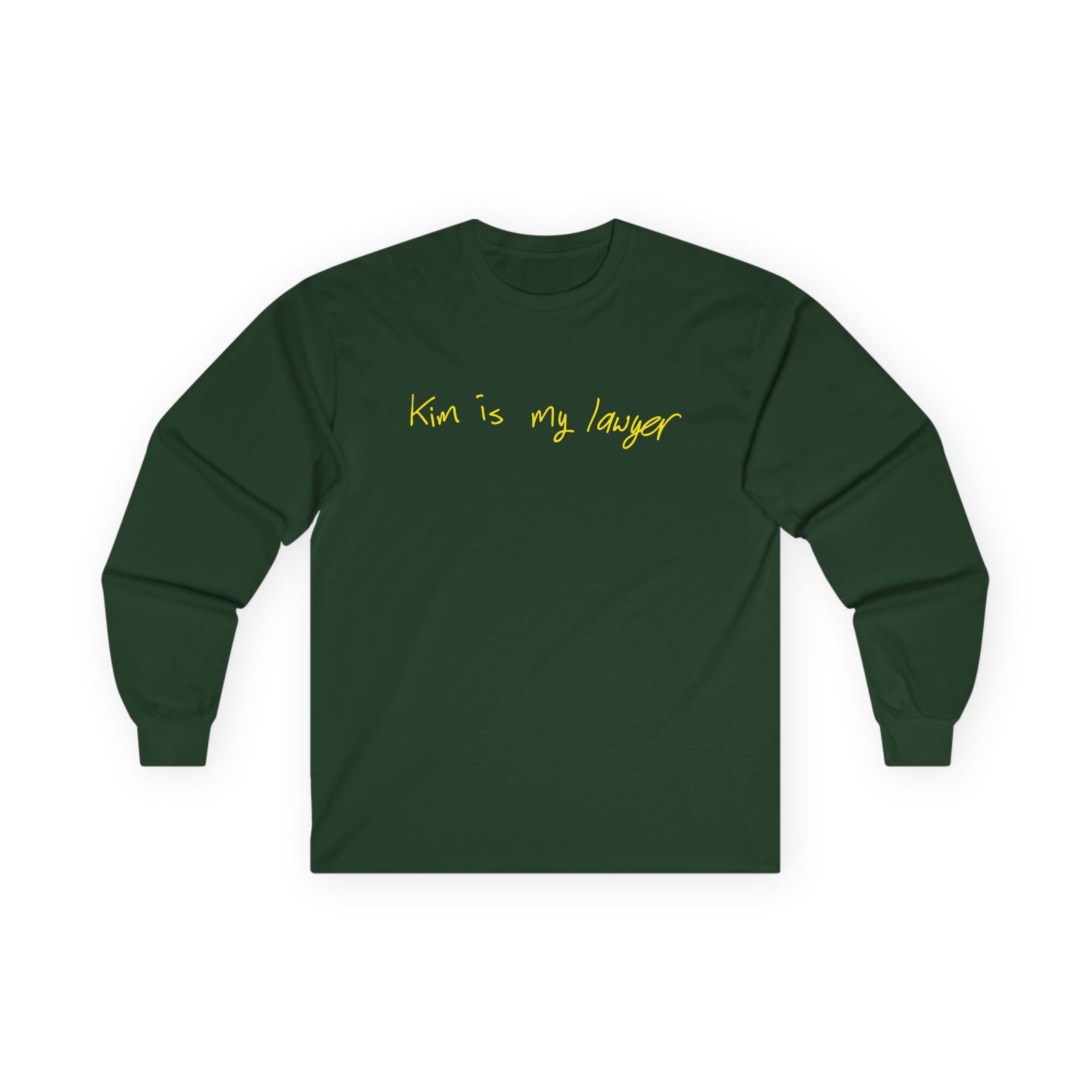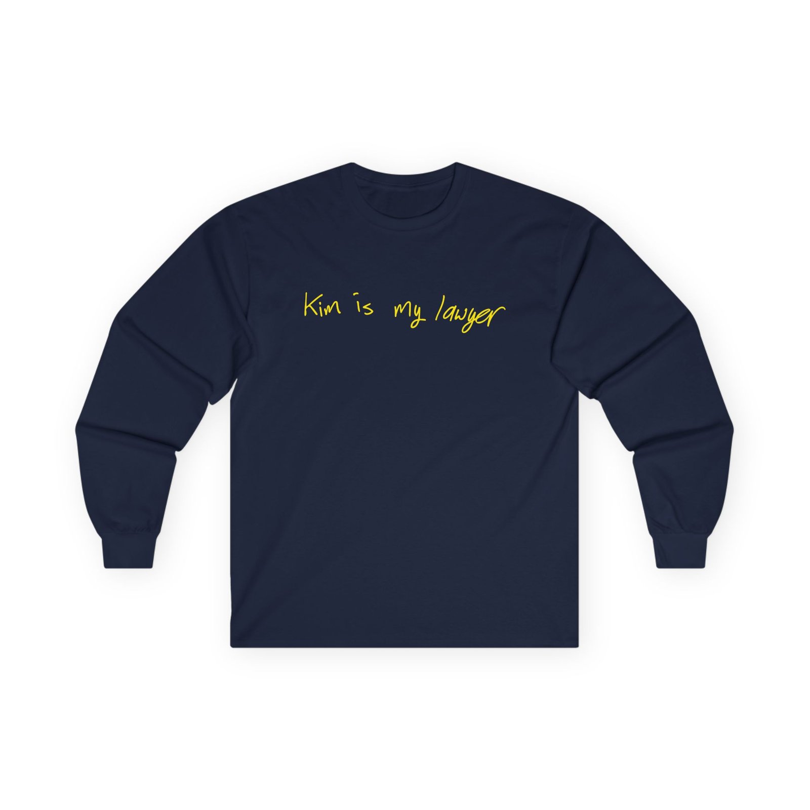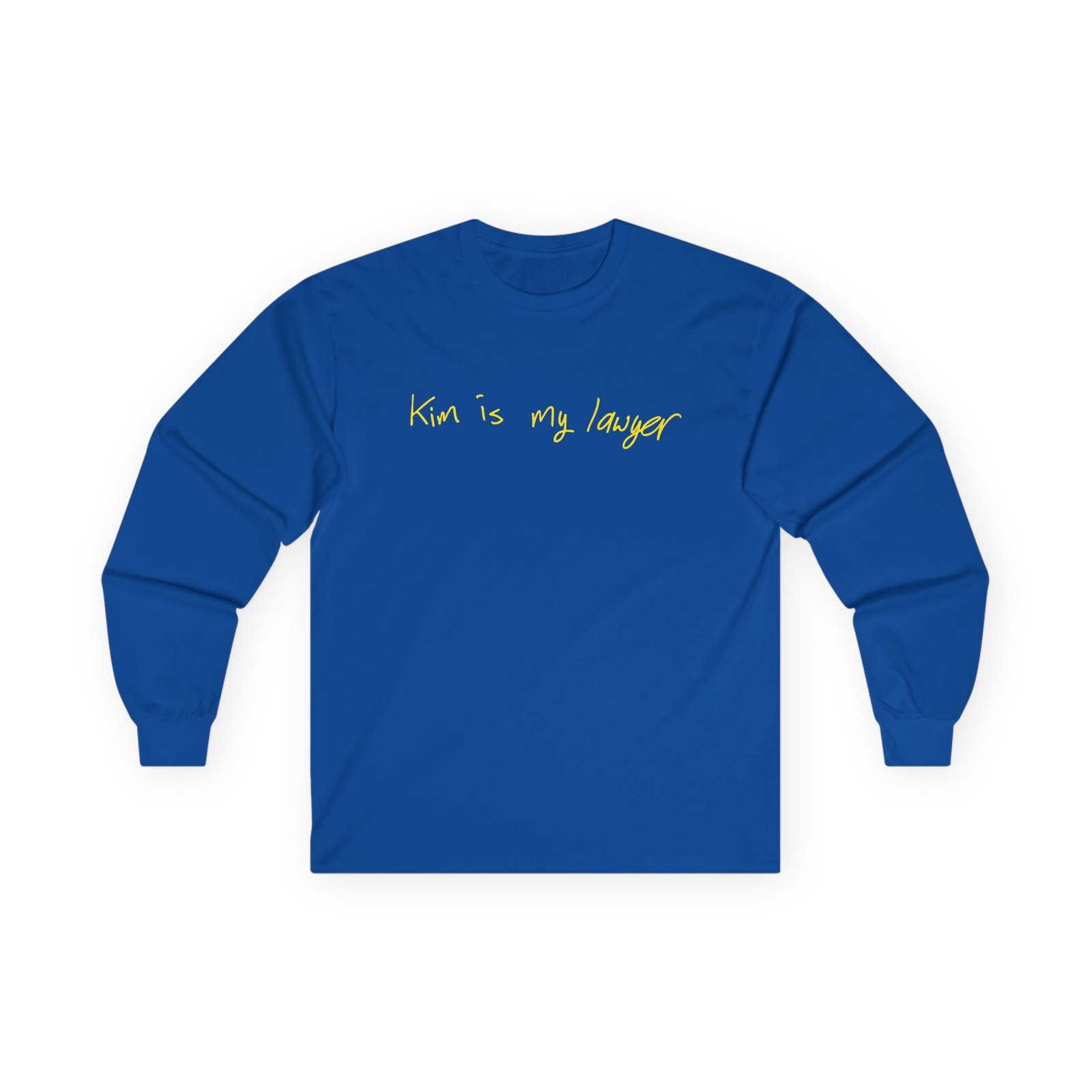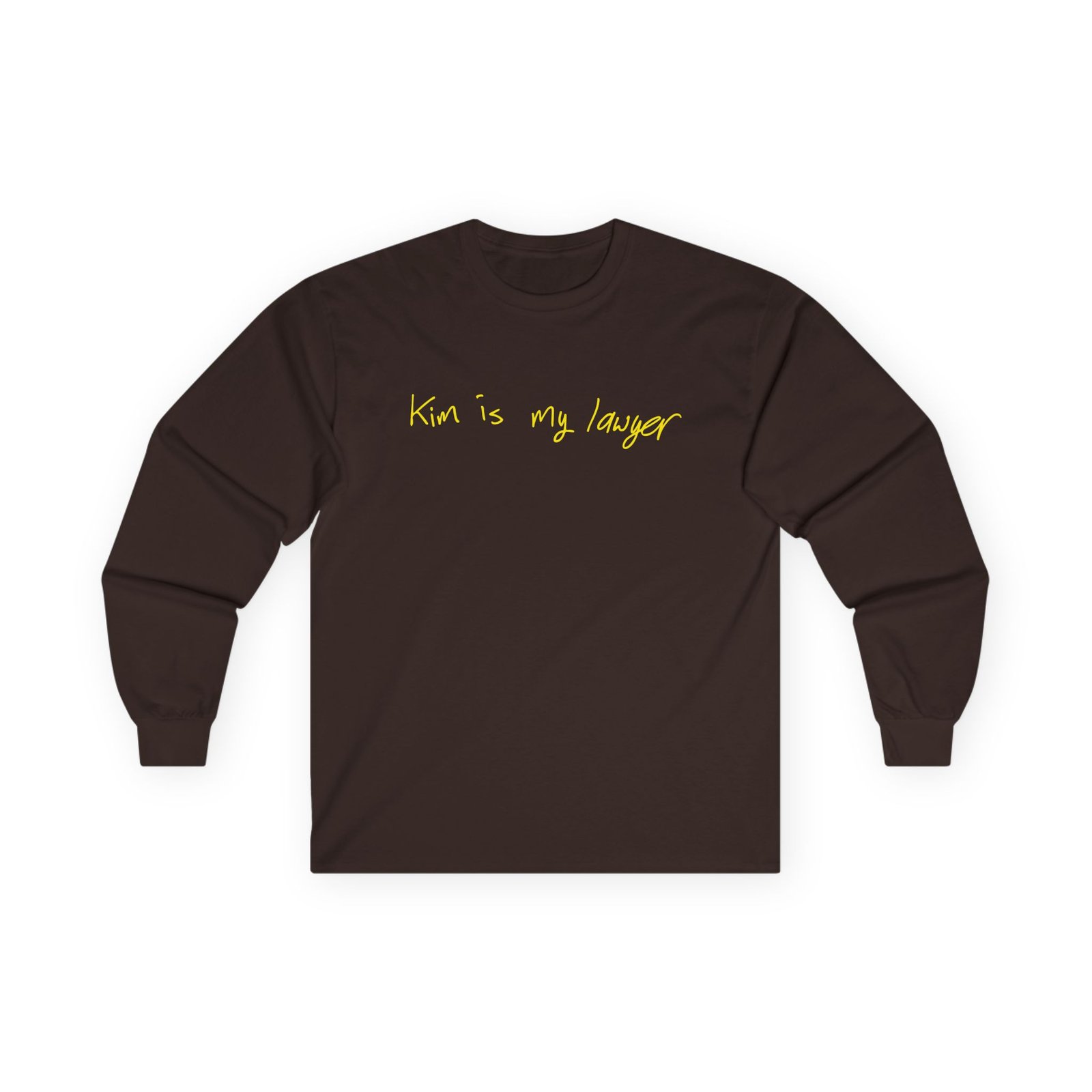 A bit more formal than a standard-issue t-shirt, the Kim Kardashian Is My Lawyer ultra cotton long sleeve tee is a clear comfort winner. The sleeves also act as a nice frame. There are no side seams. The shoulders are taped for improved durability. This makes for a good fitting around the shoulders and neck. The cotton used for these shirts is environmentally friendly.
