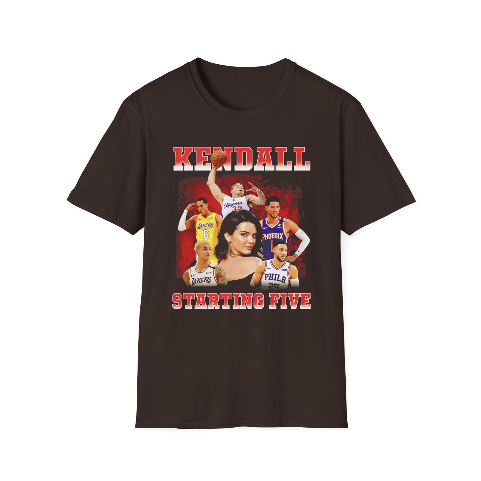 The Kim Kardashian Kendall Starting 5 unisex soft-style t-shirt puts a new spin on casual comfort. Made from very soft materials, this tee is 100% cotton for solid colors. Heather colors and sports grey include polyester. The shoulders have twill tape for improved durability. There are no side seams. The collar is made with ribbed knitting to prevent curling damage.