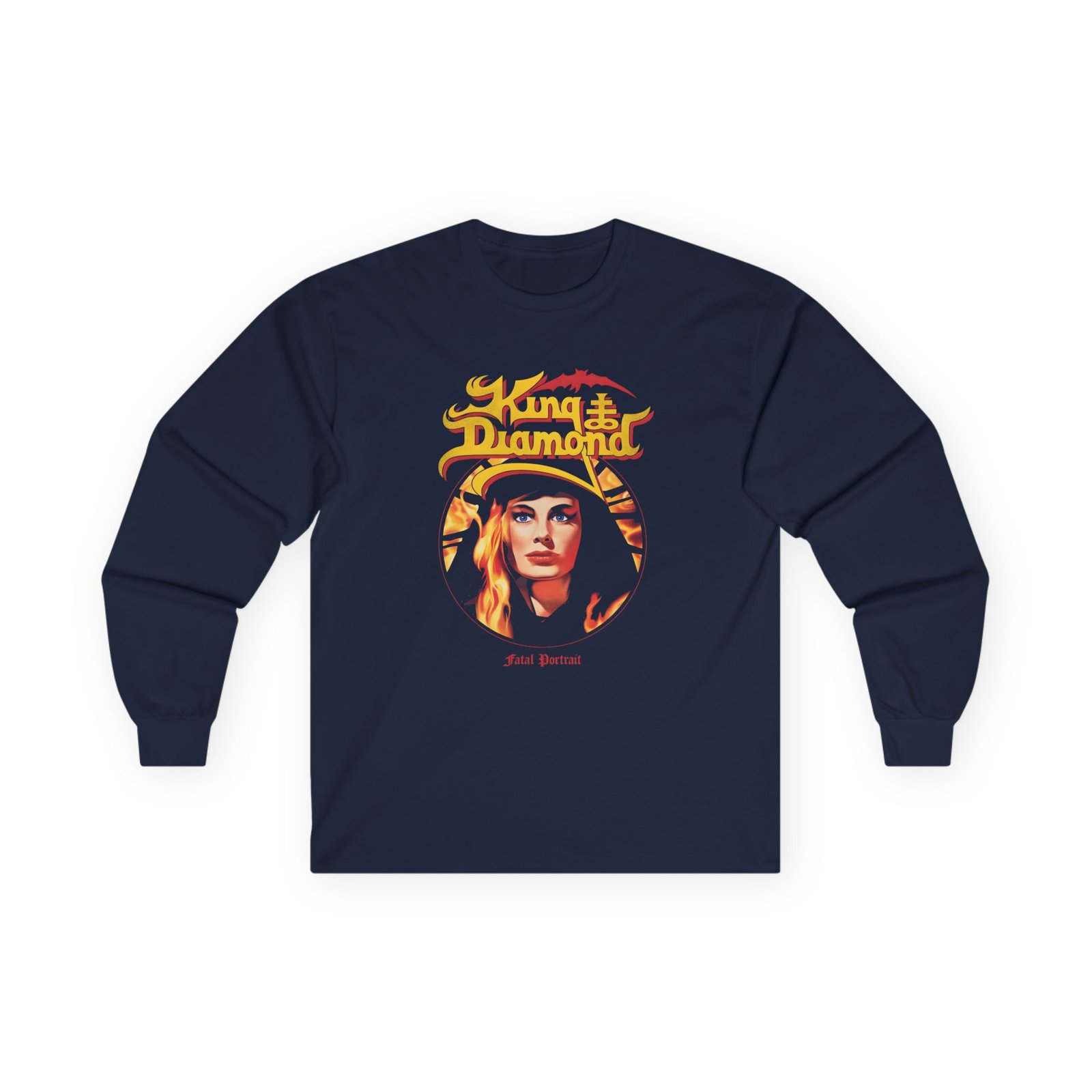 A bit more formal than a standard-issue t-shirt, the King Diamond Fatal Portrait Tracklist ultra cotton long sleeve tee is a clear comfort winner. The sleeves also act as a nice frame. There are no side seams. The shoulders are taped for improved durability. This makes for a good fitting around the shoulders and neck. The cotton used for these shirts is environmentally friendly.