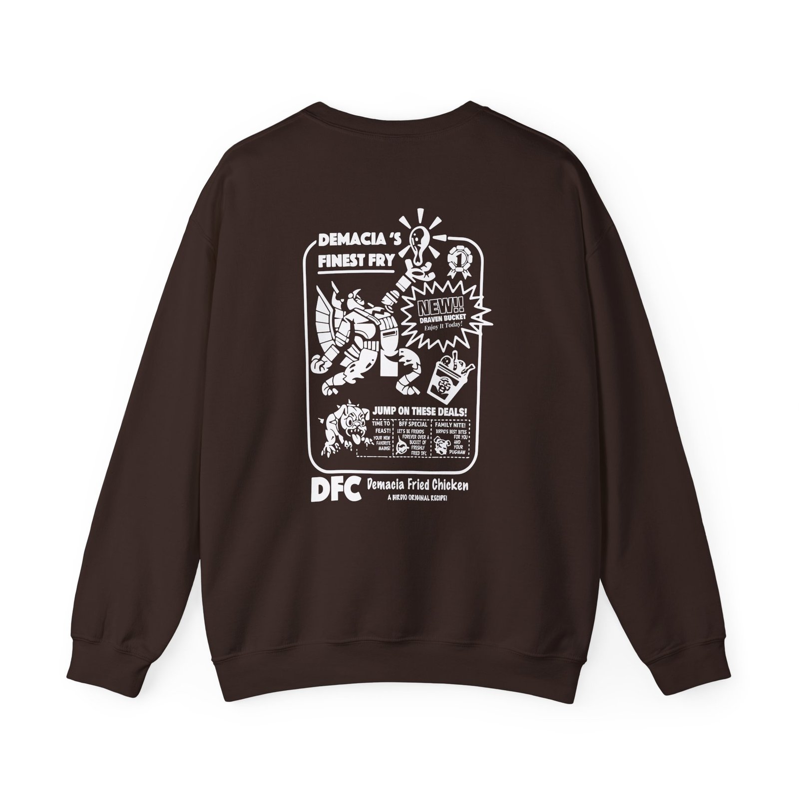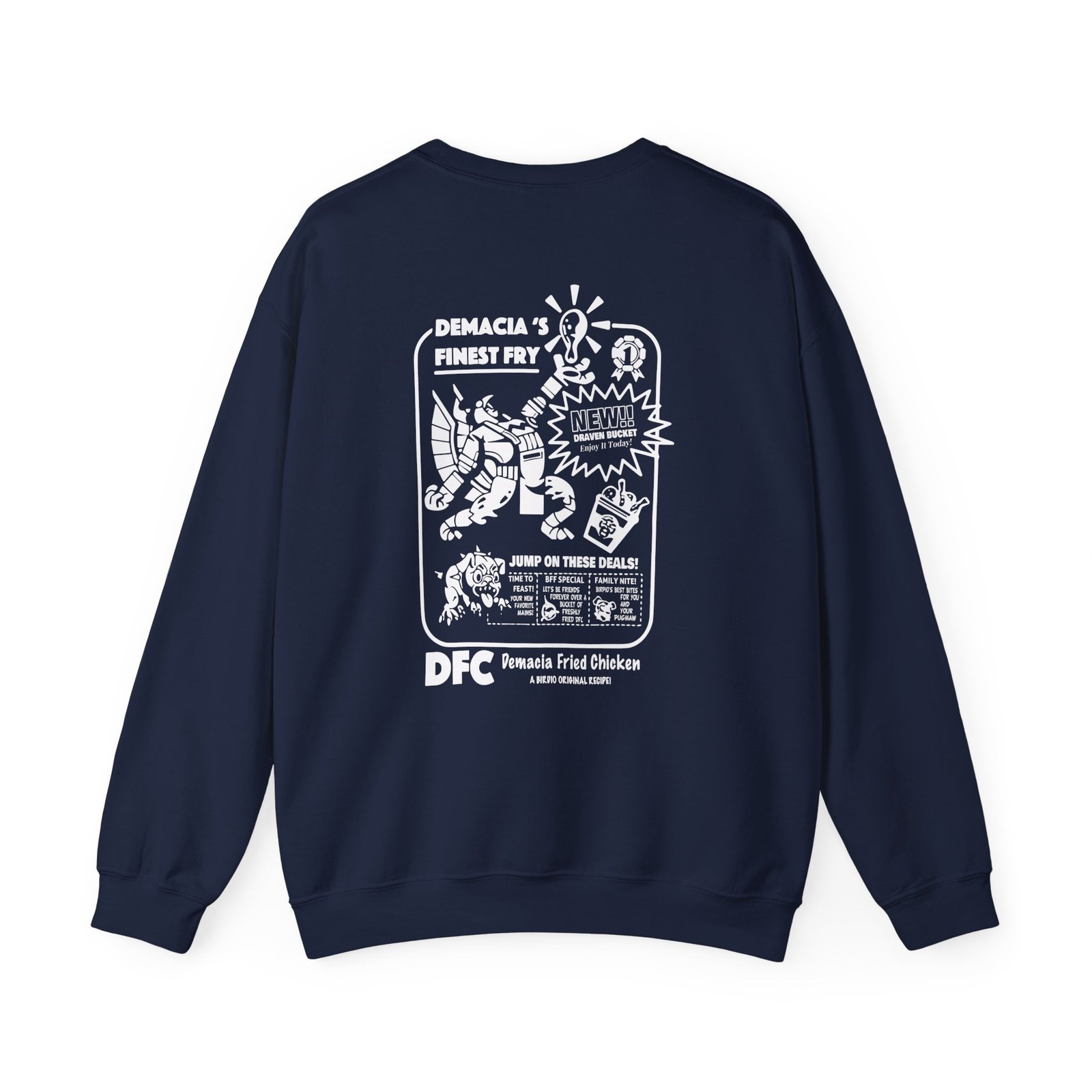 Ideal for any situation, a League Of Legends Demacian Fried Chicken Birdio unisex heavy blend crewneck sweatshirt is pure comfort. These garments are made from polyester and cotton. This combination helps designs come out looking fresh and beautiful. The collar is ribbed knit, so it retains its shape even after washing. There are no itchy side seams on these sweaters.
