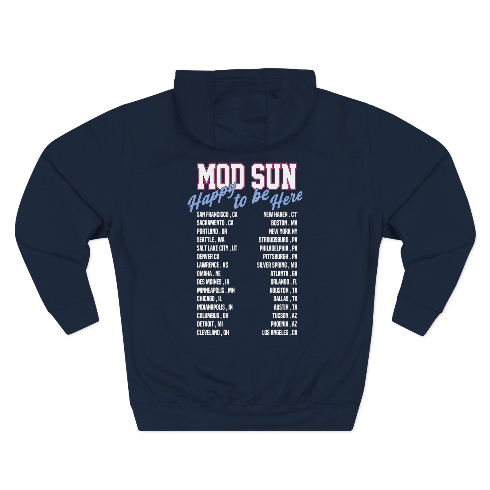 Beat the cold with this Mod Sun Happy to Be Here premium pullover hoodie that’s just the right layer of warm and cozy. Made with three-panel fleece lining, this pullover is double stitched for durability and roomy. Pick one in your favorite color to match your style.