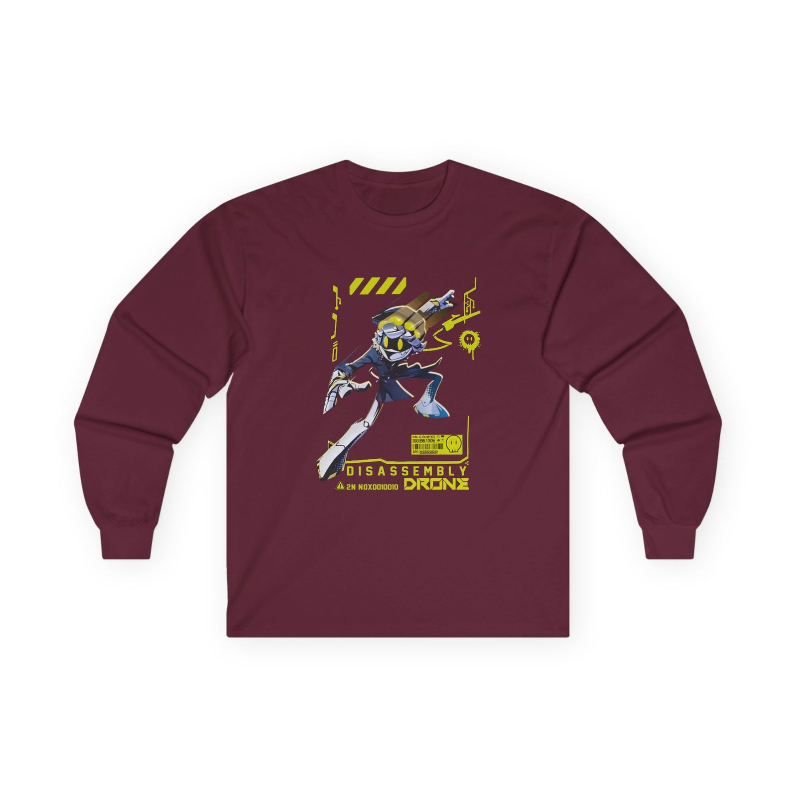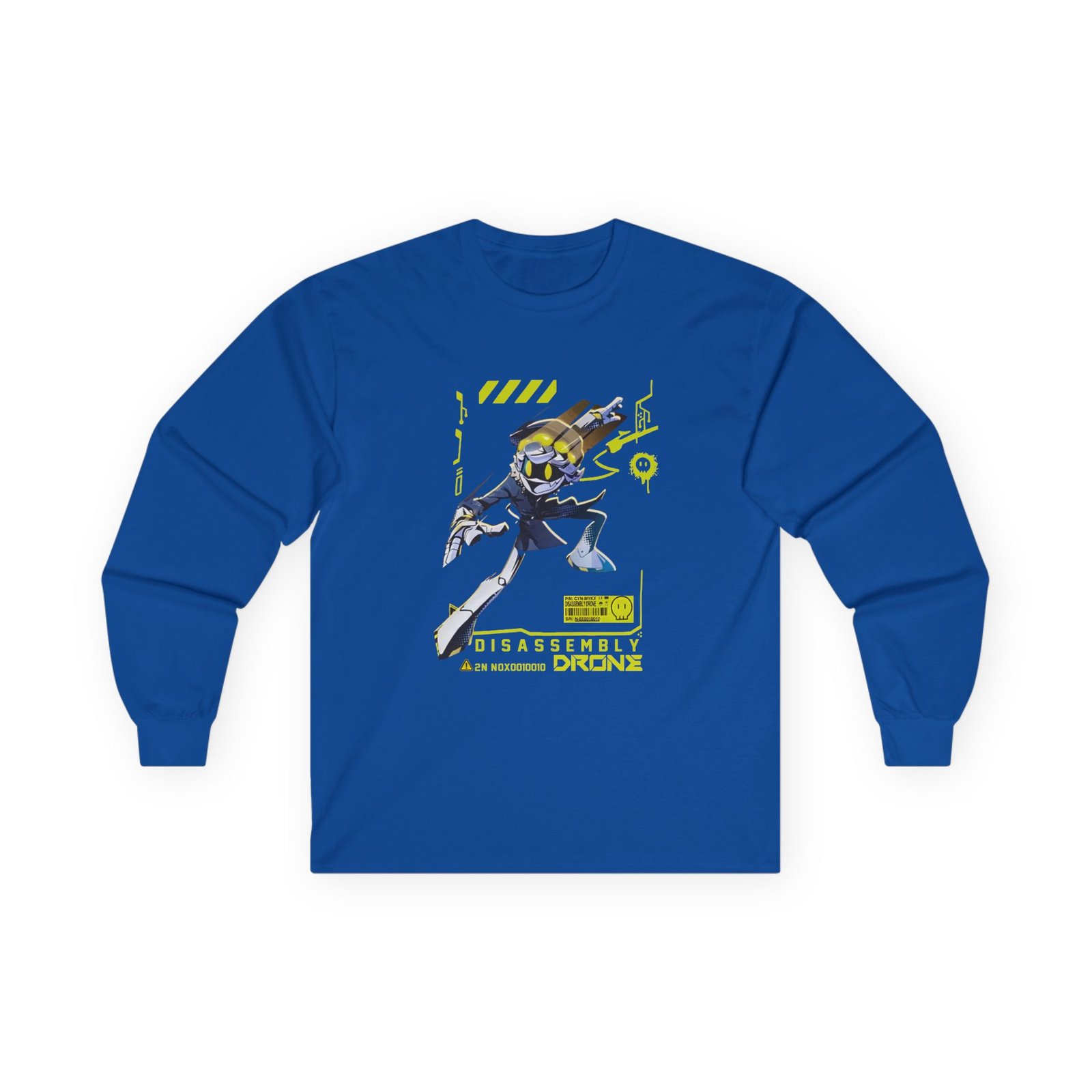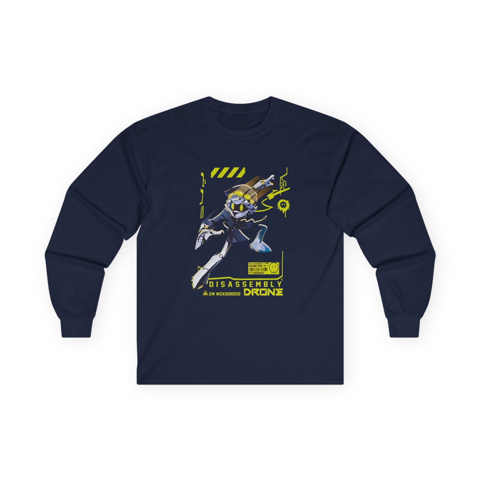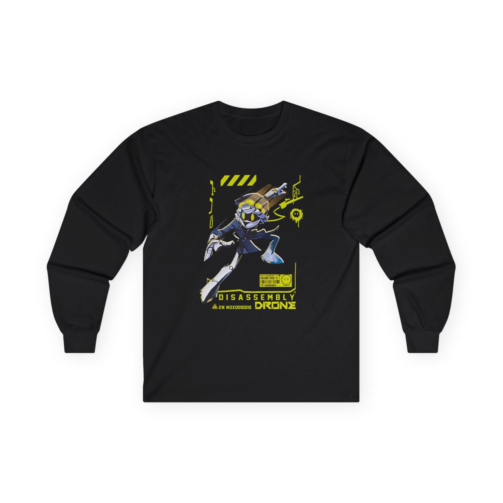 A bit more formal than a standard-issue t-shirt, the Murder Drones N ultra cotton long sleeve tee is a clear comfort winner. The sleeves also act as a nice frame. There are no side seams. The shoulders are taped for improved durability. This makes for a good fitting around the shoulders and neck. The cotton used for these shirts is environmentally friendly.