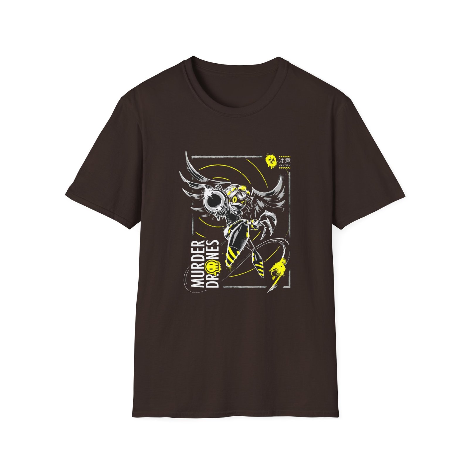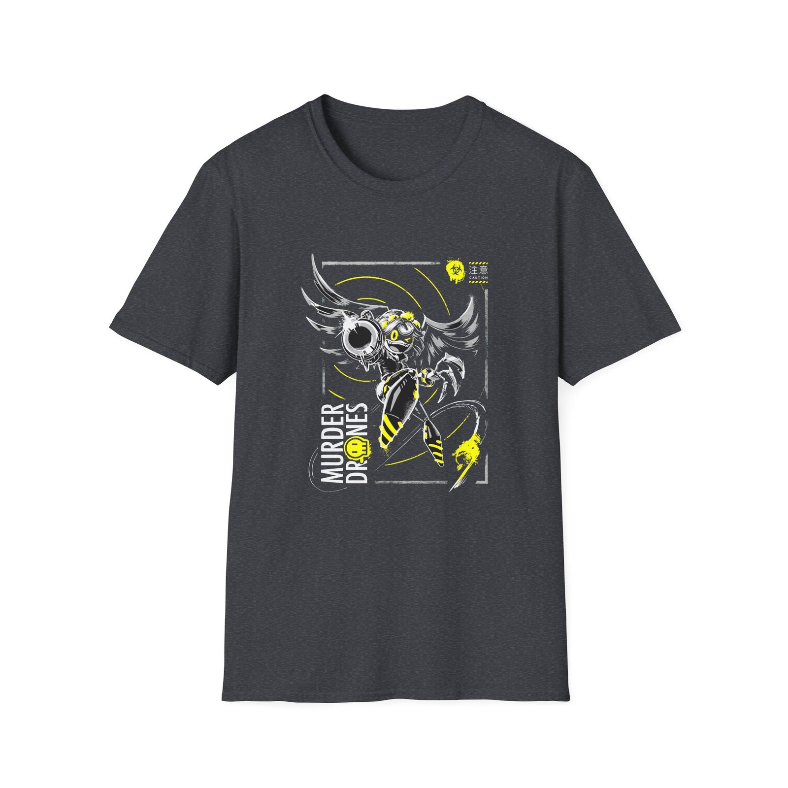 The Murder Drones V Ready to Kill unisex soft-style t-shirt puts a new spin on casual comfort. Made from very soft materials, this tee is 100% cotton for solid colors. Heather colors and sports grey include polyester. The shoulders have twill tape for improved durability. There are no side seams. The collar is made with ribbed knitting to prevent curling damage.