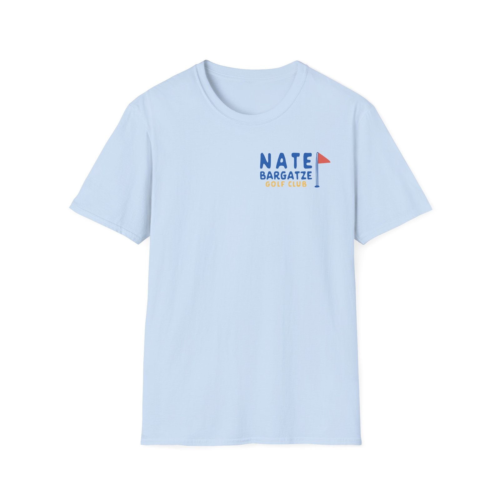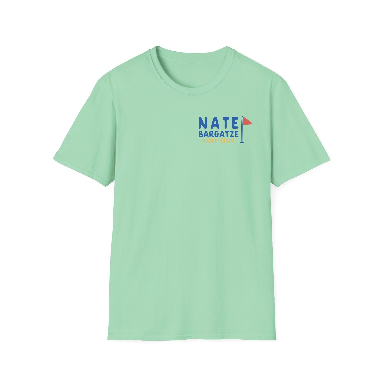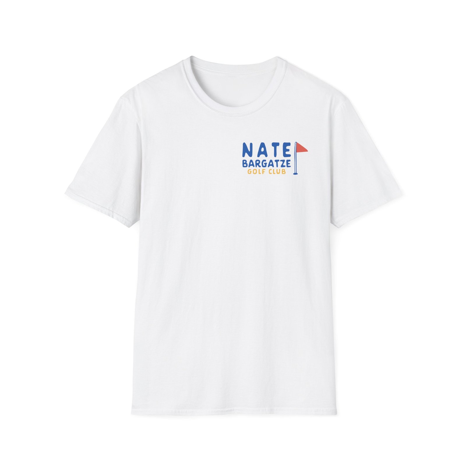 The Nate Bargatze Golf Club unisex soft-style t-shirt puts a new spin on casual comfort. Made from very soft materials, this tee is 100% cotton for solid colors. Heather colors and sports grey include polyester. The shoulders have twill tape for improved durability. There are no side seams. The collar is made with ribbed knitting to prevent curling damage.