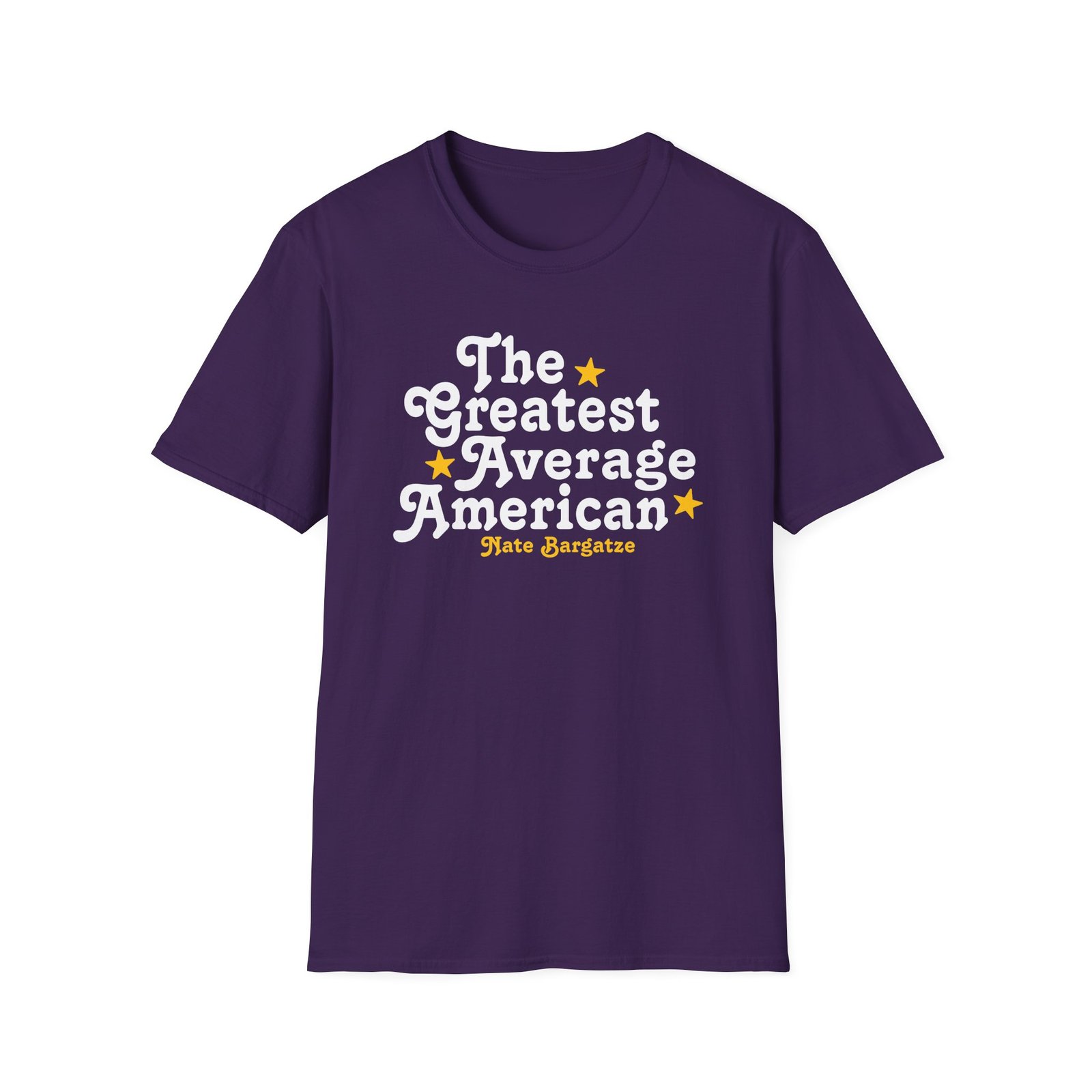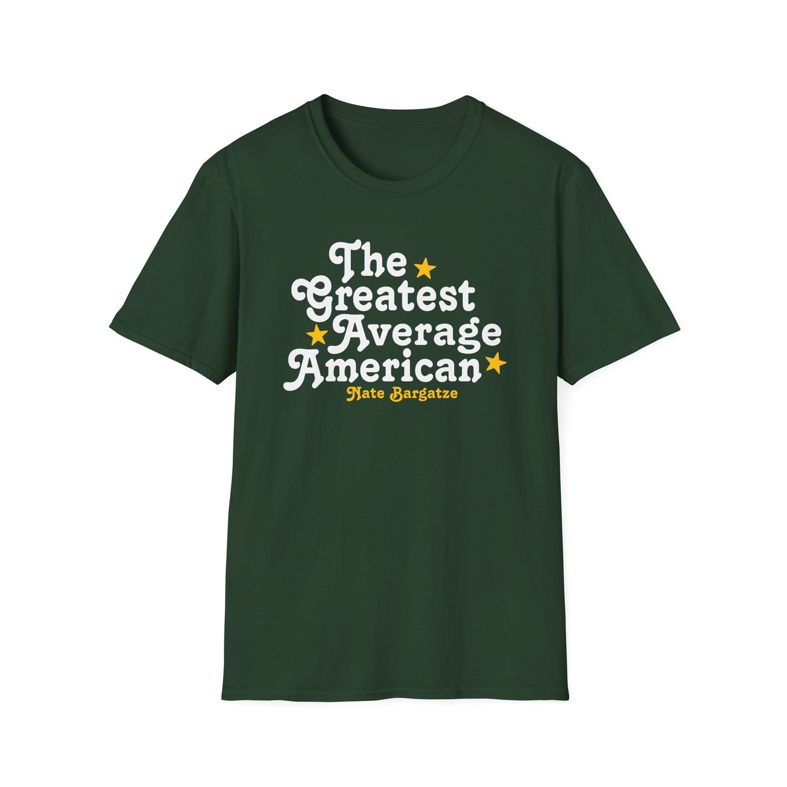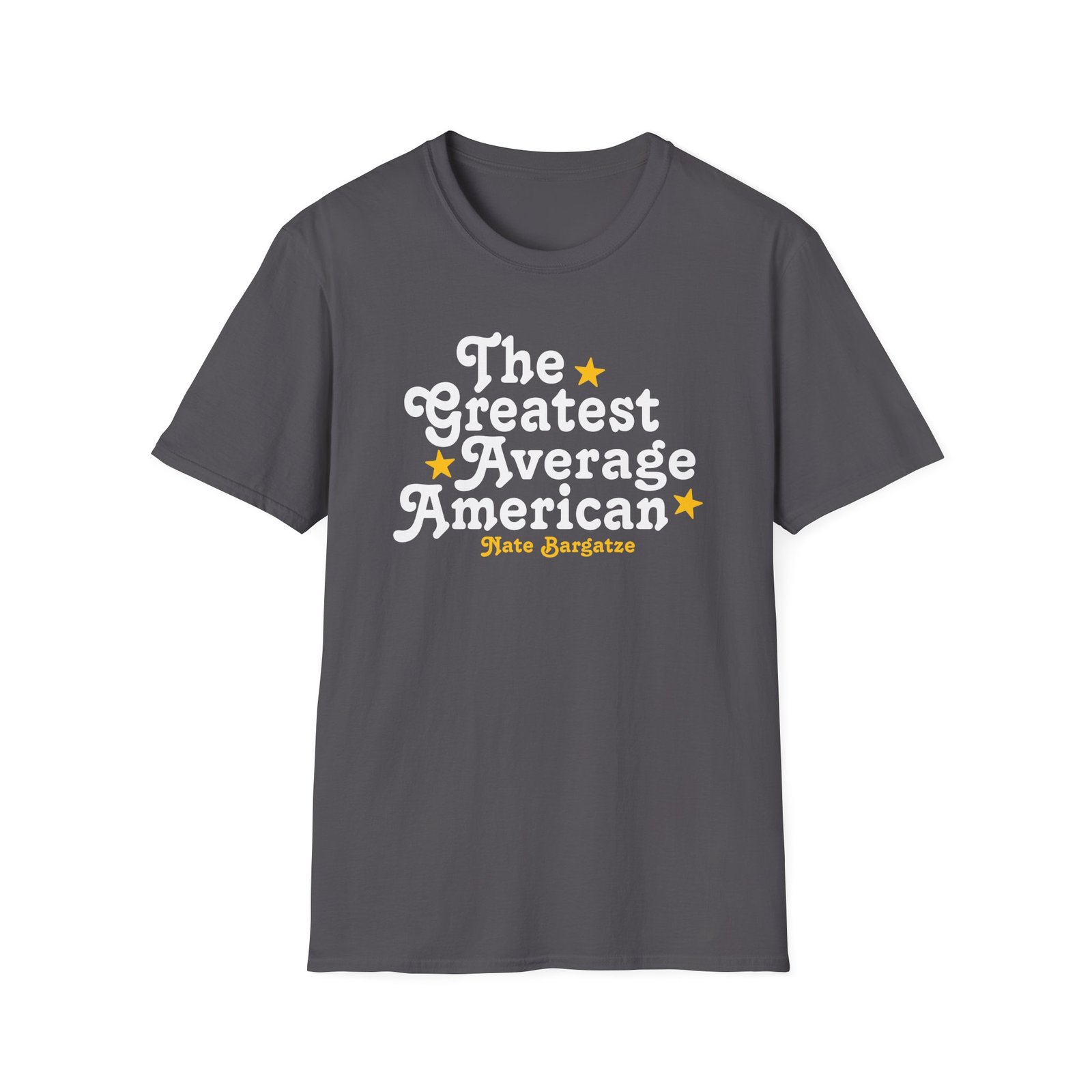 The Nate Bargatze – The Greatest Average American Nate Bargatze unisex soft-style t-shirt puts a new spin on casual comfort. Made from very soft materials, this tee is 100% cotton for solid colors. Heather colors and sports grey include polyester. The shoulders have twill tape for improved durability. There are no side seams. The collar is made with ribbed knitting to prevent curling damage.