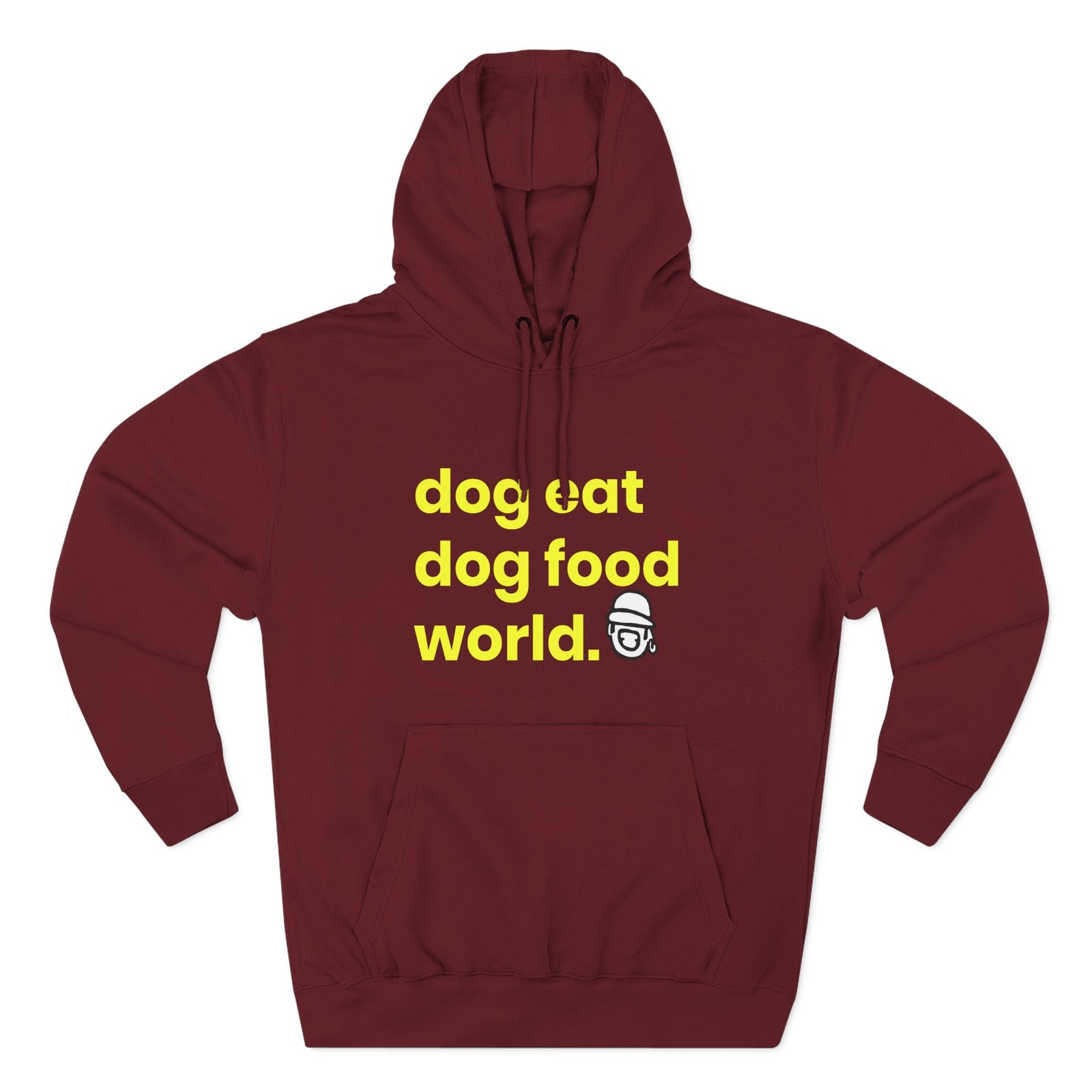 Beat the cold with this Niko B Dog Eat Dog Food World premium pullover hoodie that’s just the right layer of warm and cozy. Made with three-panel fleece lining, this pullover is double stitched for durability and roomy. Pick one in your favorite color to match your style.