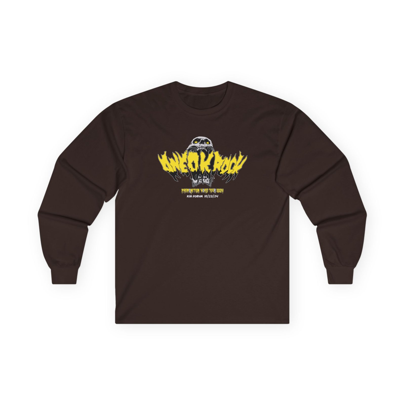 A bit more formal than a standard-issue t-shirt, the One Ok Rock the Forum Exclusive ultra cotton long sleeve tee is a clear comfort winner. The sleeves also act as a nice frame. There are no side seams. The shoulders are taped for improved durability. This makes for a good fitting around the shoulders and neck. The cotton used for these shirts is environmentally friendly.