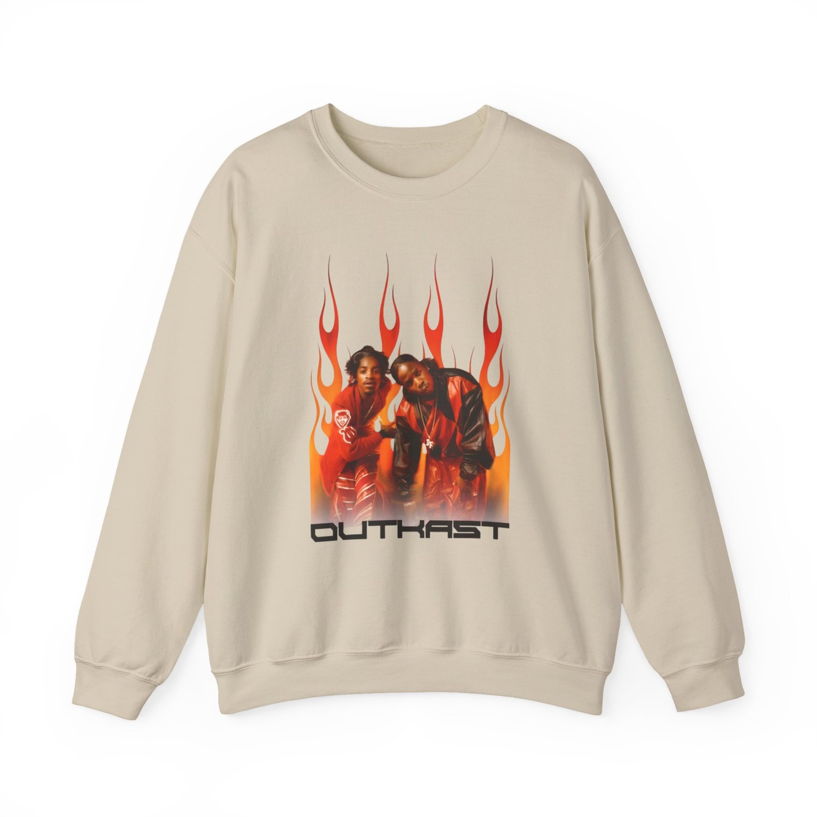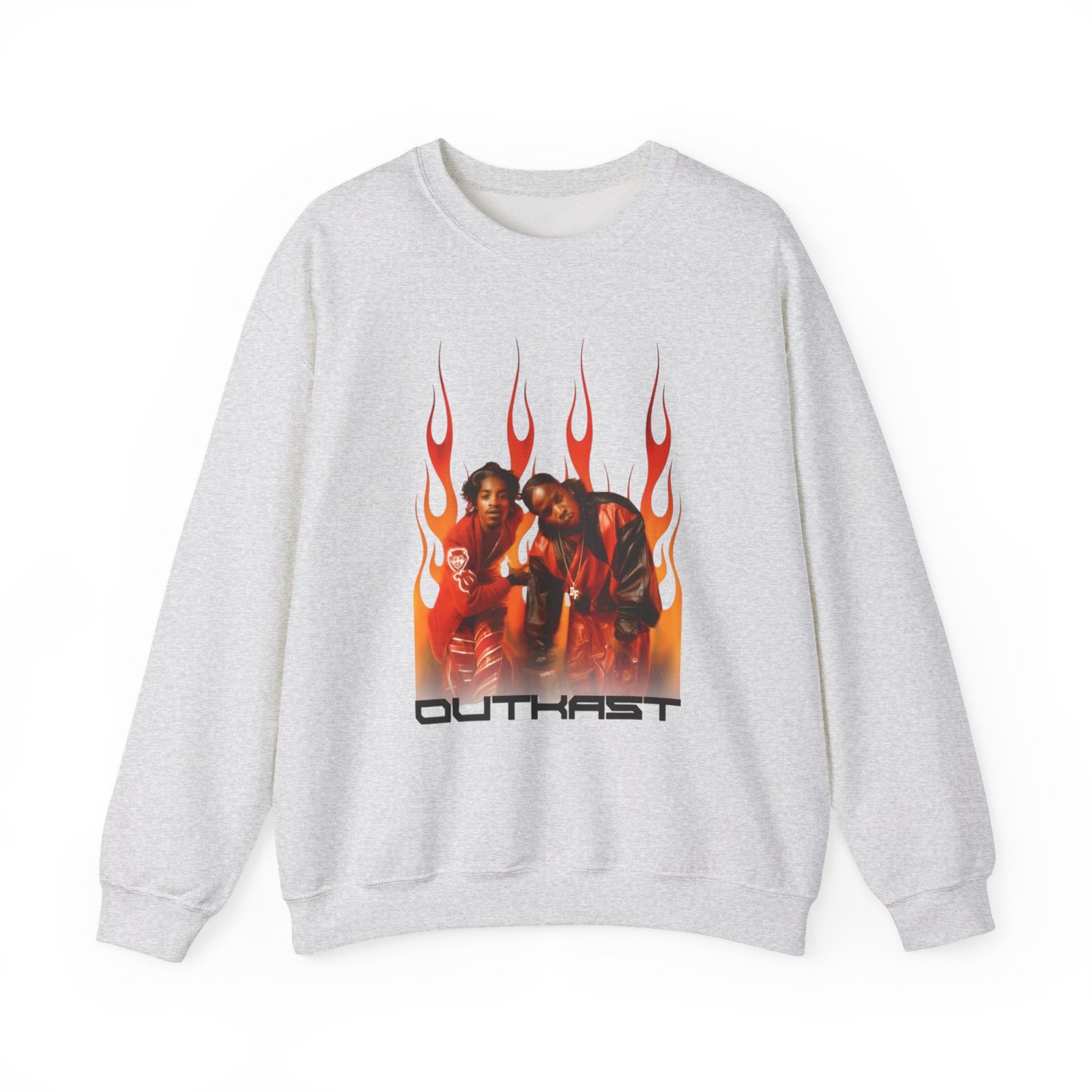 Ideal for any situation, a Outkast Outkast Flames unisex heavy blend crewneck sweatshirt is pure comfort. These garments are made from polyester and cotton. This combination helps designs come out looking fresh and beautiful. The collar is ribbed knit, so it retains its shape even after washing. There are no itchy side seams on these sweaters.