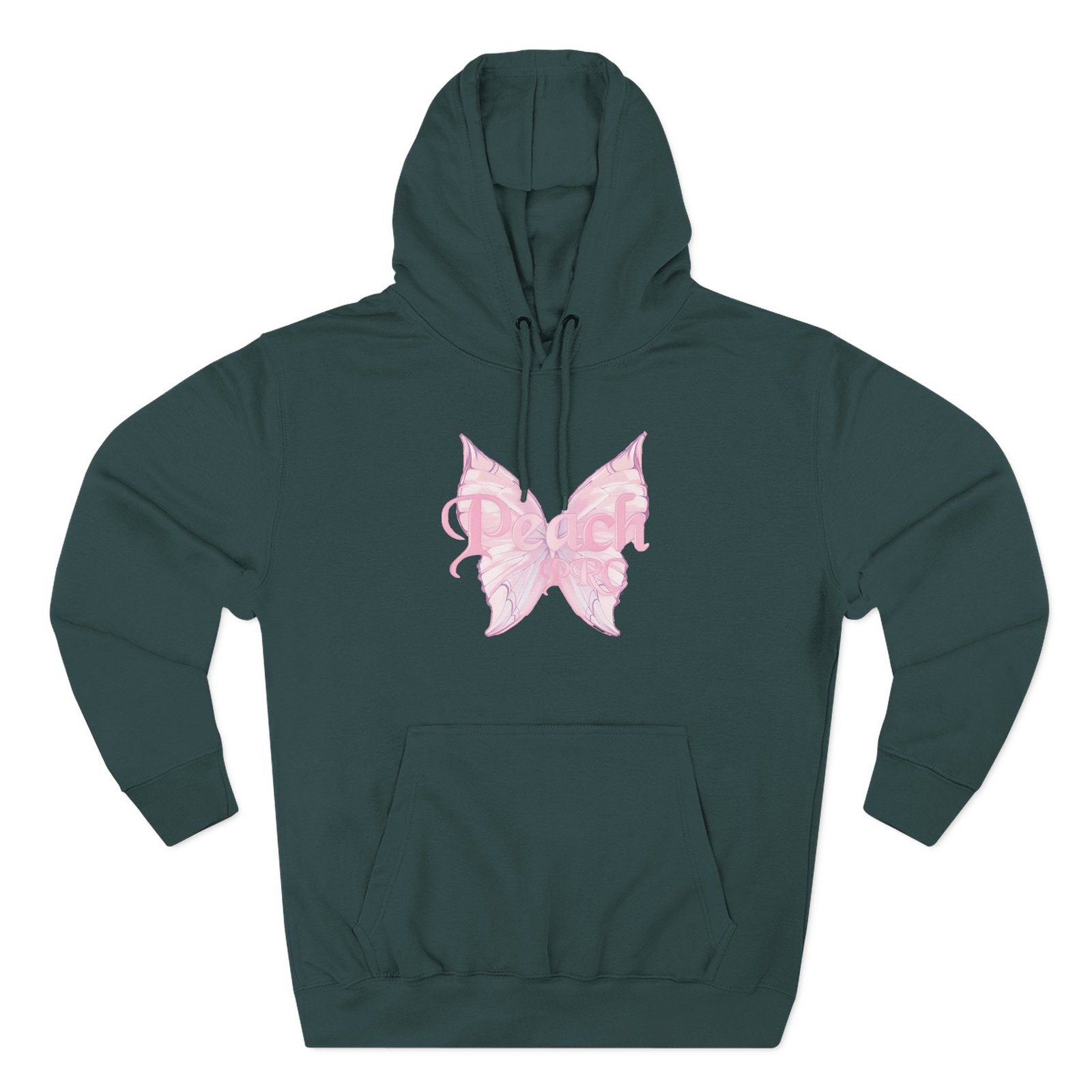 Beat the cold with this Peach Prc Butterfly premium pullover hoodie that’s just the right layer of warm and cozy. Made with three-panel fleece lining, this pullover is double stitched for durability and roomy. Pick one in your favorite color to match your style.