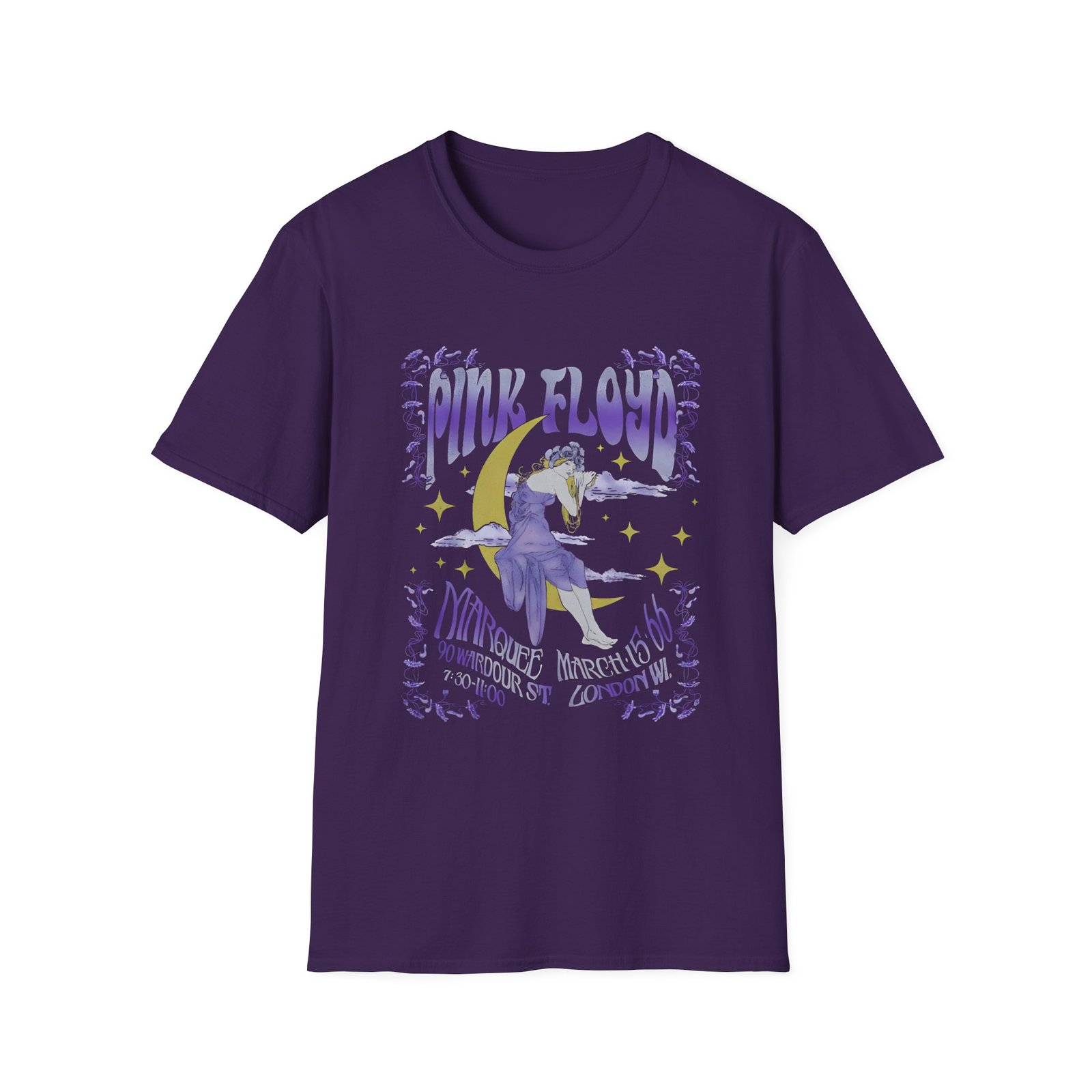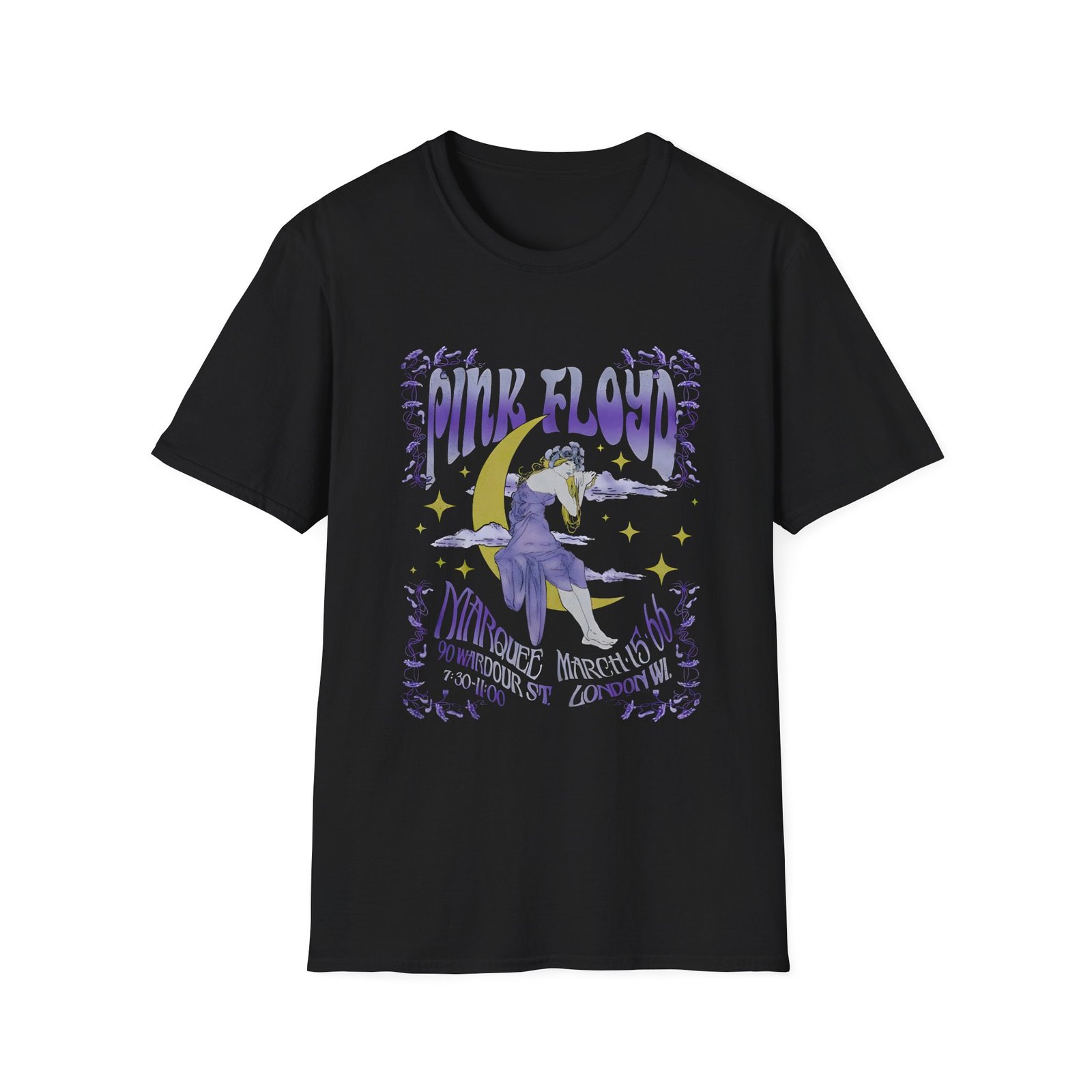 The Pink Floyd Marquee unisex soft-style t-shirt puts a new spin on casual comfort. Made from very soft materials, this tee is 100% cotton for solid colors. Heather colors and sports grey include polyester. The shoulders have twill tape for improved durability. There are no side seams. The collar is made with ribbed knitting to prevent curling damage.