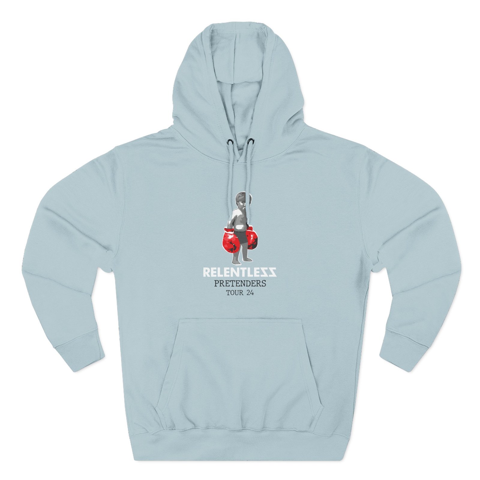 Beat the cold with this Pretenders Relentless Tour premium pullover hoodie that’s just the right layer of warm and cozy. Made with three-panel fleece lining, this pullover is double stitched for durability and roomy. Pick one in your favorite color to match your style.