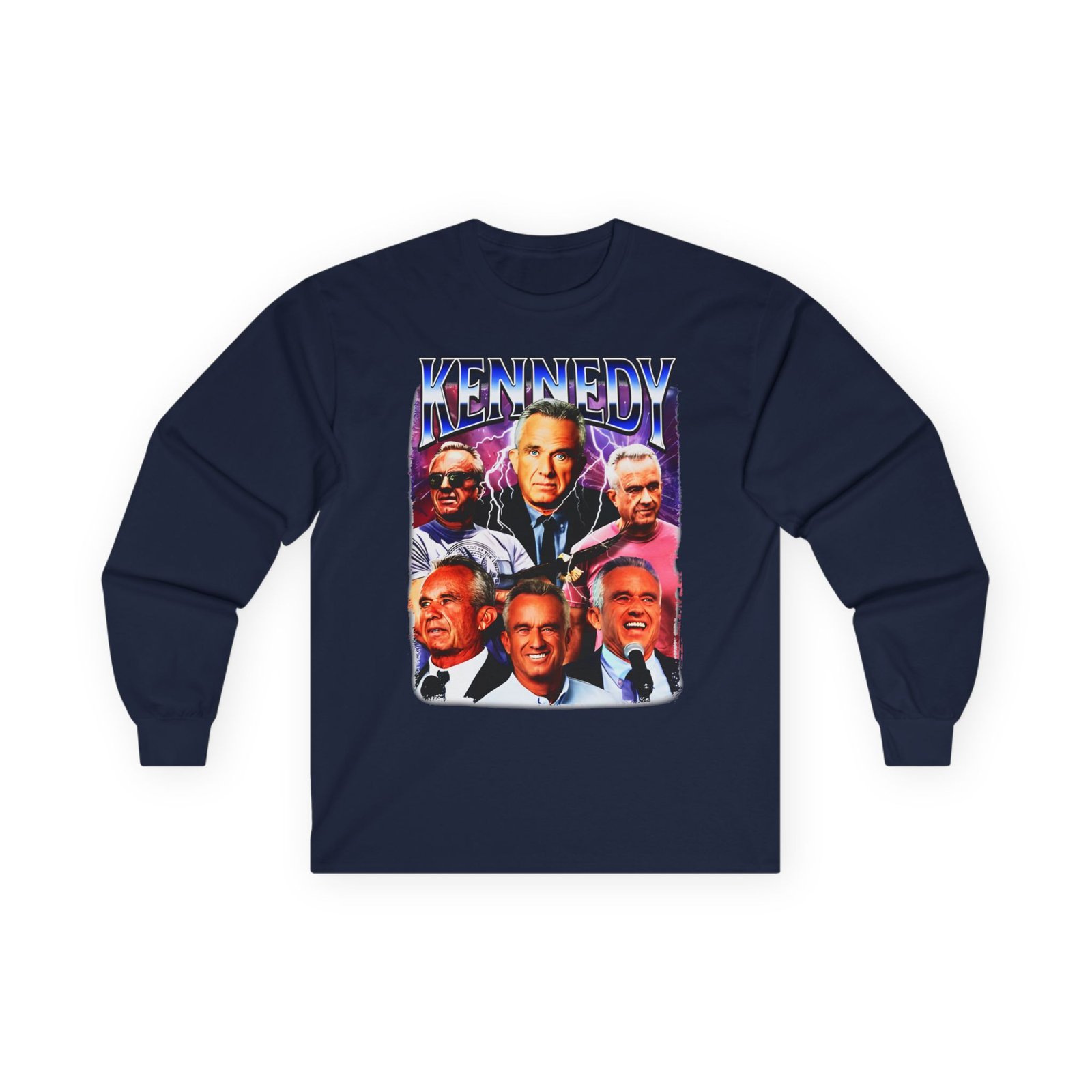 A bit more formal than a standard-issue t-shirt, the Robert Kennedy for President ultra cotton long sleeve tee is a clear comfort winner. The sleeves also act as a nice frame. There are no side seams. The shoulders are taped for improved durability. This makes for a good fitting around the shoulders and neck. The cotton used for these shirts is environmentally friendly.
