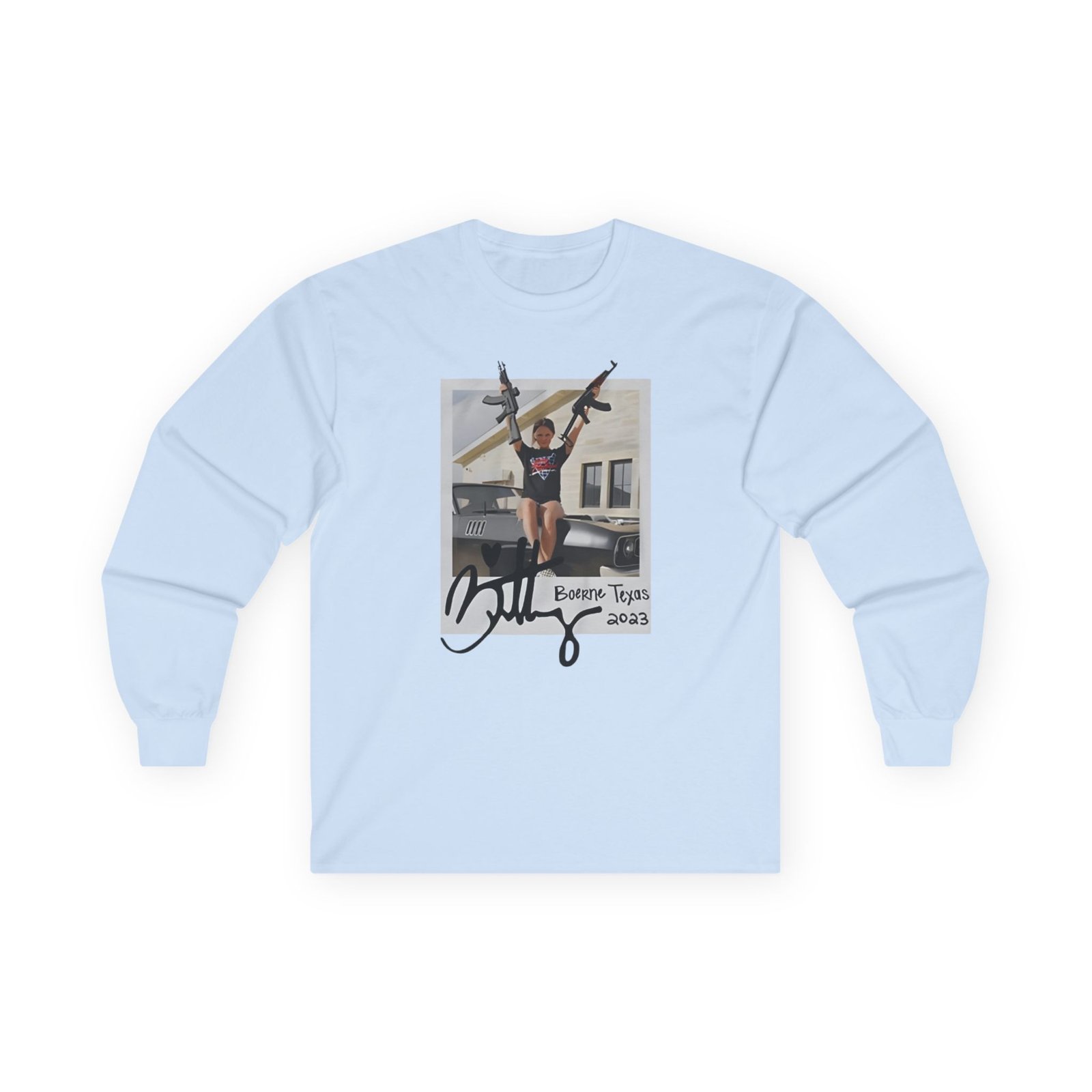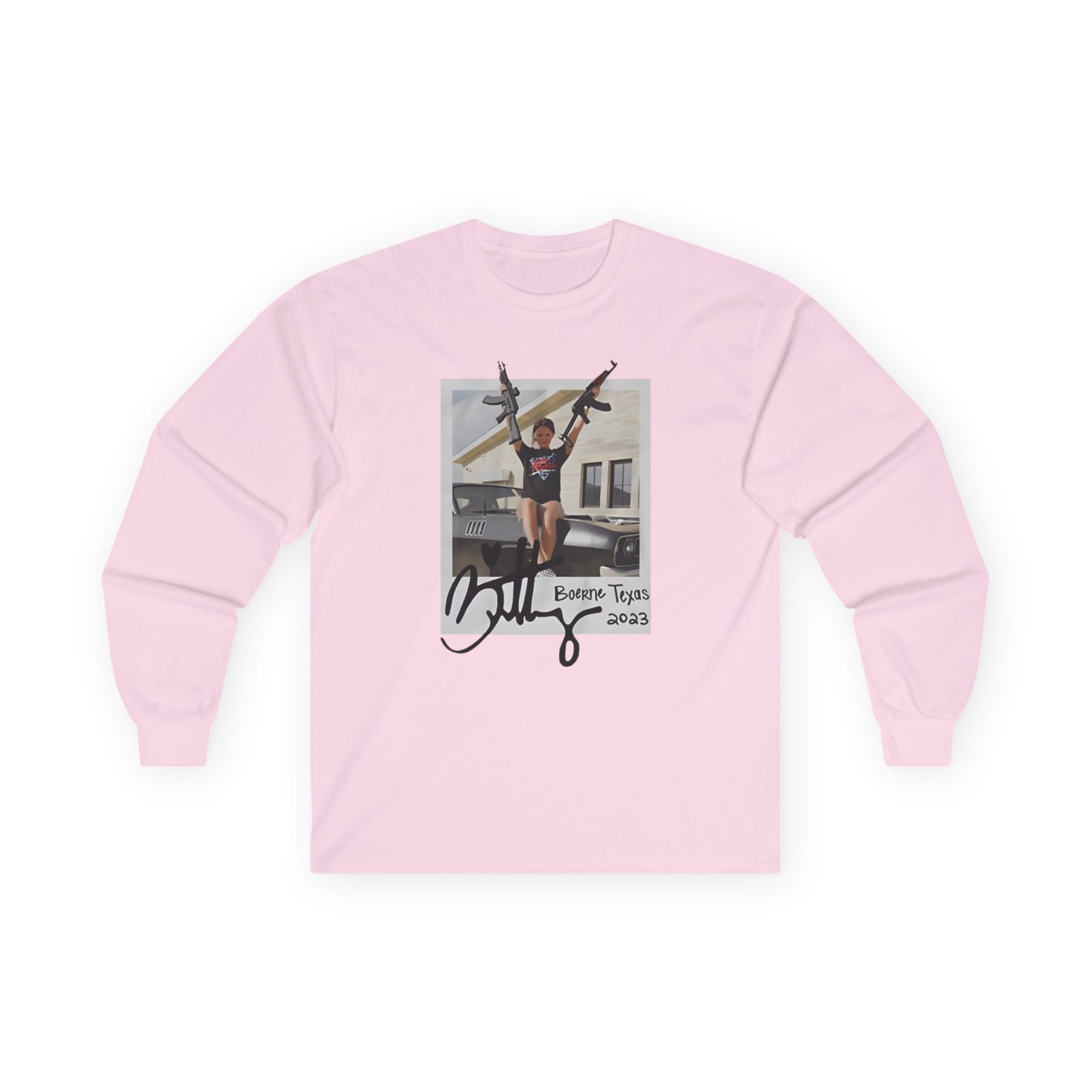 A bit more formal than a standard-issue t-shirt, the Roman Atwood Brittney in Texas ultra cotton long sleeve tee is a clear comfort winner. The sleeves also act as a nice frame. There are no side seams. The shoulders are taped for improved durability. This makes for a good fitting around the shoulders and neck. The cotton used for these shirts is environmentally friendly.