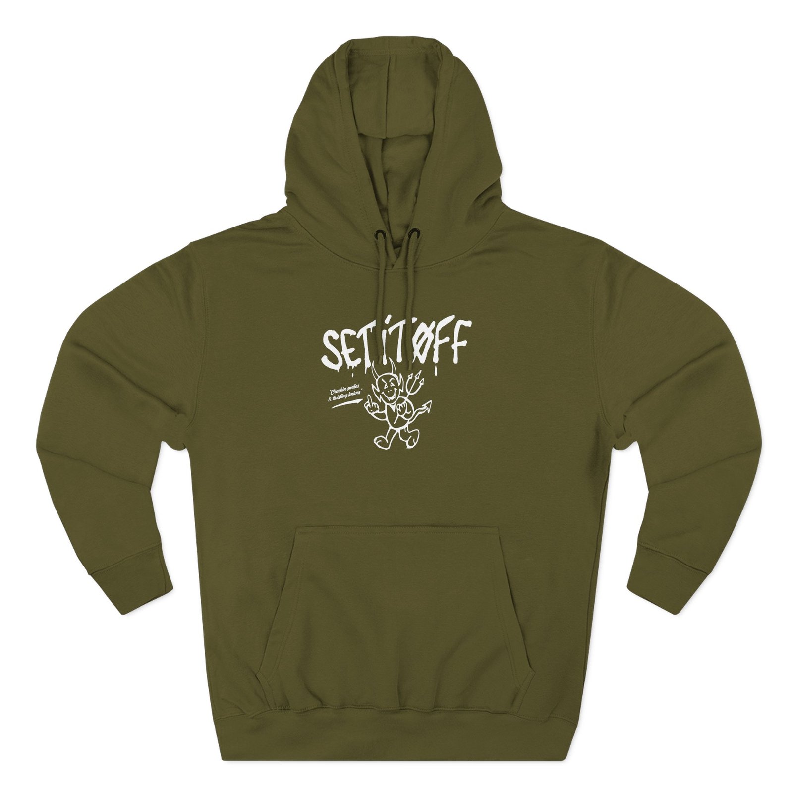Beat the cold with this Set It Off Devil premium pullover hoodie that’s just the right layer of warm and cozy. Made with three-panel fleece lining, this pullover is double stitched for durability and roomy. Pick one in your favorite color to match your style.