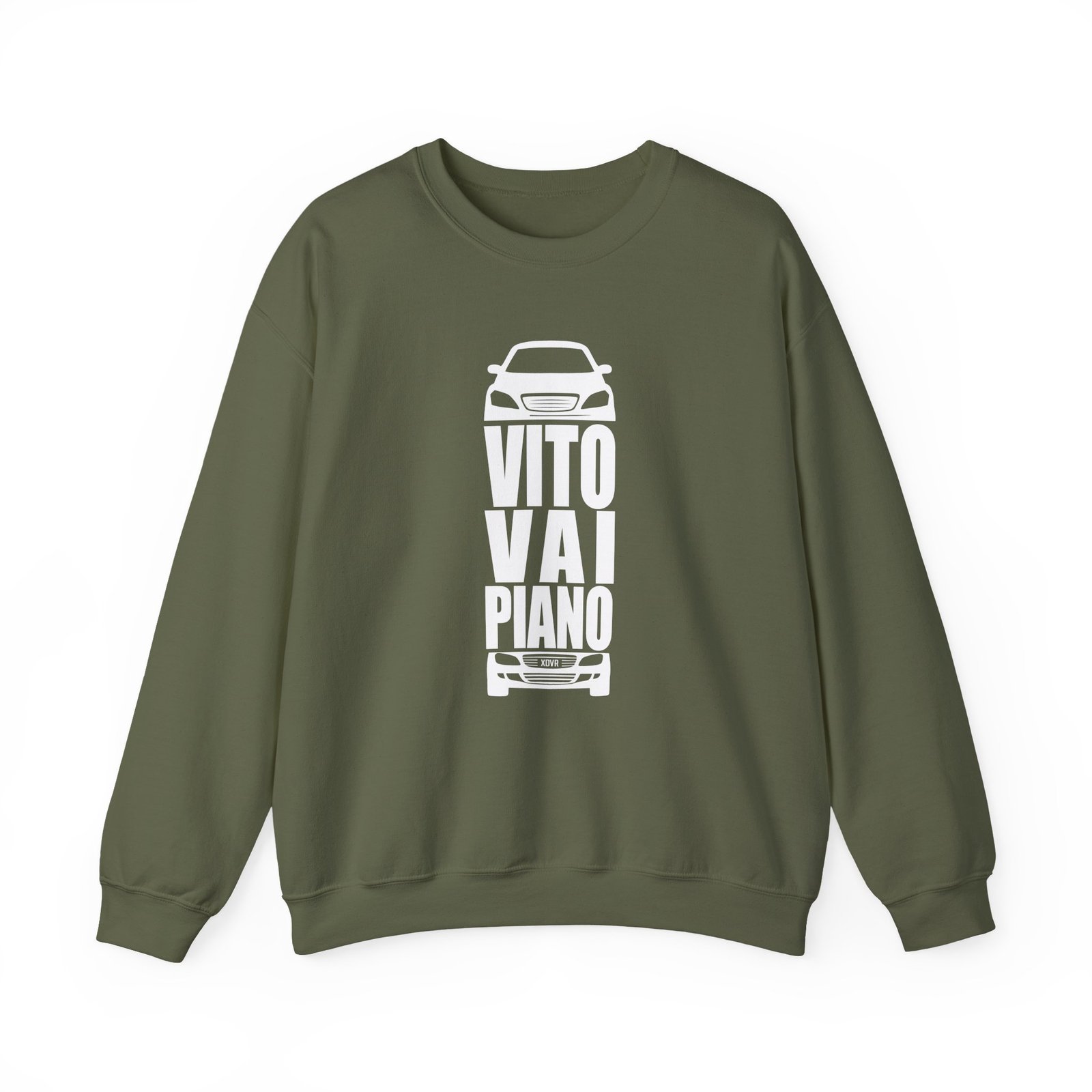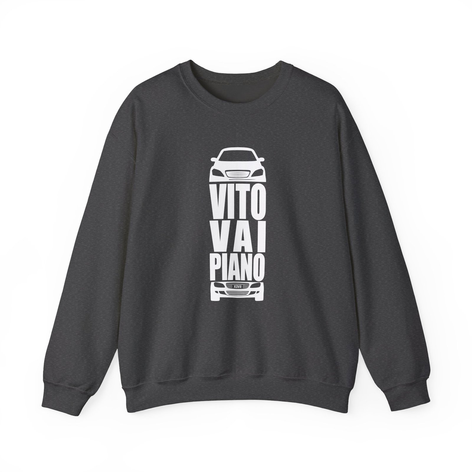 Ideal for any situation, a Sfera Ebbasta Vito Vai Piano unisex heavy blend crewneck sweatshirt is pure comfort. These garments are made from polyester and cotton. This combination helps designs come out looking fresh and beautiful. The collar is ribbed knit, so it retains its shape even after washing. There are no itchy side seams on these sweaters.