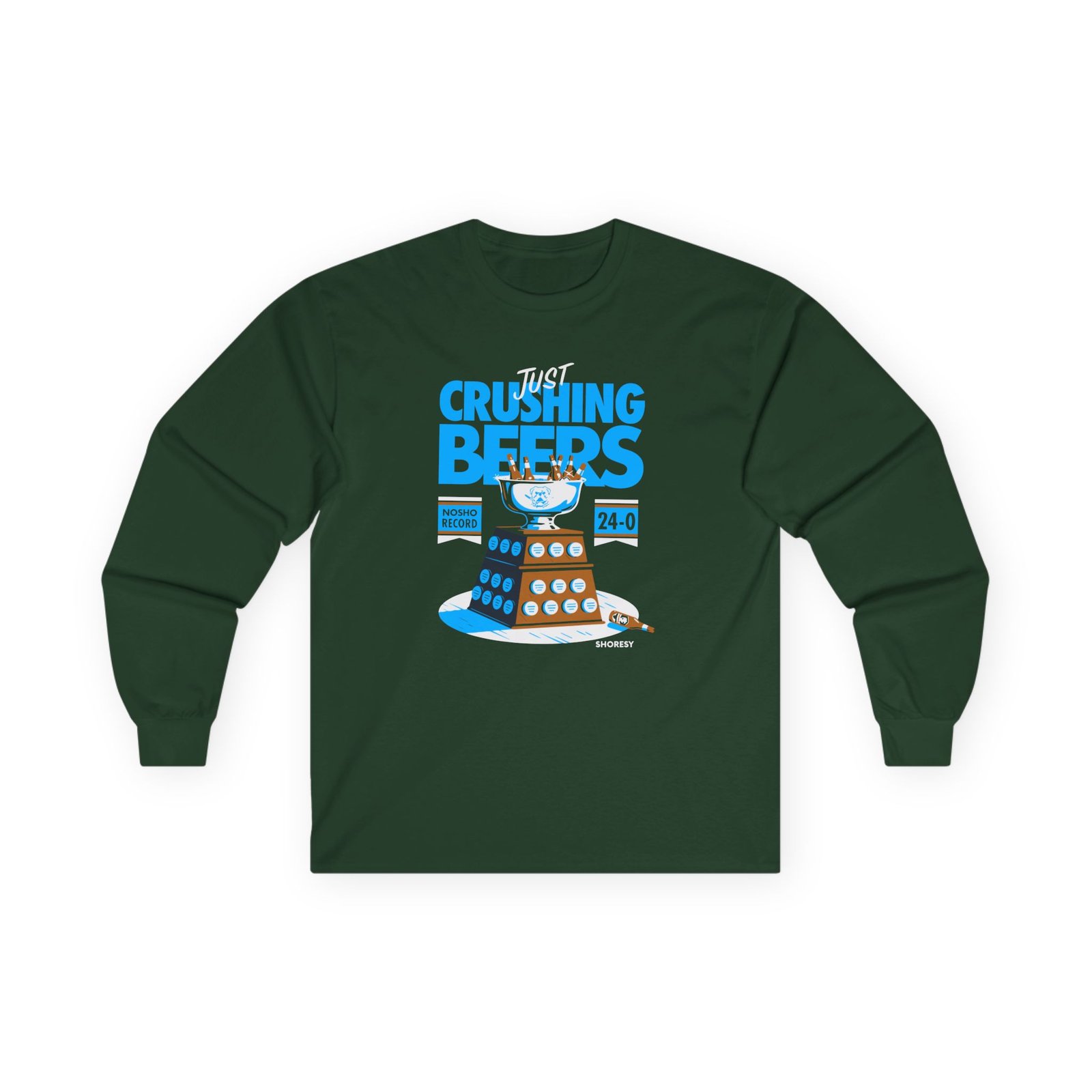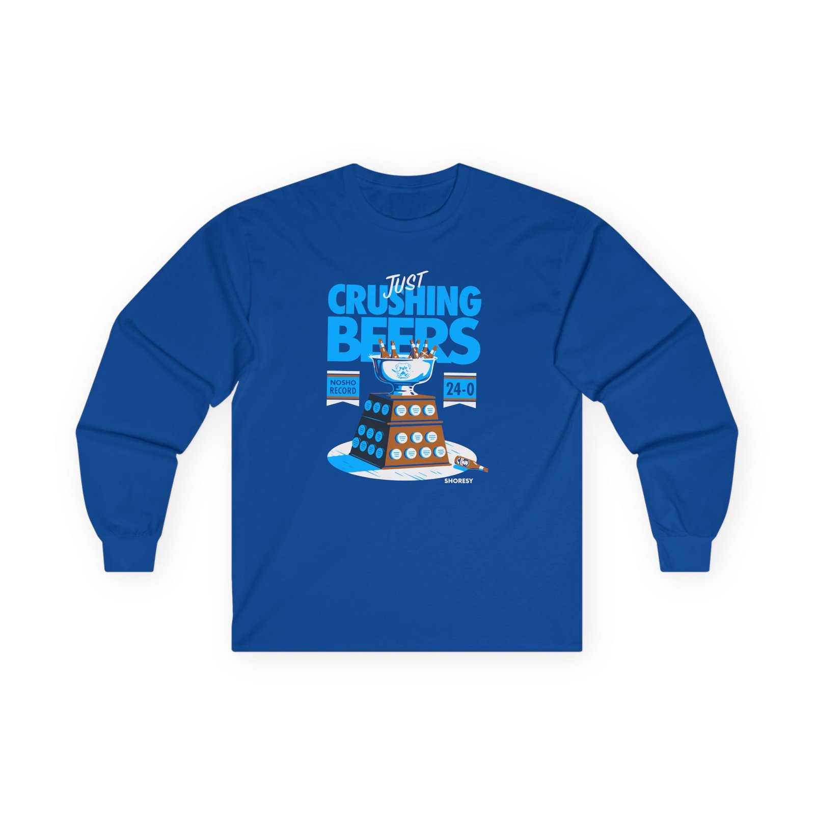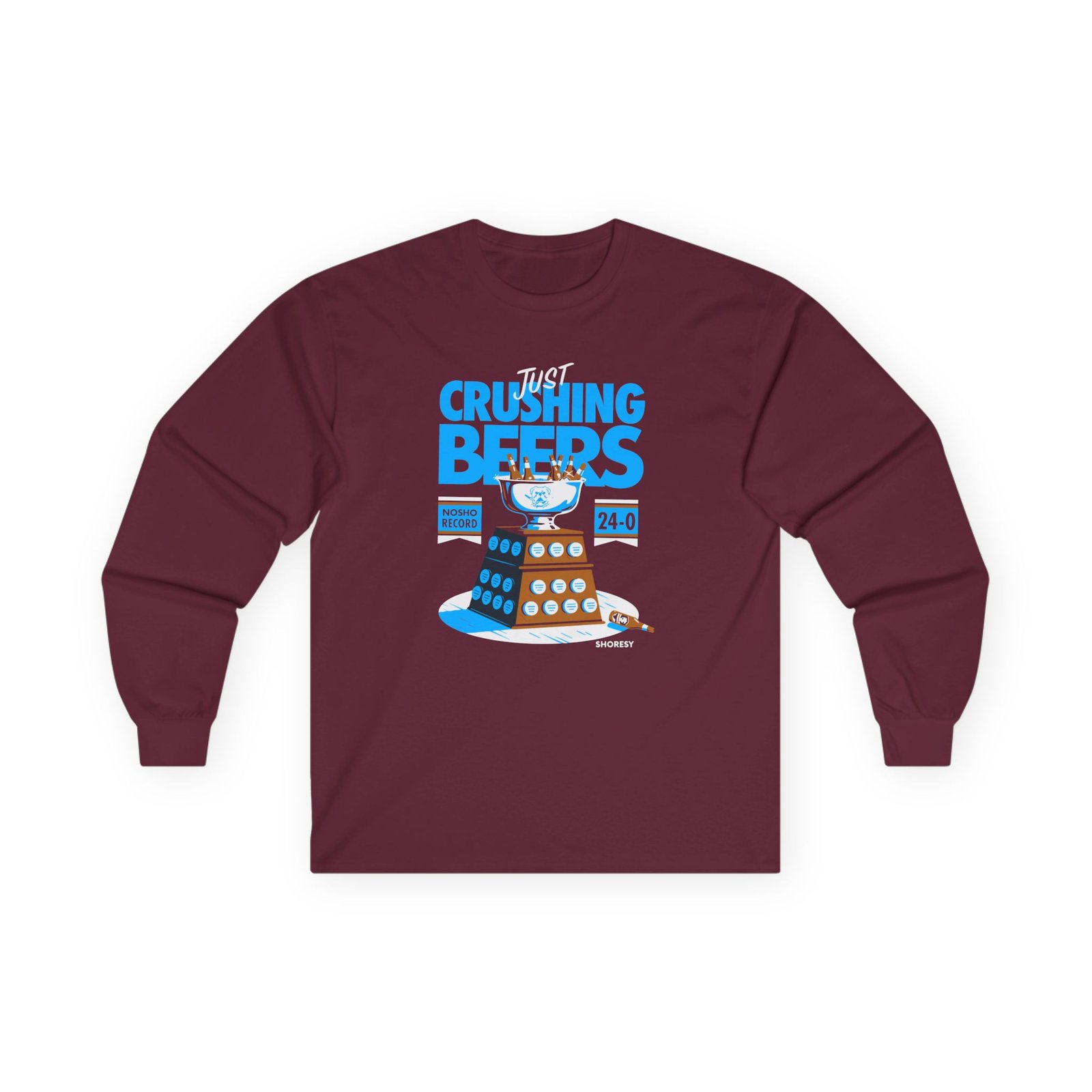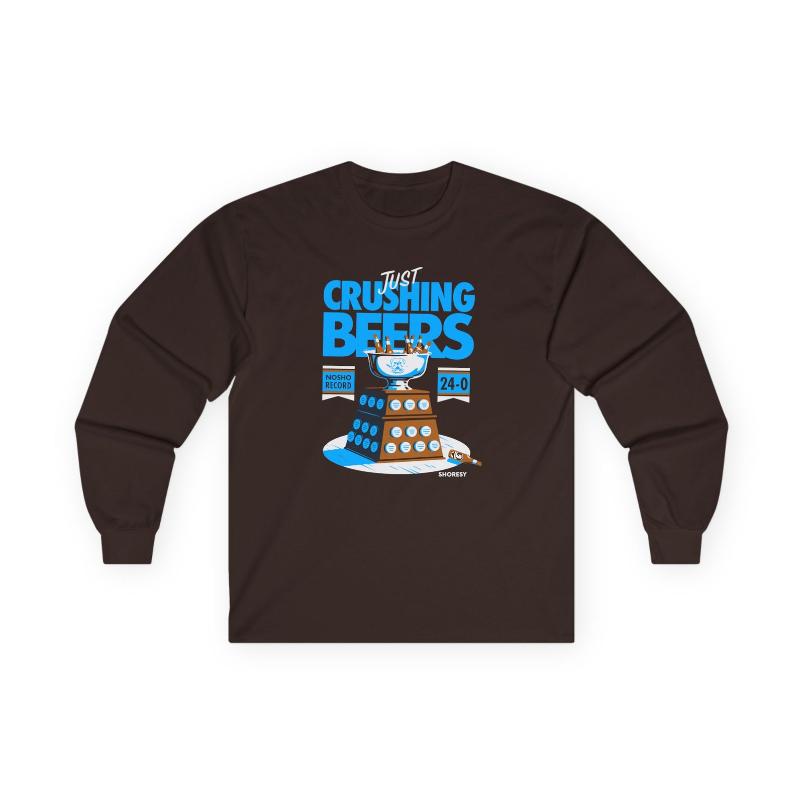 A bit more formal than a standard-issue t-shirt, the Shoresy Just Crushing Beers ultra cotton long sleeve tee is a clear comfort winner. The sleeves also act as a nice frame. There are no side seams. The shoulders are taped for improved durability. This makes for a good fitting around the shoulders and neck. The cotton used for these shirts is environmentally friendly.