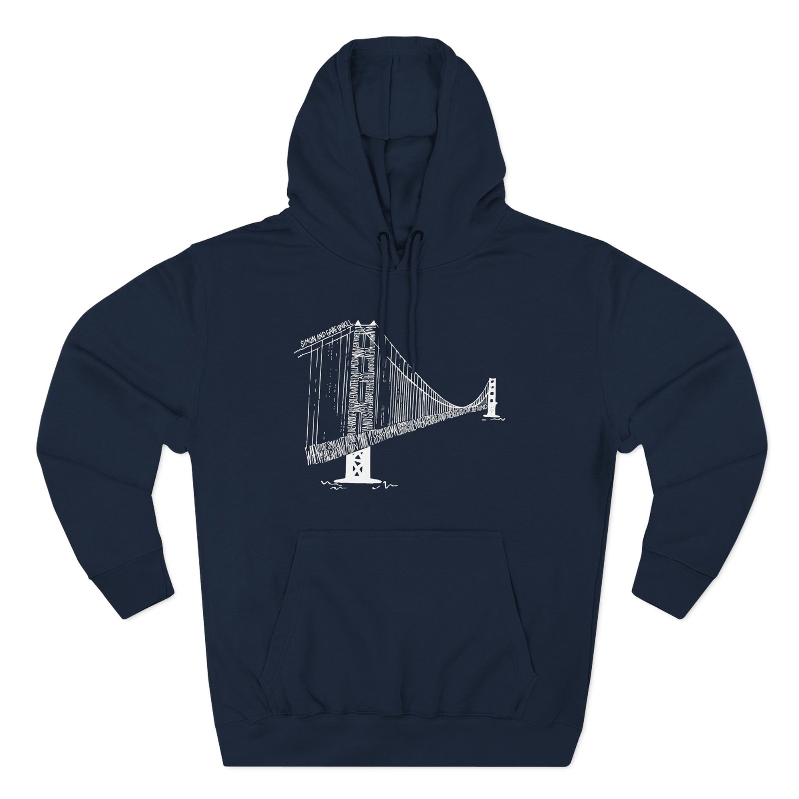 Beat the cold with this Simon and Garfunkel Bridge premium pullover hoodie that’s just the right layer of warm and cozy. Made with three-panel fleece lining, this pullover is double stitched for durability and roomy. Pick one in your favorite color to match your style.