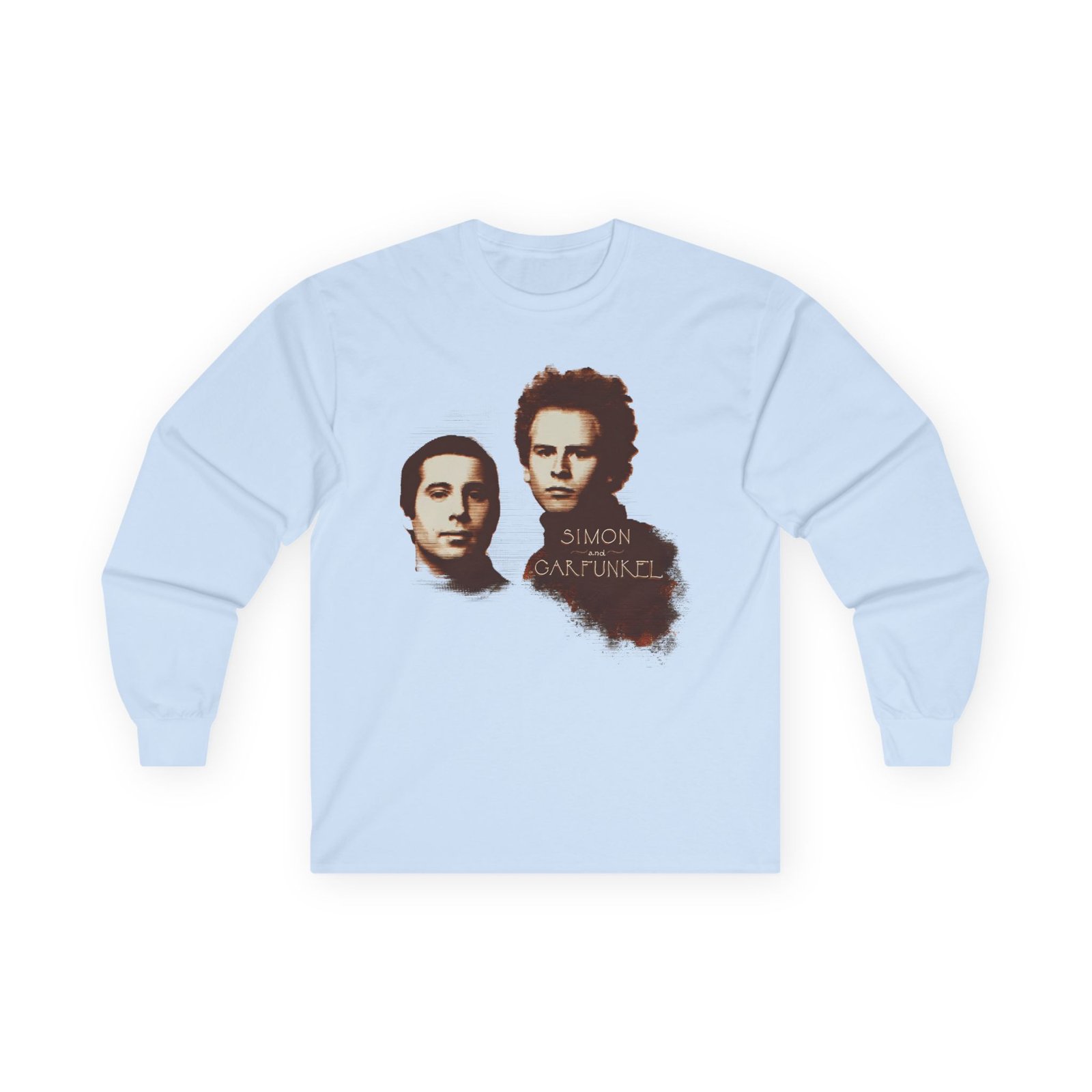 A bit more formal than a standard-issue t-shirt, the Simon and Garfunkel Faces ultra cotton long sleeve tee is a clear comfort winner. The sleeves also act as a nice frame. There are no side seams. The shoulders are taped for improved durability. This makes for a good fitting around the shoulders and neck. The cotton used for these shirts is environmentally friendly.