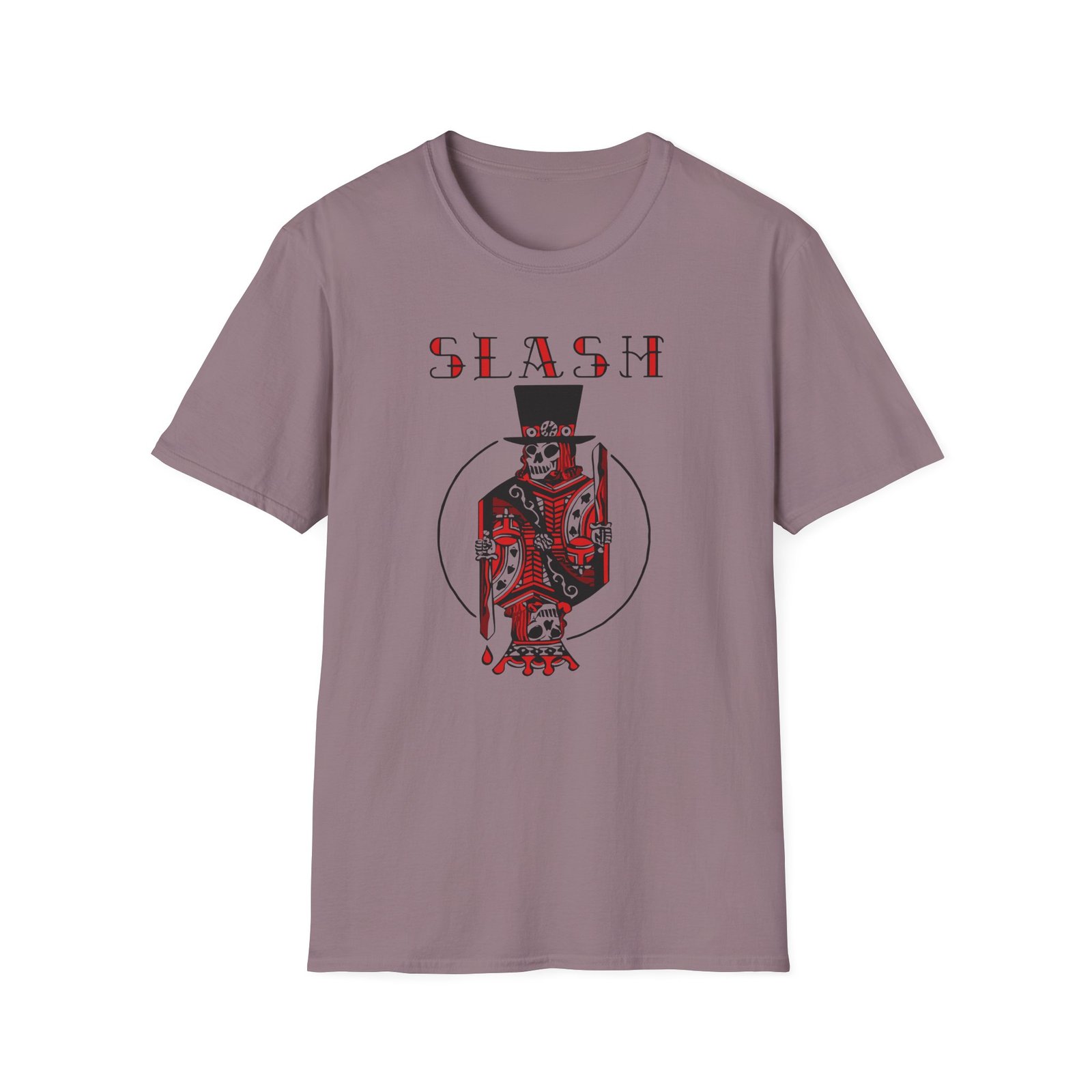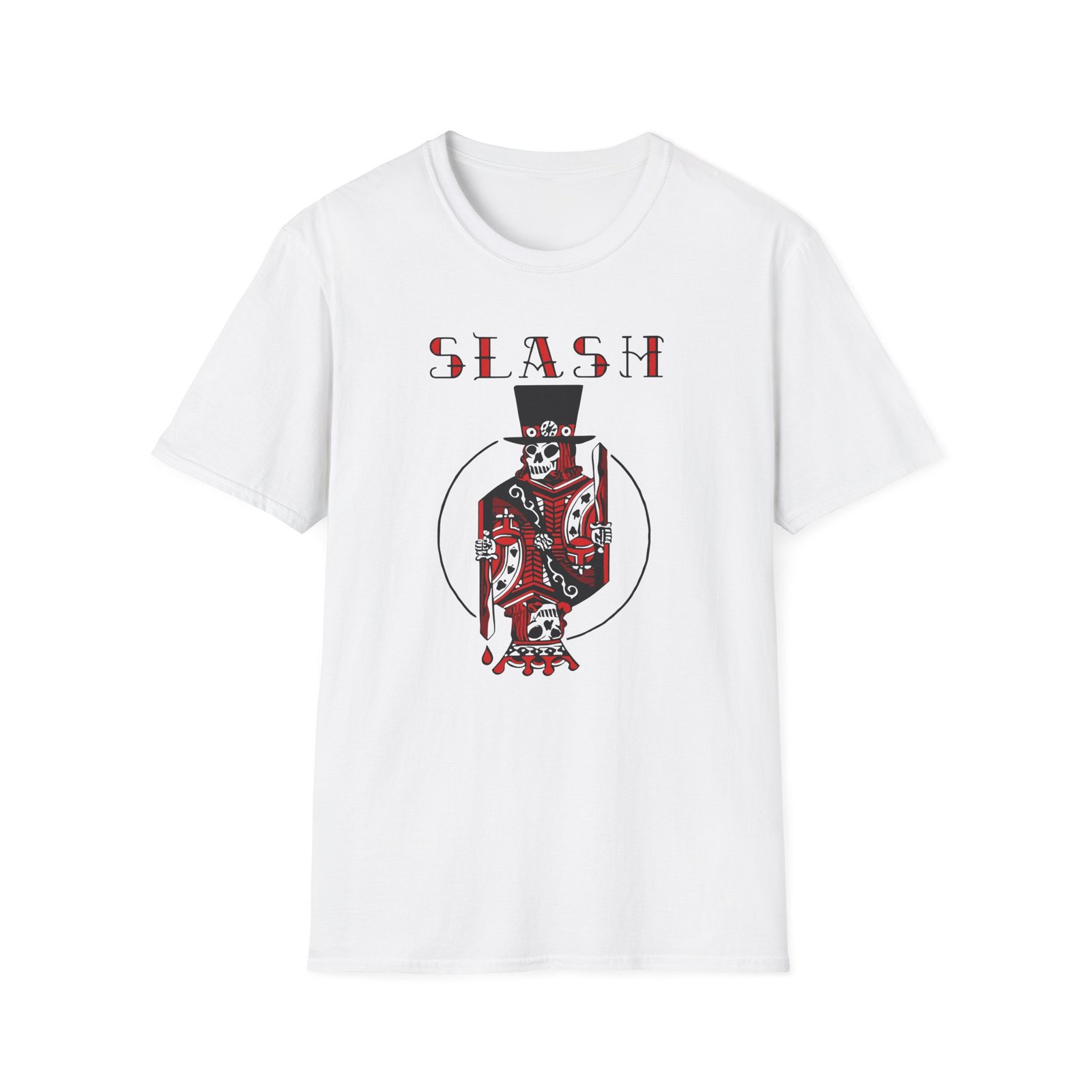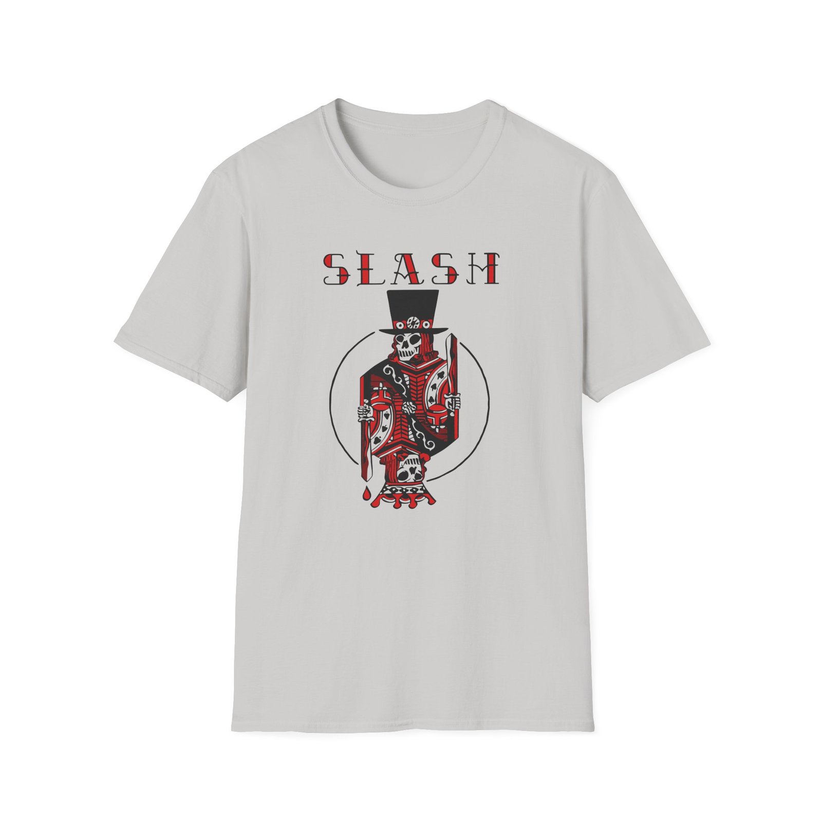 The Slash Royalty Tour unisex soft-style t-shirt puts a new spin on casual comfort. Made from very soft materials, this tee is 100% cotton for solid colors. Heather colors and sports grey include polyester. The shoulders have twill tape for improved durability. There are no side seams. The collar is made with ribbed knitting to prevent curling damage.