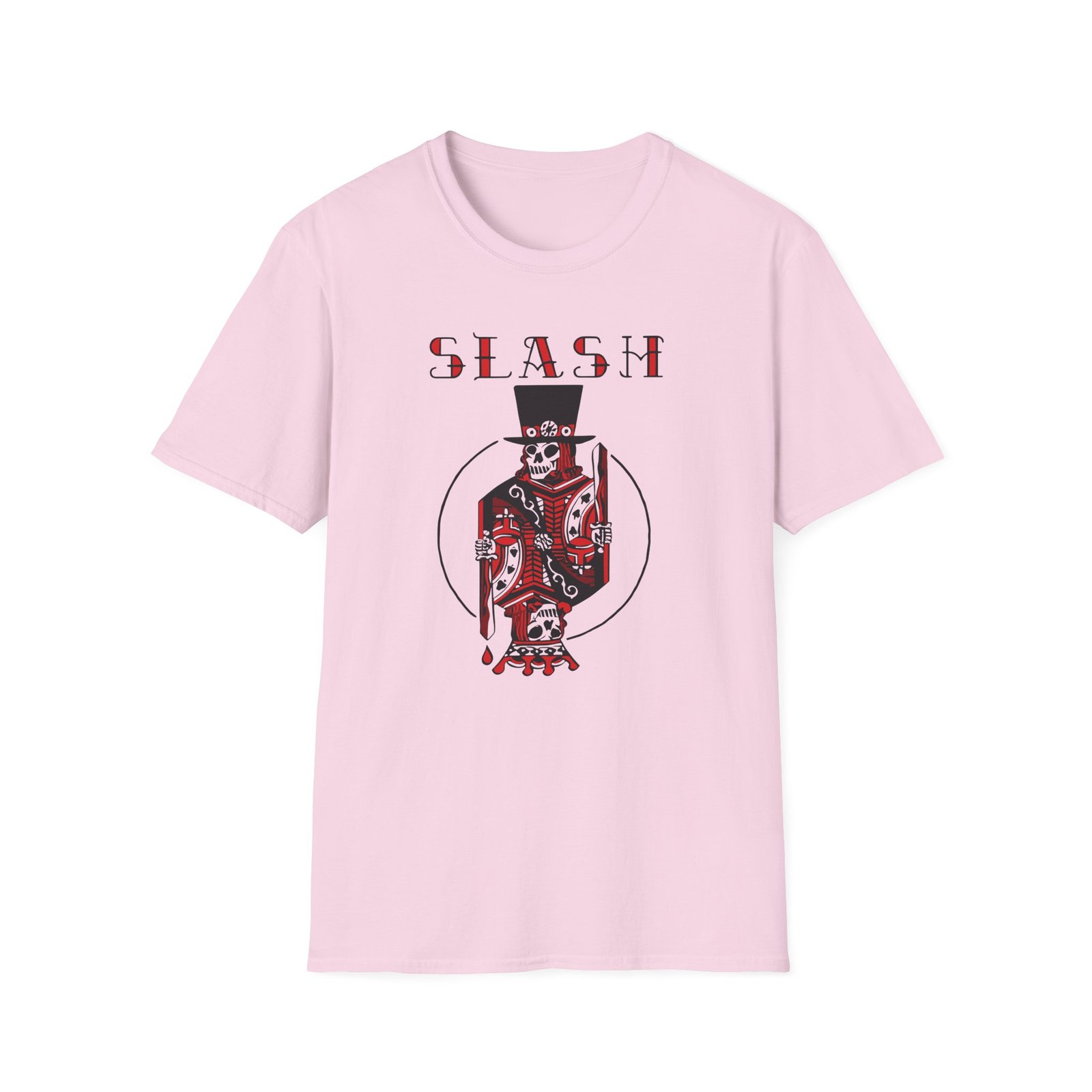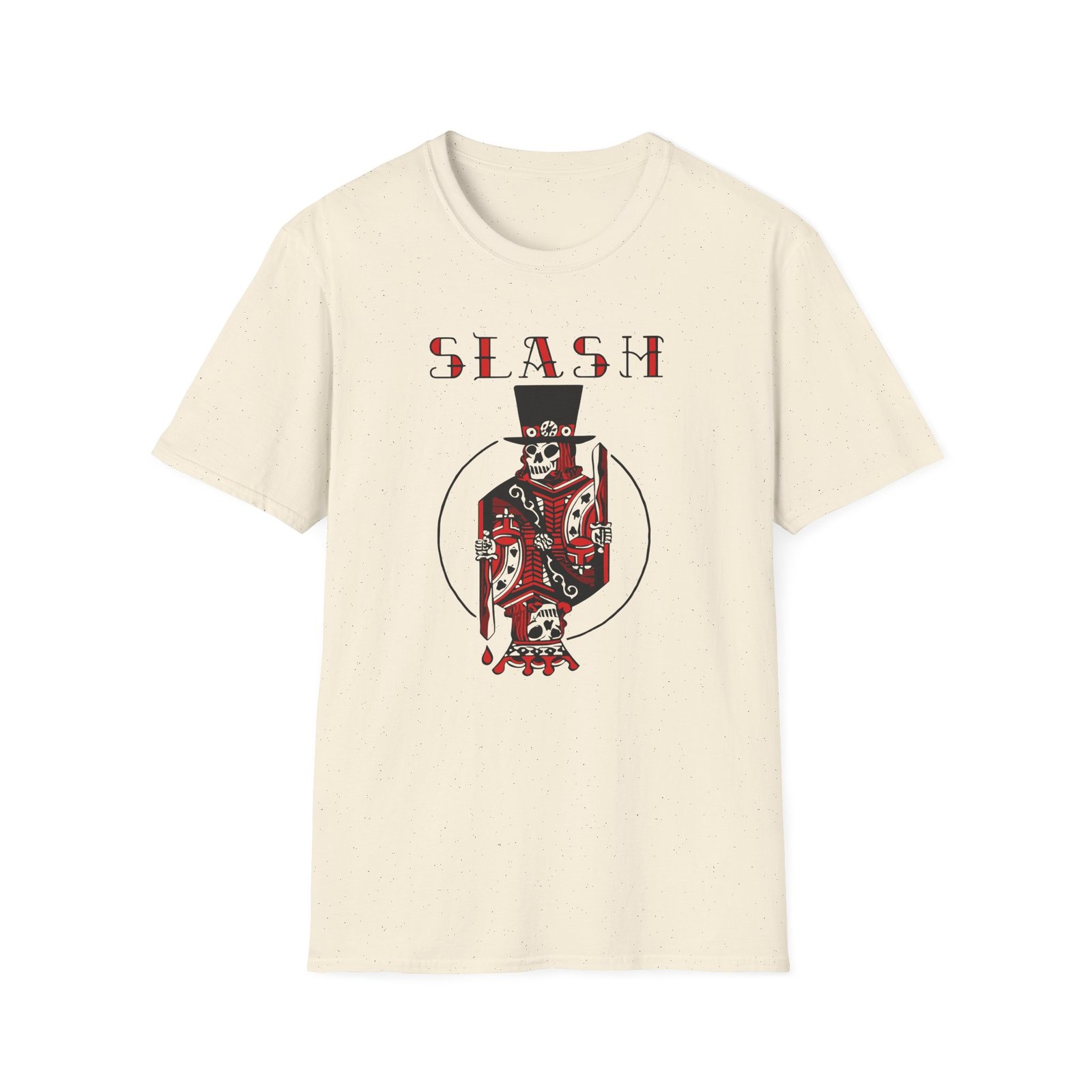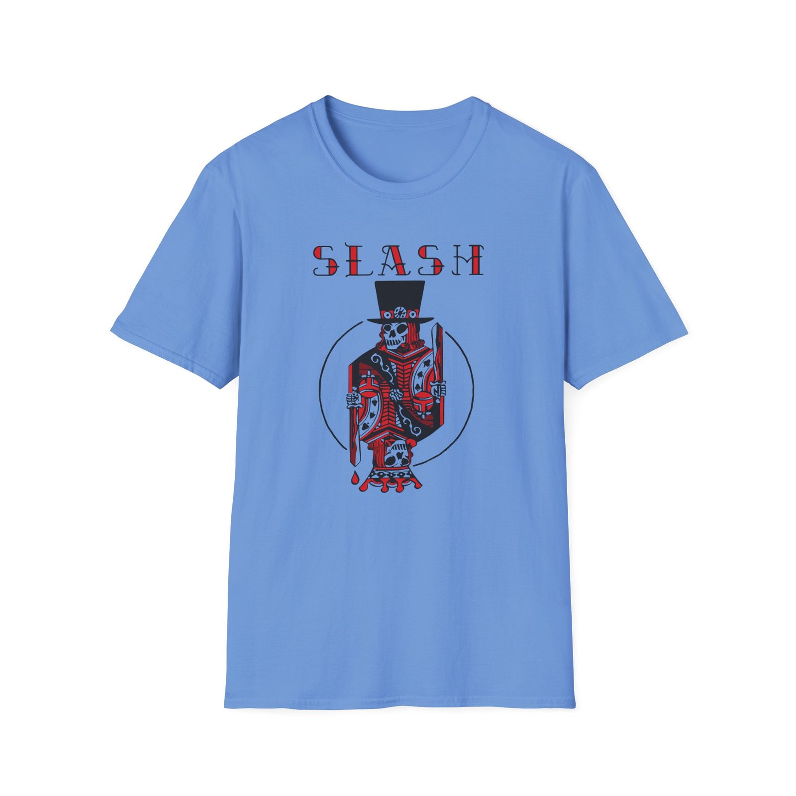 The Slash Royalty Tour unisex soft-style t-shirt puts a new spin on casual comfort. Made from very soft materials, this tee is 100% cotton for solid colors. Heather colors and sports grey include polyester. The shoulders have twill tape for improved durability. There are no side seams. The collar is made with ribbed knitting to prevent curling damage.