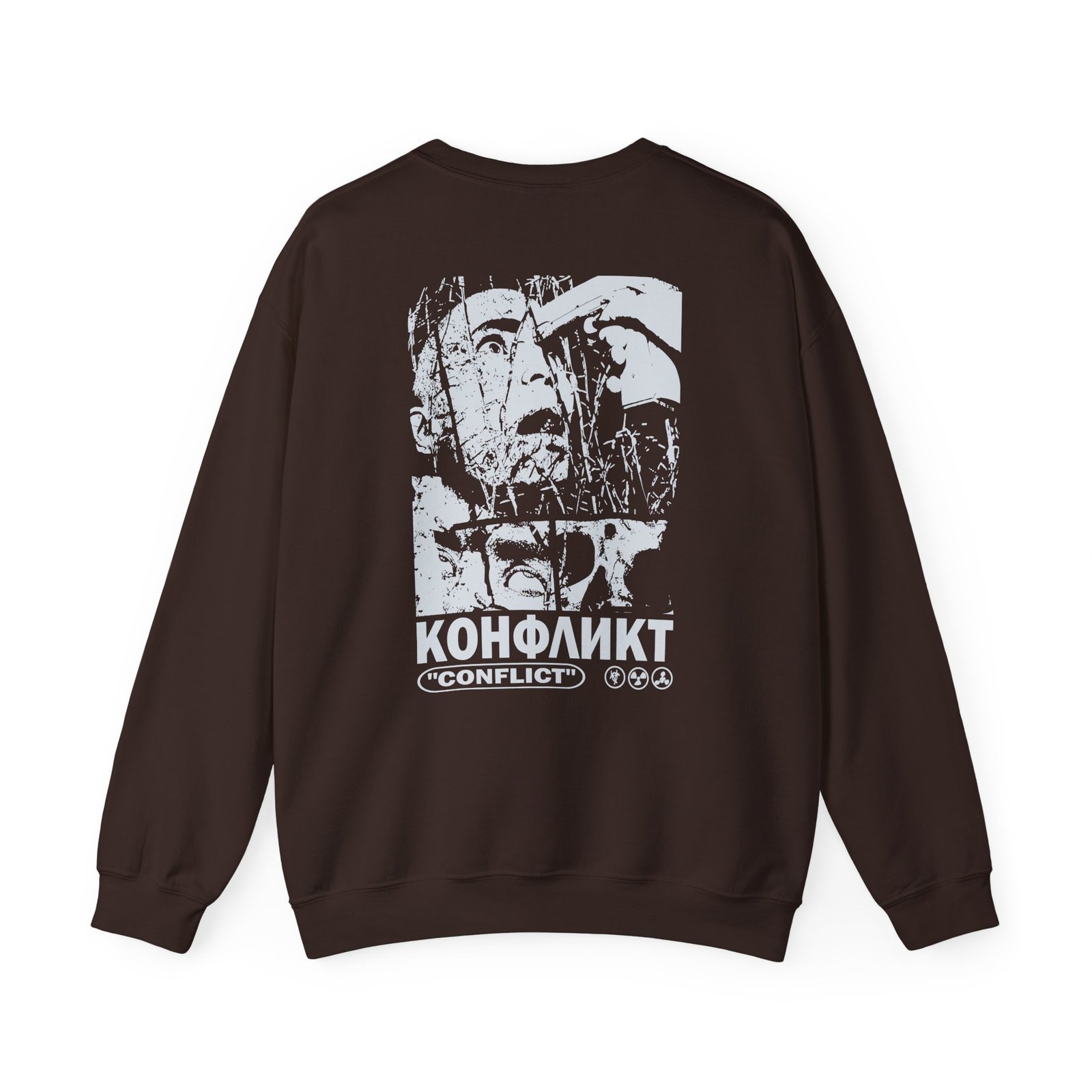 Ideal for any situation, a Slaughter to Prevail Conflict unisex heavy blend crewneck sweatshirt is pure comfort. These garments are made from polyester and cotton. This combination helps designs come out looking fresh and beautiful. The collar is ribbed knit, so it retains its shape even after washing. There are no itchy side seams on these sweaters.
