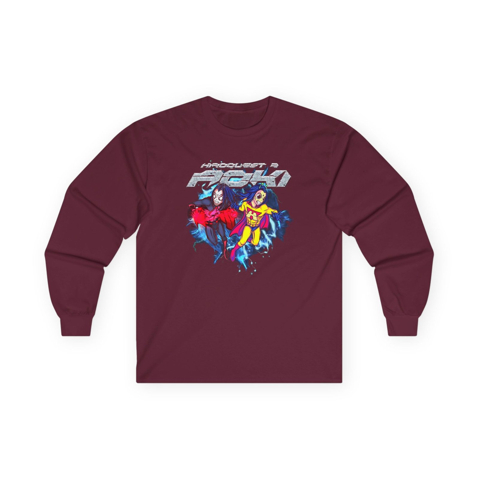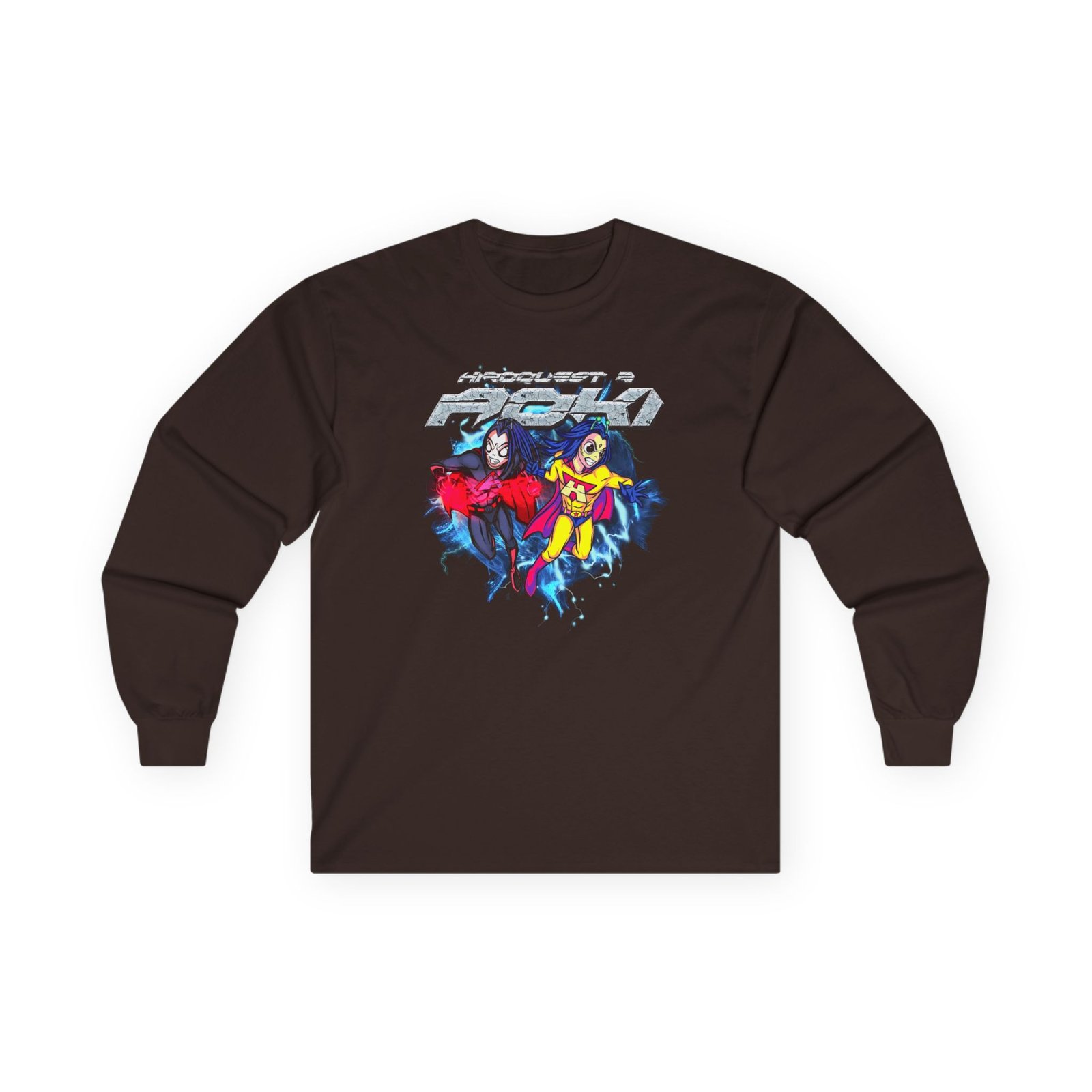 A bit more formal than a standard-issue t-shirt, the Steve Aoki ultra cotton long sleeve tee is a clear comfort winner. The sleeves also act as a nice frame. There are no side seams. The shoulders are taped for improved durability. This makes for a good fitting around the shoulders and neck. The cotton used for these shirts is environmentally friendly.