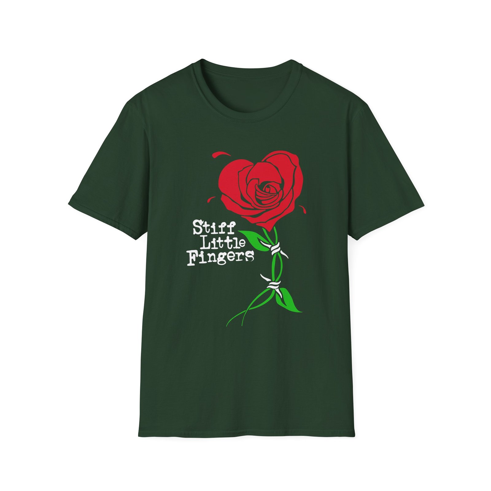 Be the first to review “Stiff Little Fingers Barbed Rose Unisex Softstyle T-Shirt”