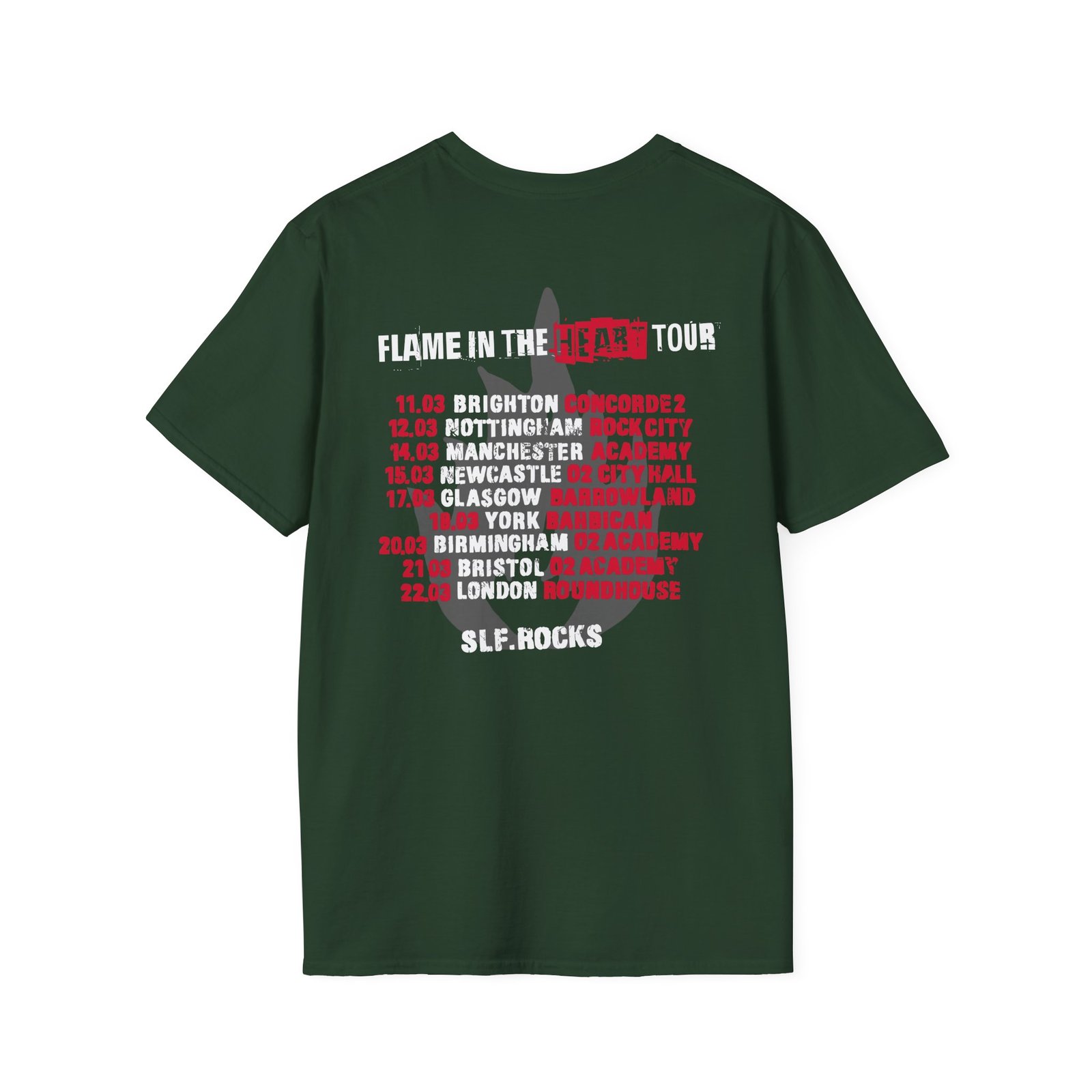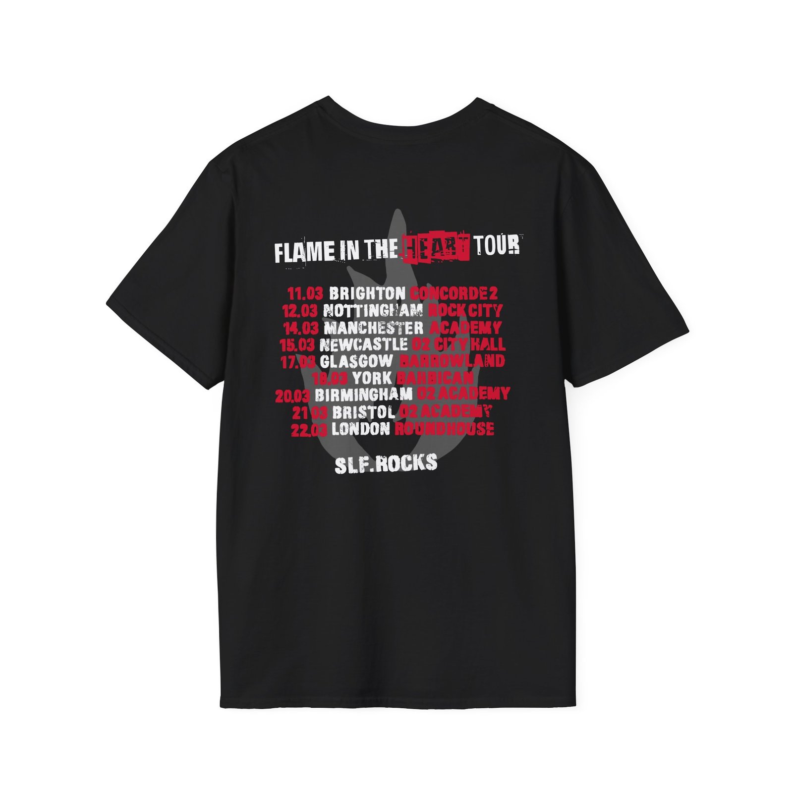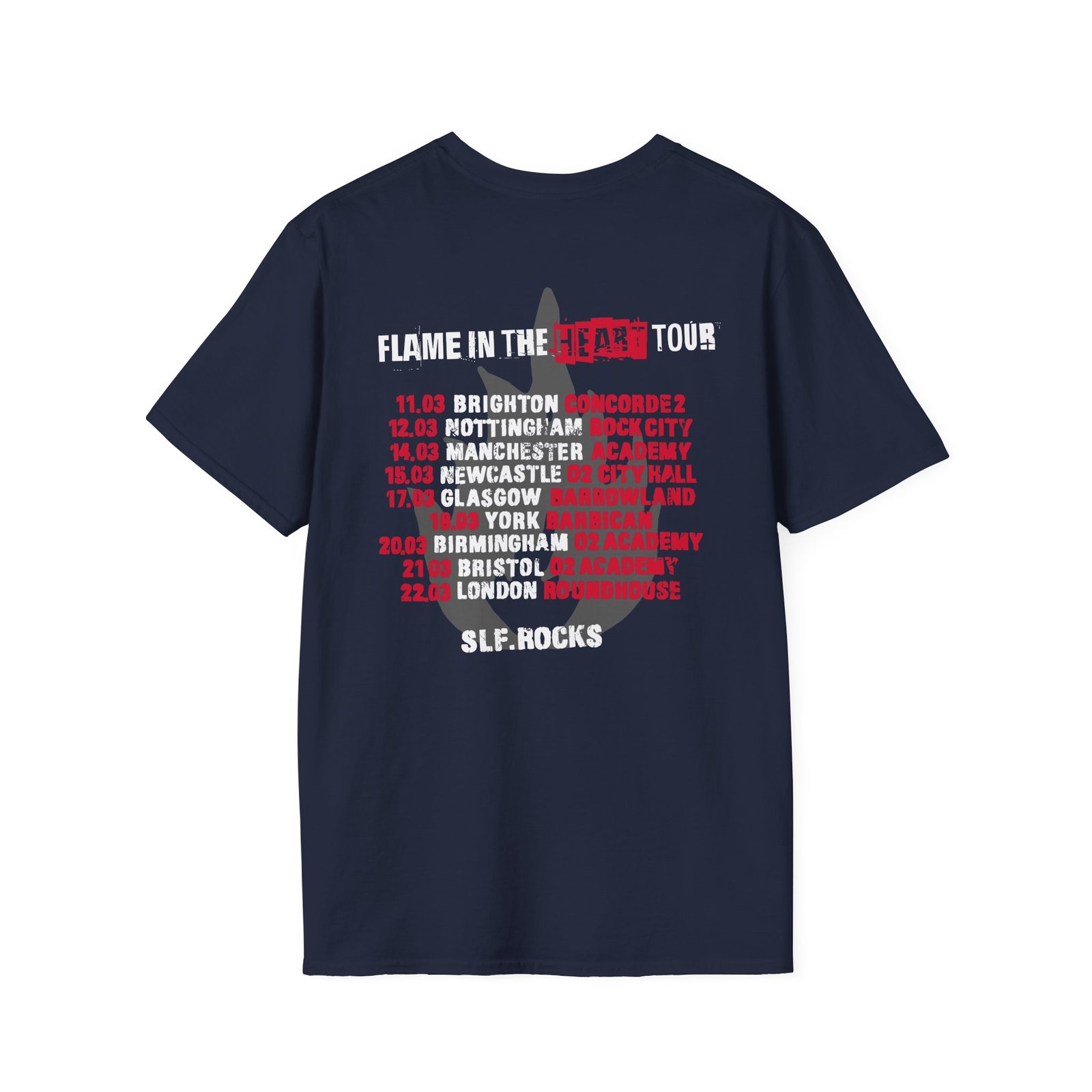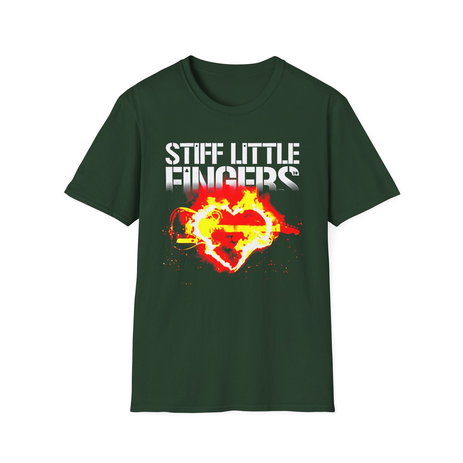 The Stiff Little Fingers Flame In The Heart Tour unisex soft-style t-shirt puts a new spin on casual comfort. Made from very soft materials, this tee is 100% cotton for solid colors. Heather colors and sports grey include polyester. The shoulders have twill tape for improved durability. There are no side seams. The collar is made with ribbed knitting to prevent curling damage.