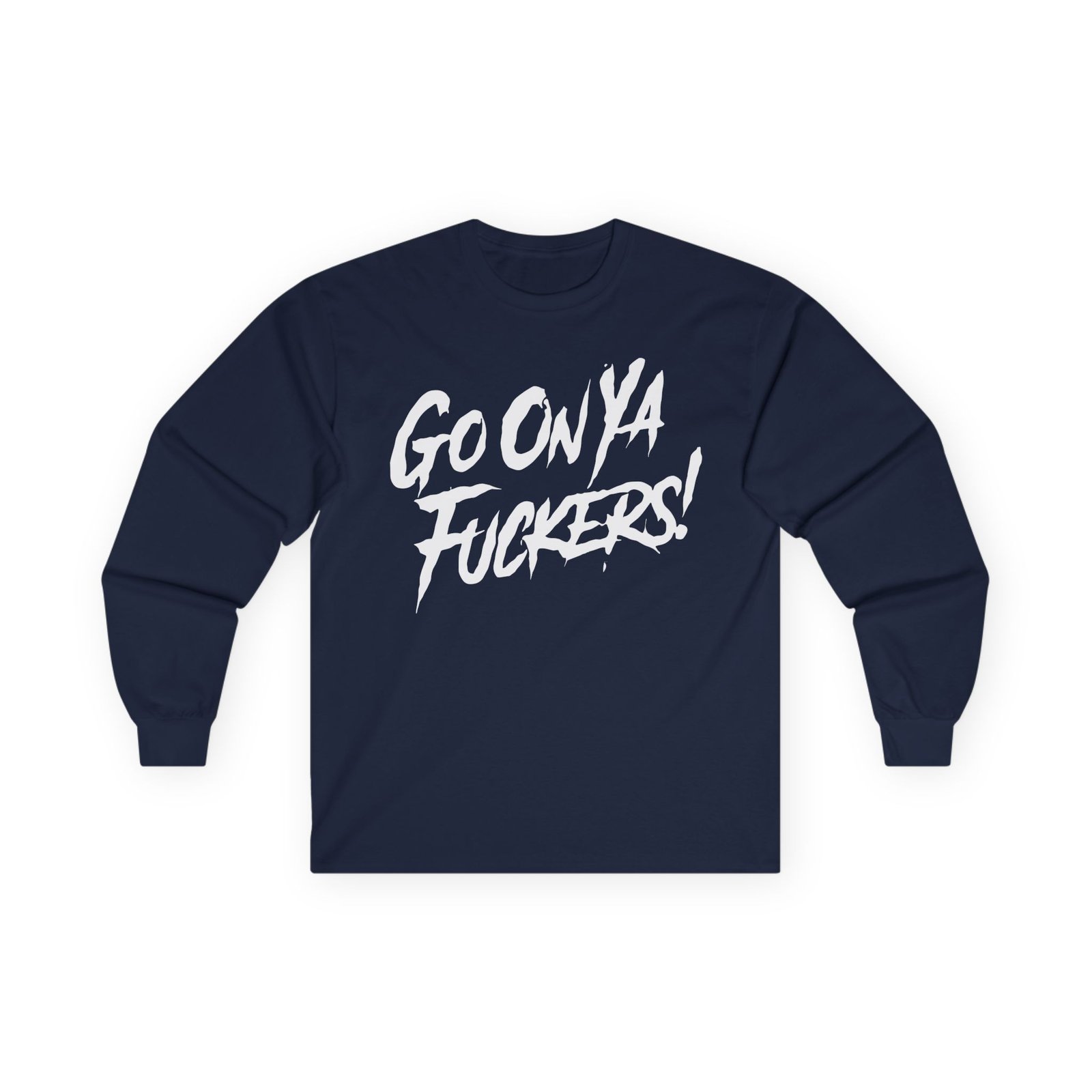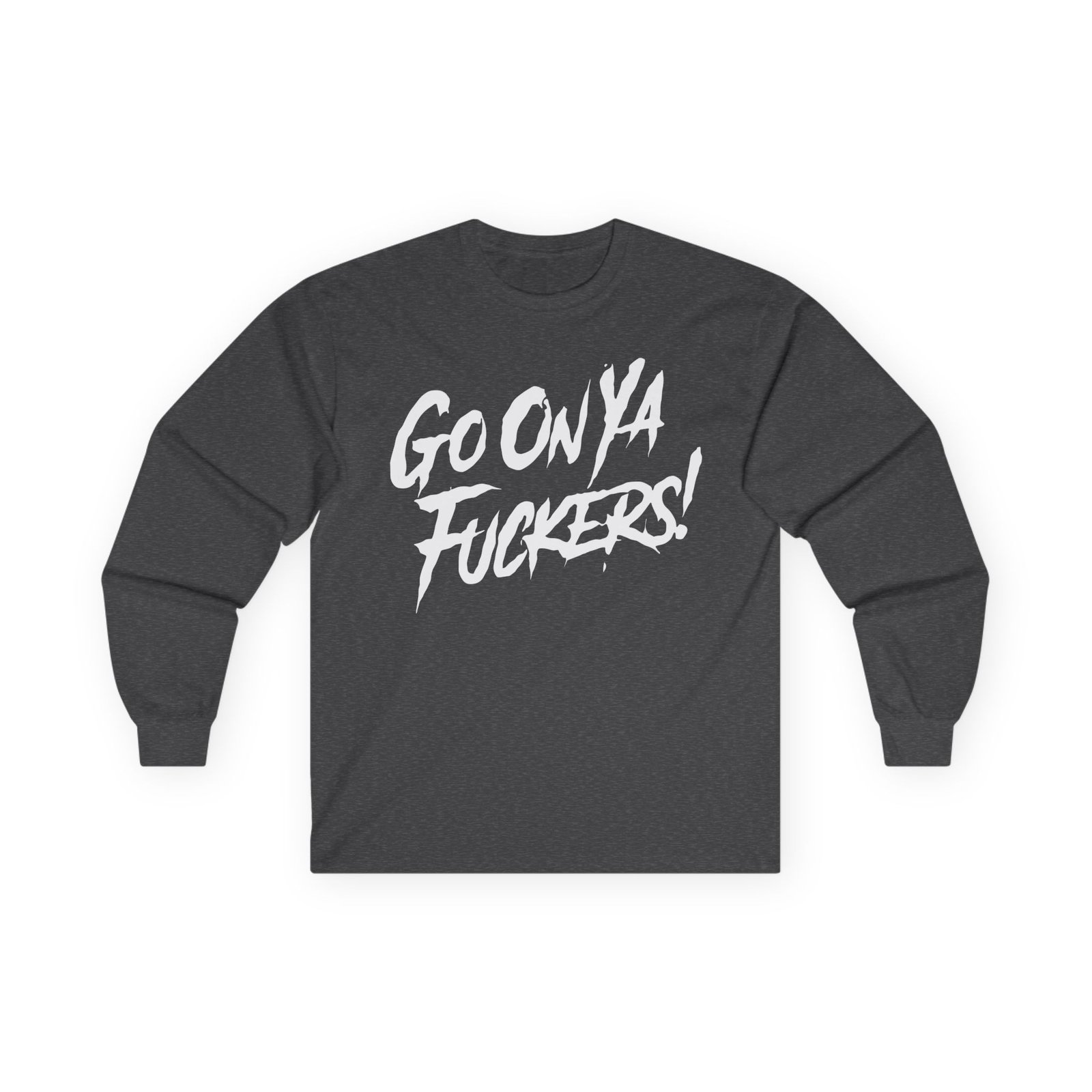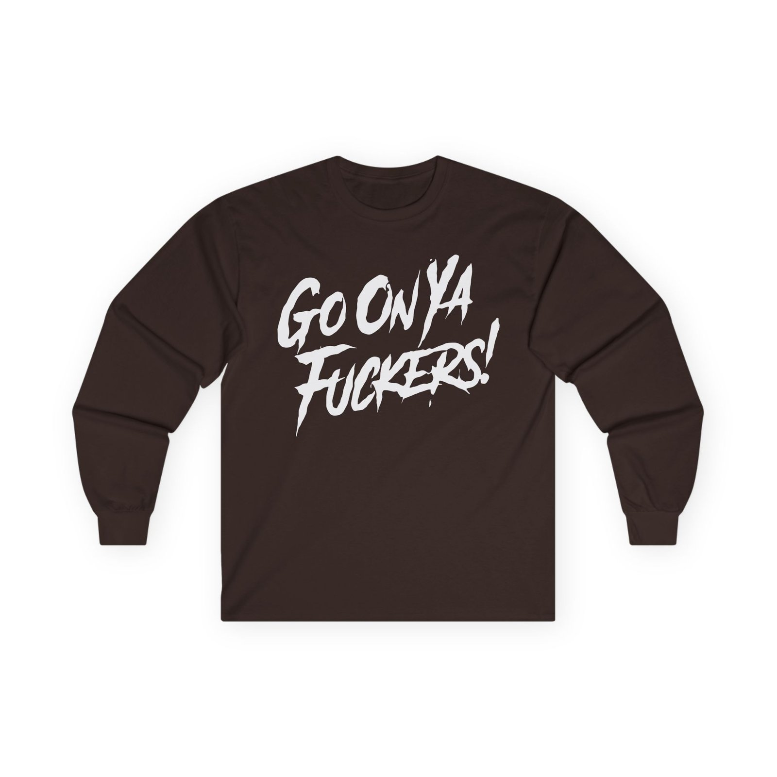 A bit more formal than a standard-issue t-shirt, the Stiff Little Fingers Go On Ya Fuckers ultra cotton long sleeve tee is a clear comfort winner. The sleeves also act as a nice frame. There are no side seams. The shoulders are taped for improved durability. This makes for a good fitting around the shoulders and neck. The cotton used for these shirts is environmentally friendly.