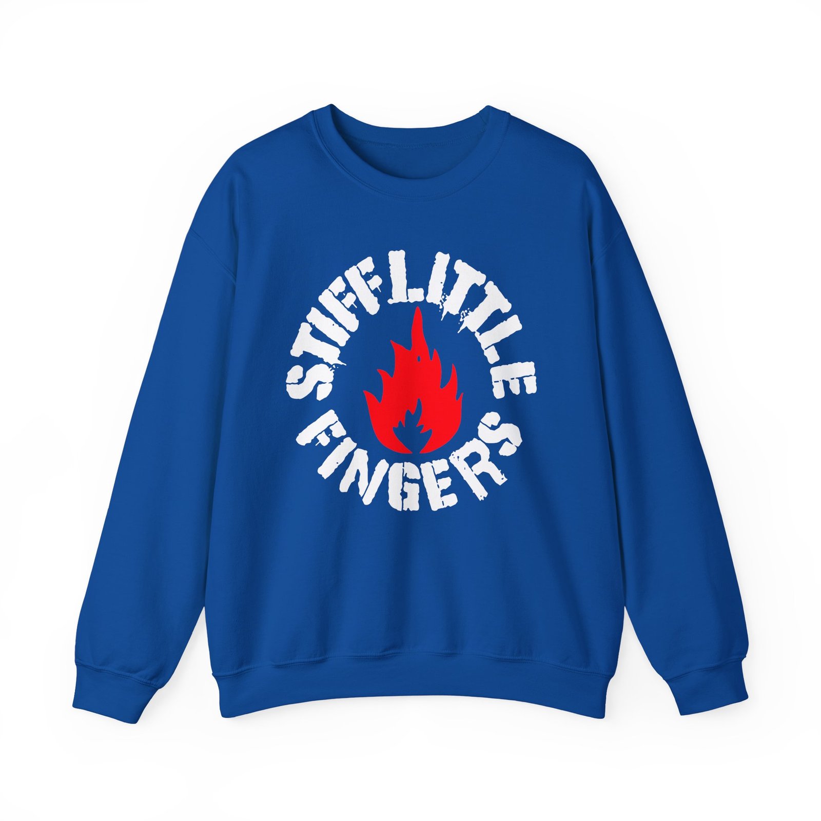 Ideal for any situation, a Stiff Little Fingers Logo unisex heavy blend crewneck sweatshirt is pure comfort. These garments are made from polyester and cotton. This combination helps designs come out looking fresh and beautiful. The collar is ribbed knit, so it retains its shape even after washing. There are no itchy side seams on these sweaters.