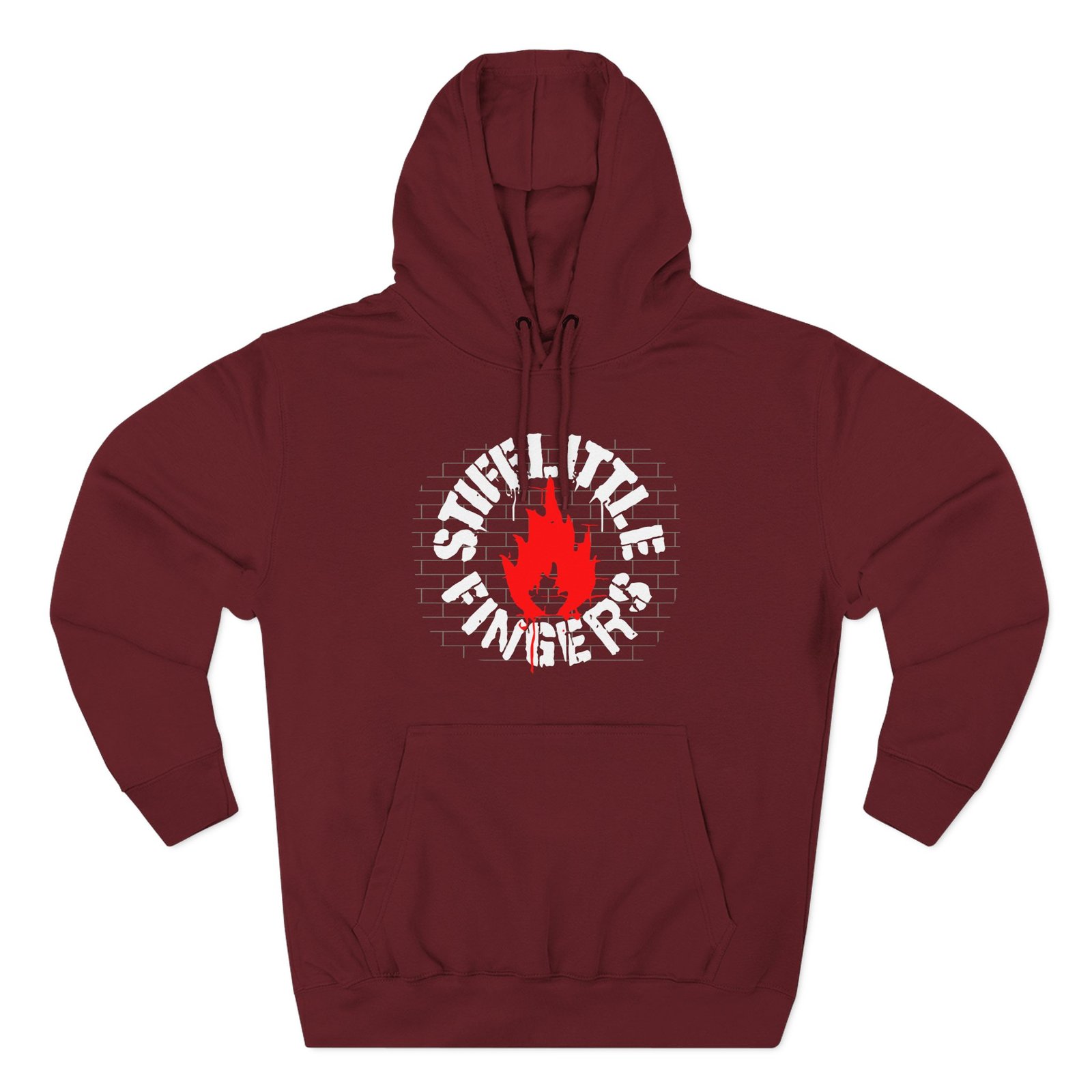 Beat the cold with this Stiff Little Fingers premium pullover hoodie that’s just the right layer of warm and cozy. Made with three-panel fleece lining, this pullover is double stitched for durability and roomy. Pick one in your favorite color to match your style.