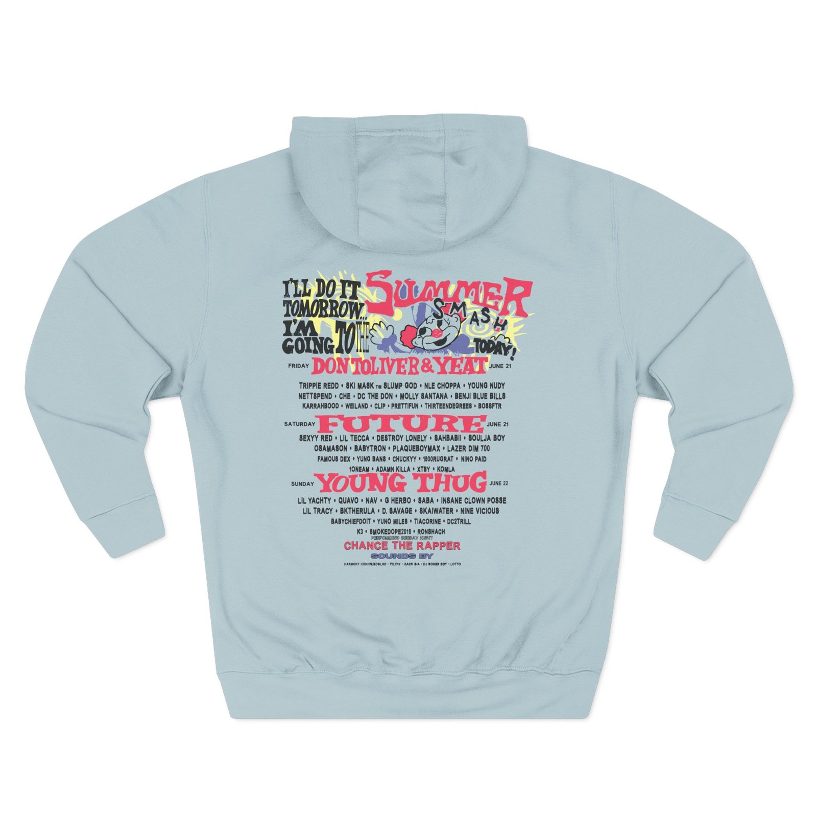 Beat the cold with this Summer Smash Do It Tomorrow premium pullover hoodie that’s just the right layer of warm and cozy. Made with three-panel fleece lining, this pullover is double stitched for durability and roomy. Pick one in your favorite color to match your style.