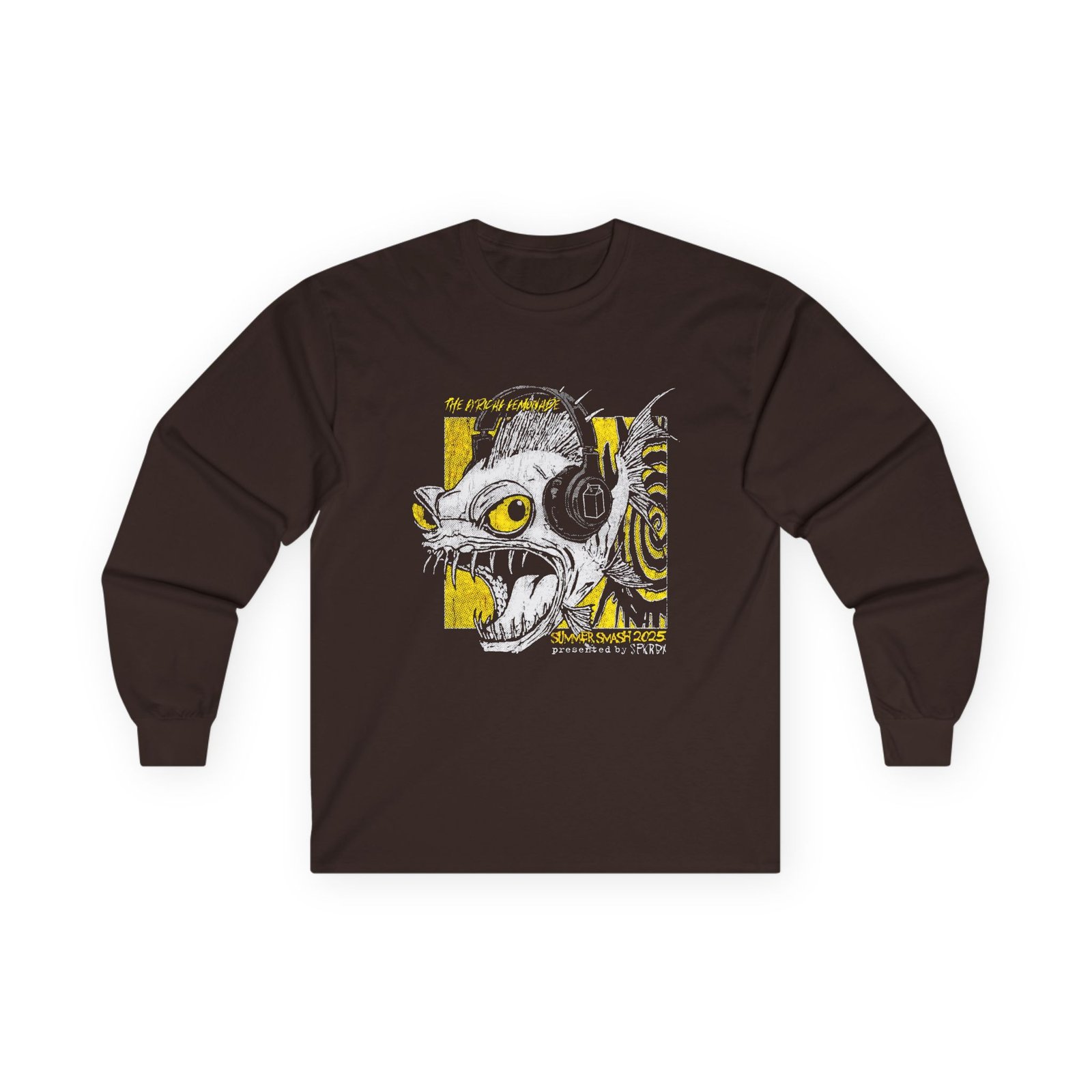 A bit more formal than a standard-issue t-shirt, the Summer Smash Fishphones ultra cotton long sleeve tee is a clear comfort winner. The sleeves also act as a nice frame. There are no side seams. The shoulders are taped for improved durability. This makes for a good fitting around the shoulders and neck. The cotton used for these shirts is environmentally friendly.