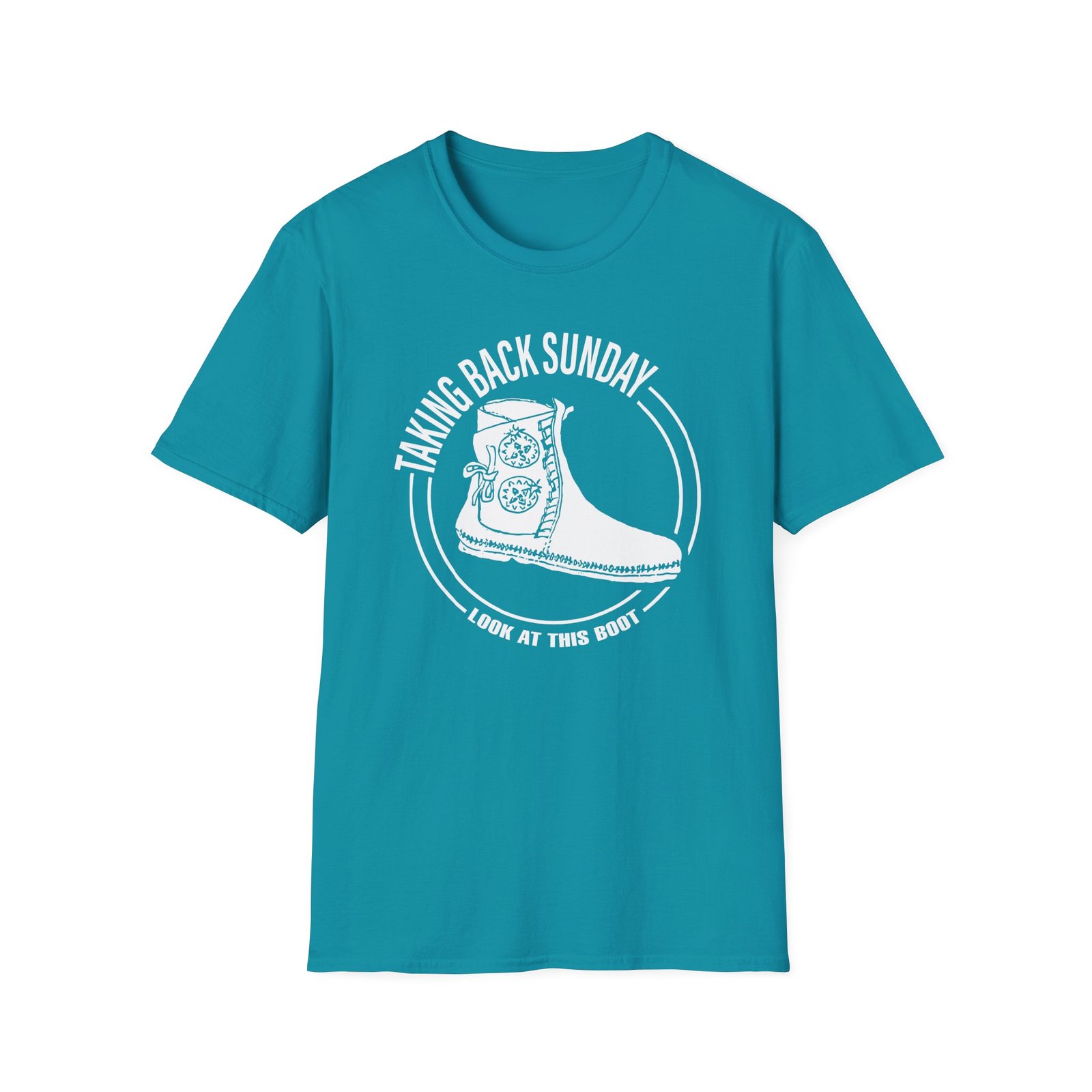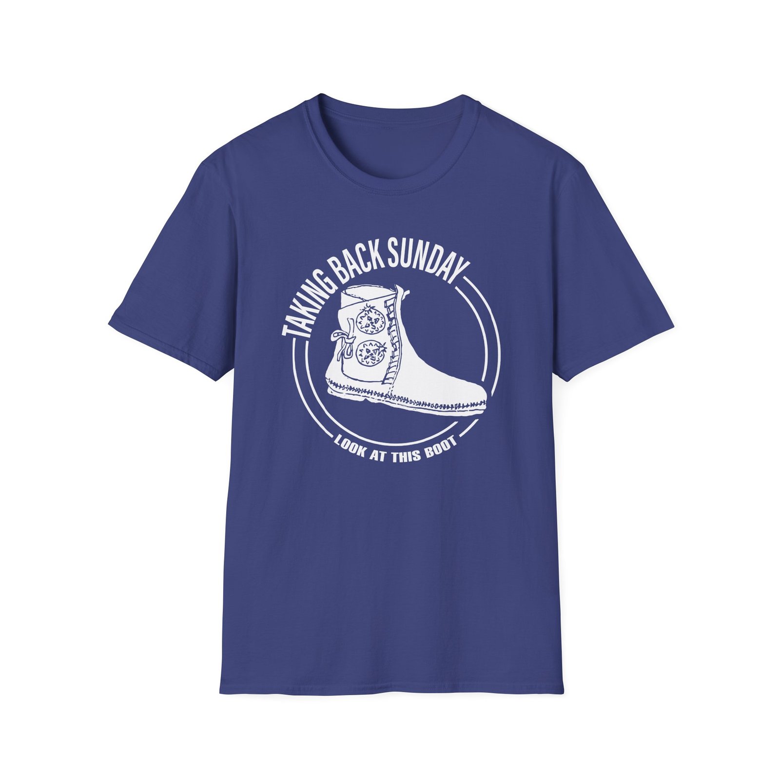 The Taking Back Sunday Boot unisex soft-style t-shirt puts a new spin on casual comfort. Made from very soft materials, this tee is 100% cotton for solid colors. Heather colors and sports grey include polyester. The shoulders have twill tape for improved durability. There are no side seams. The collar is made with ribbed knitting to prevent curling damage.