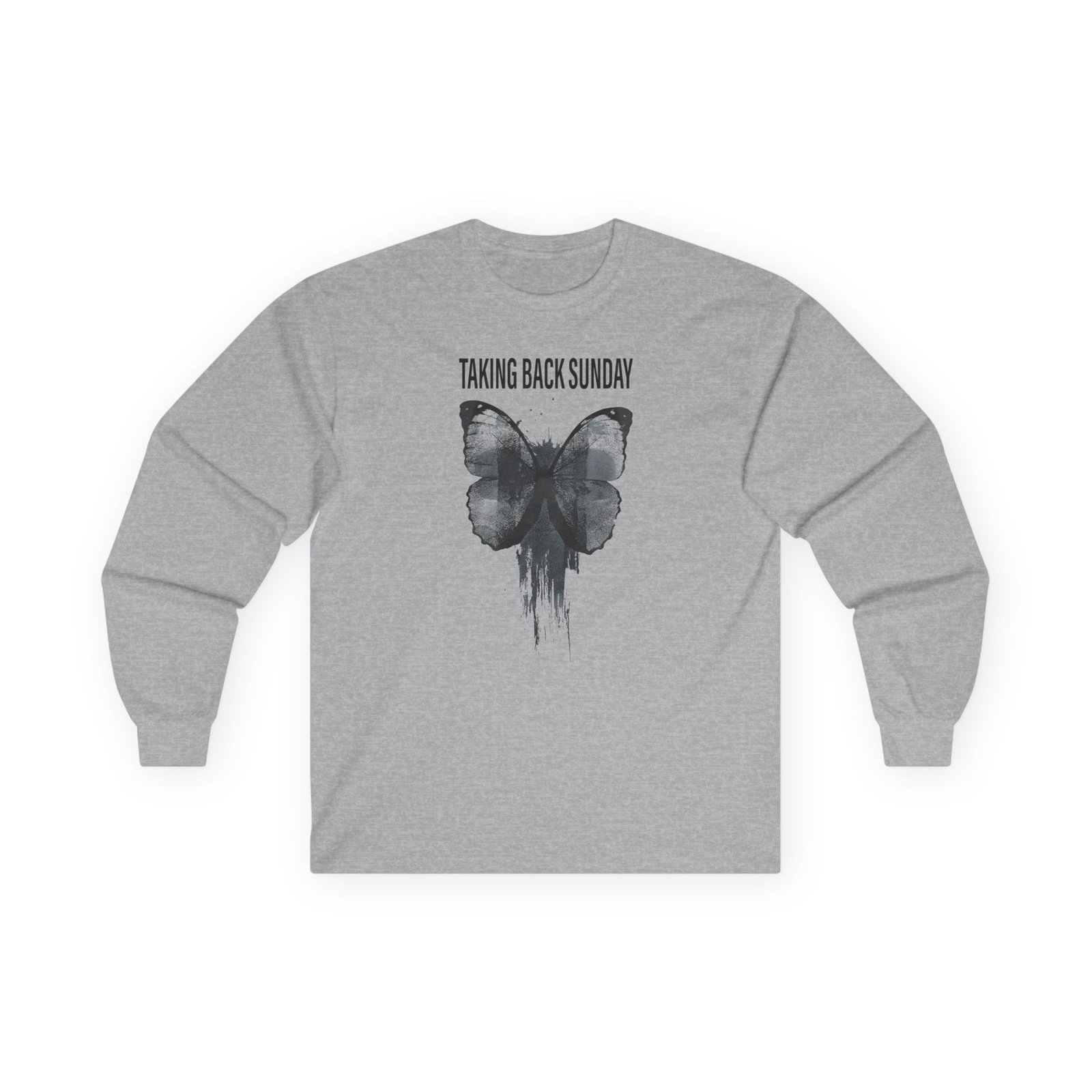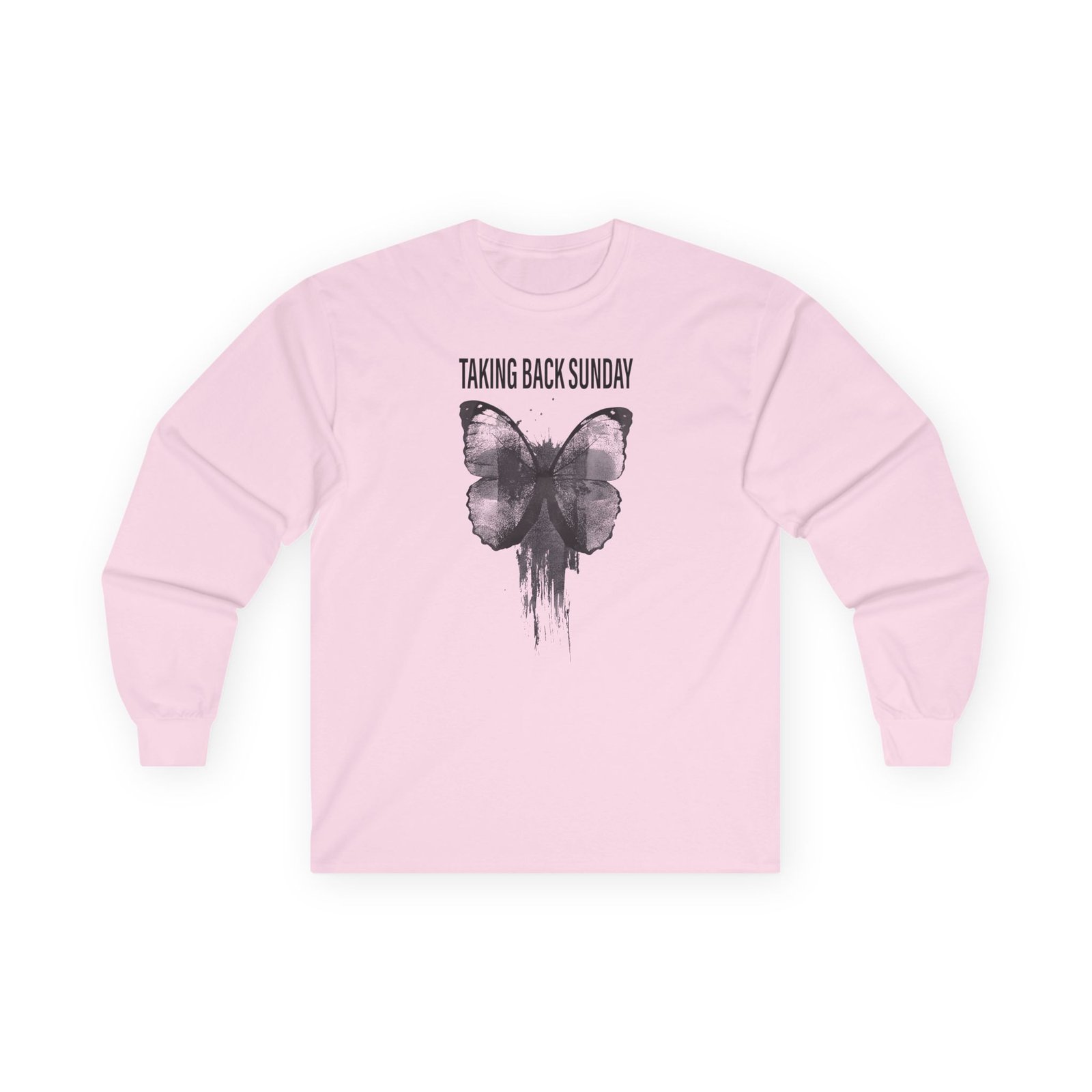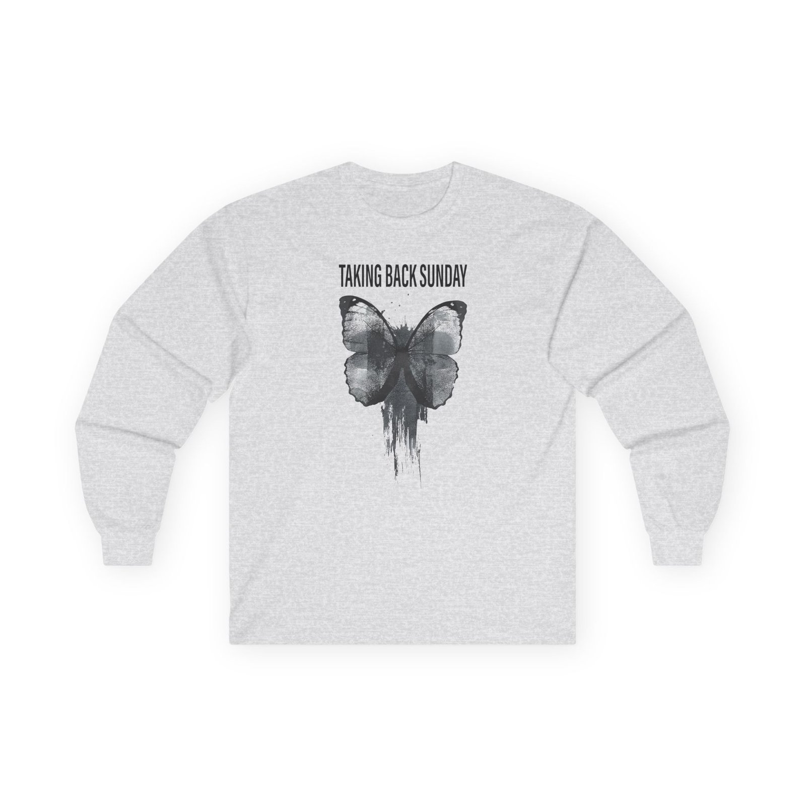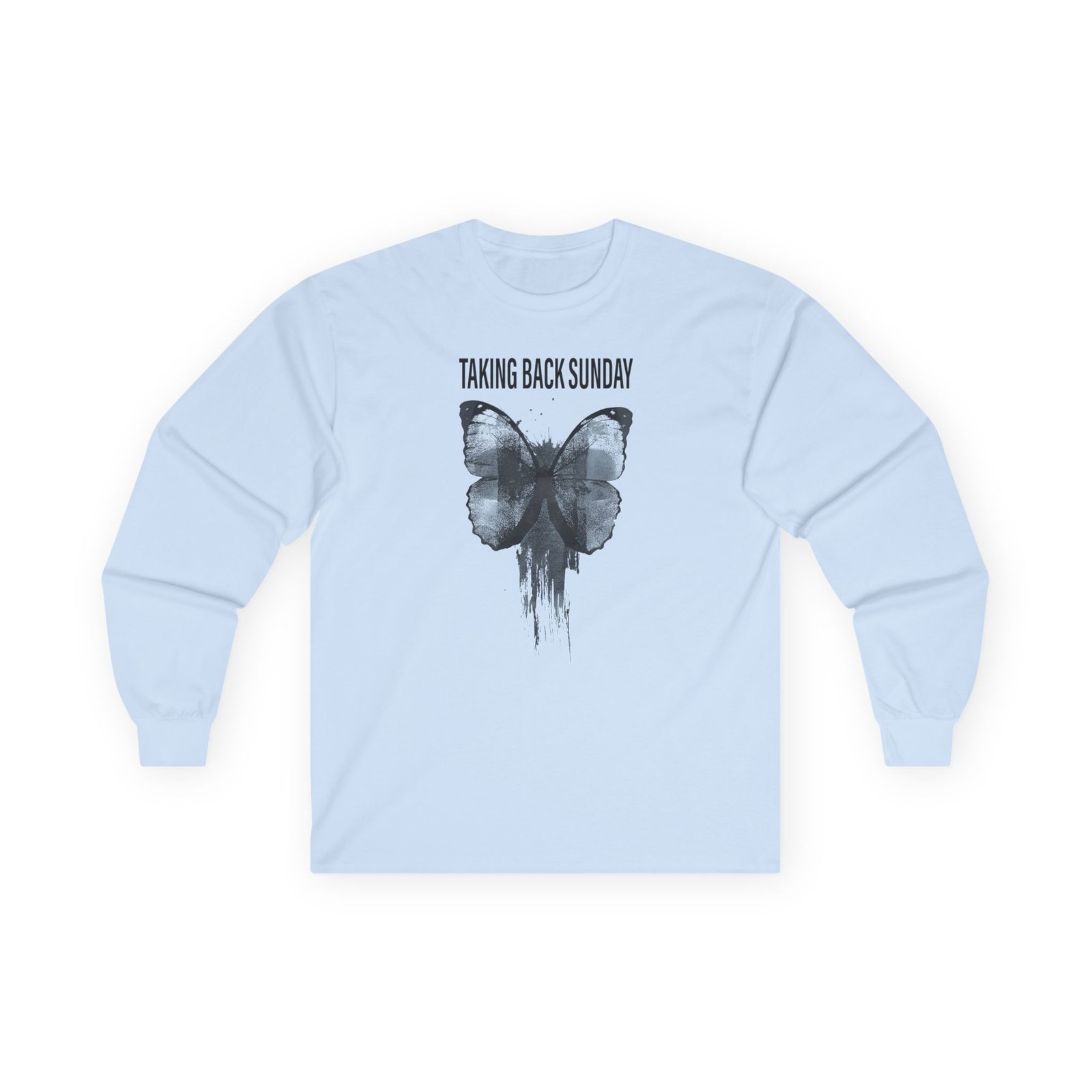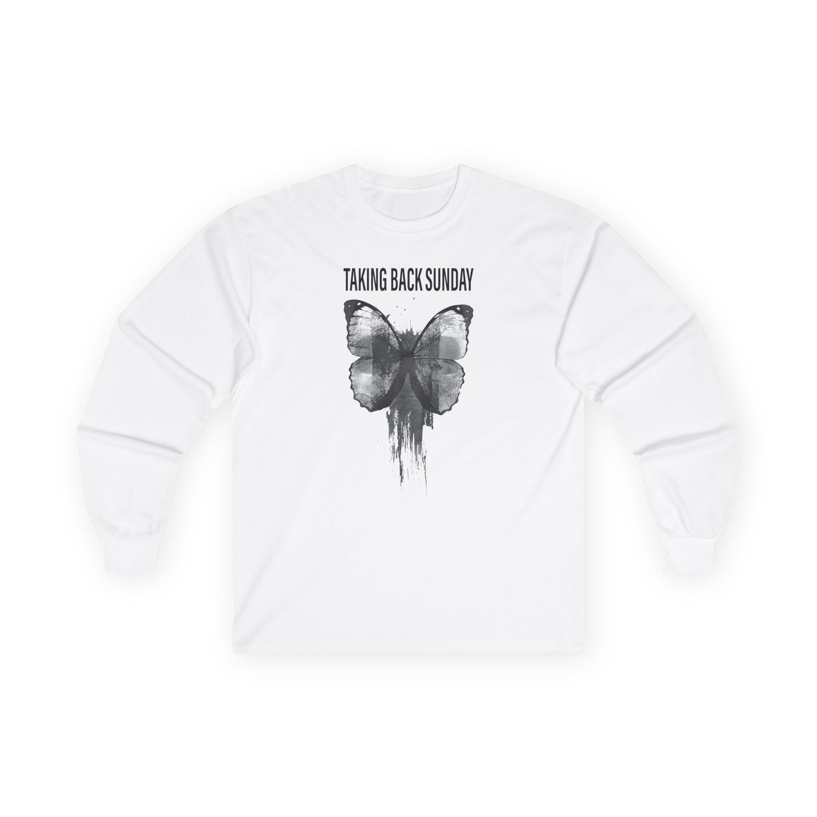 A bit more formal than a standard-issue t-shirt, the Taking Back Sunday Butterfly ultra cotton long sleeve tee is a clear comfort winner. The sleeves also act as a nice frame. There are no side seams. The shoulders are taped for improved durability. This makes for a good fitting around the shoulders and neck. The cotton used for these shirts is environmentally friendly.