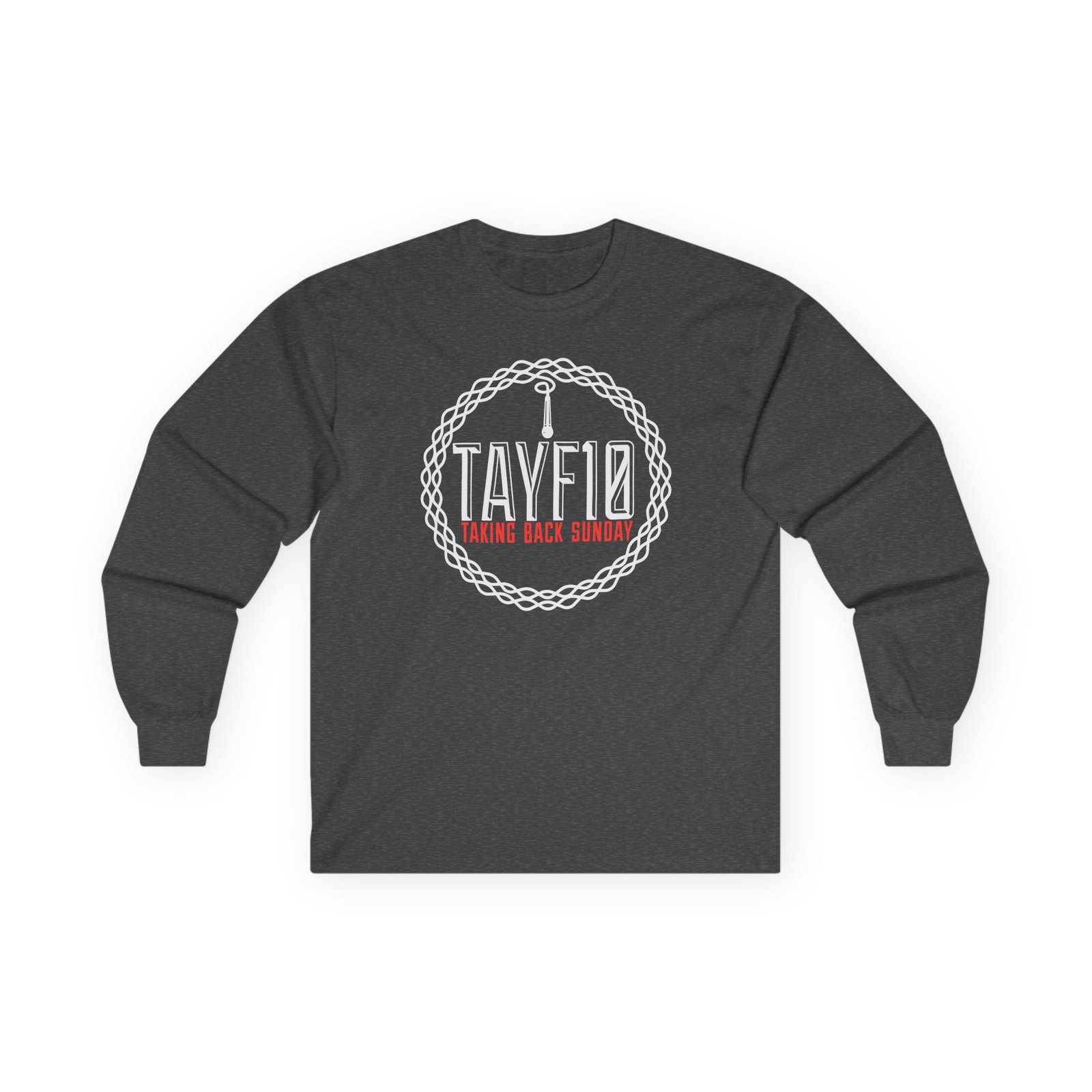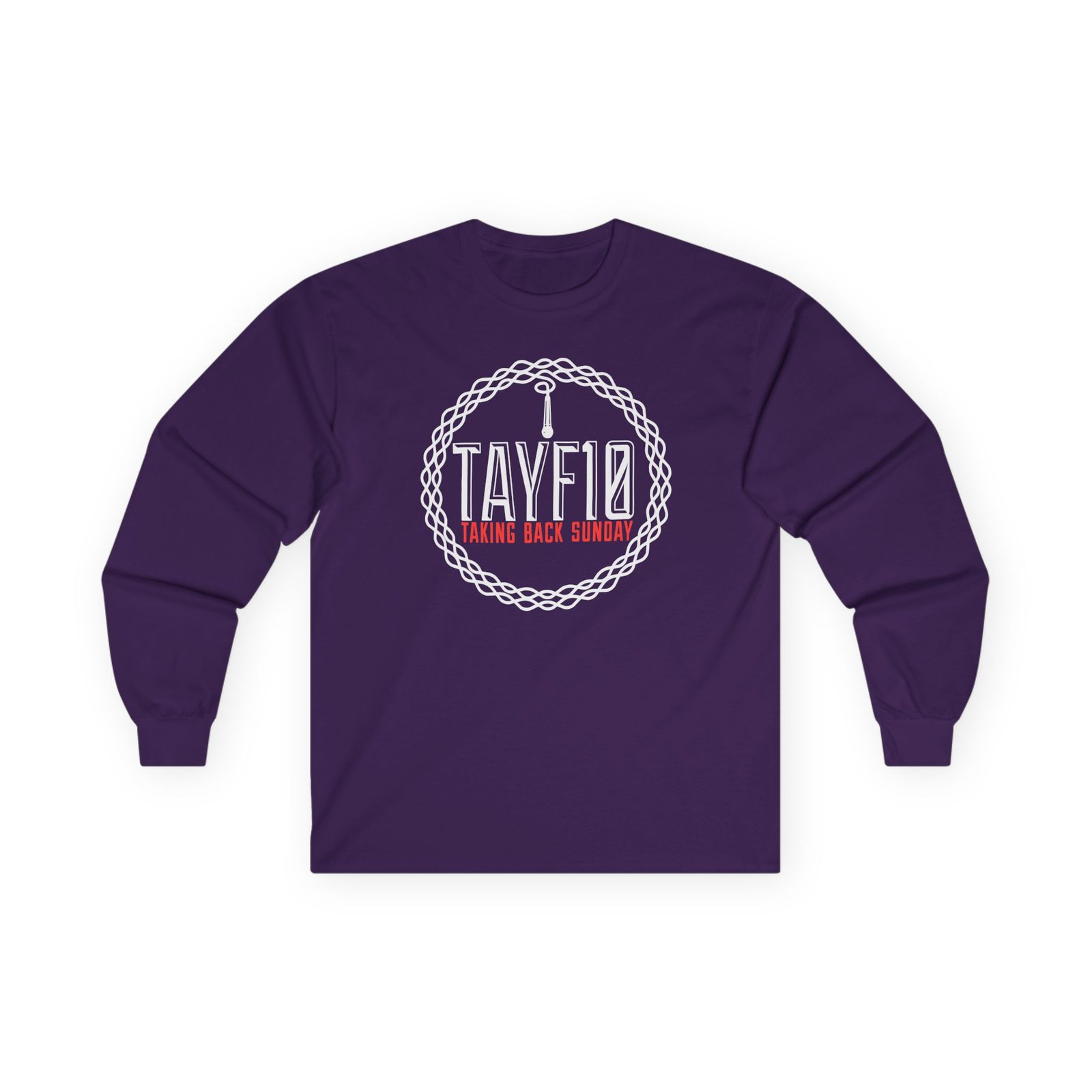 A bit more formal than a standard-issue t-shirt, the Taking Back Sunday Tayf10 Tour ultra cotton long sleeve tee is a clear comfort winner. The sleeves also act as a nice frame. There are no side seams. The shoulders are taped for improved durability. This makes for a good fitting around the shoulders and neck. The cotton used for these shirts is environmentally friendly.