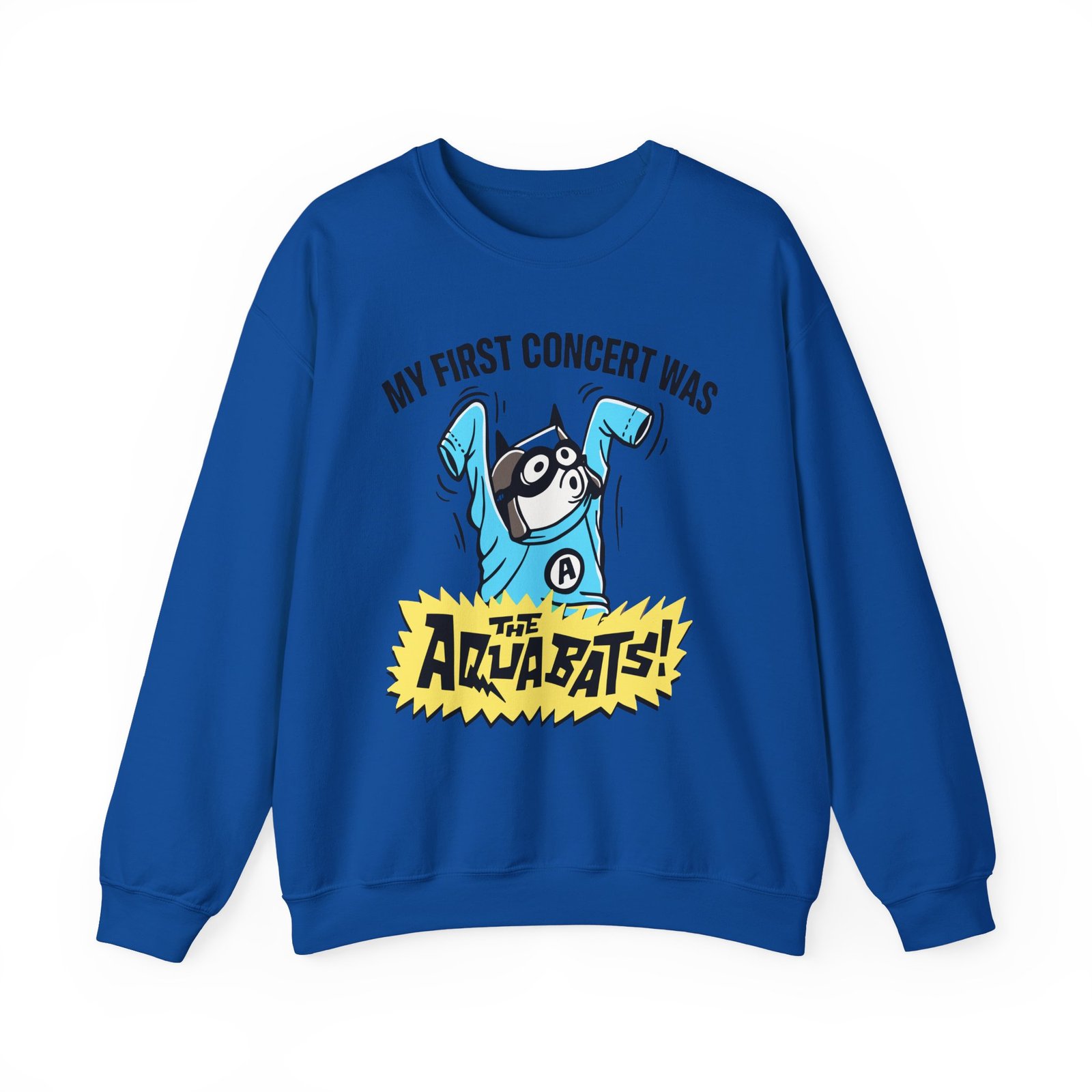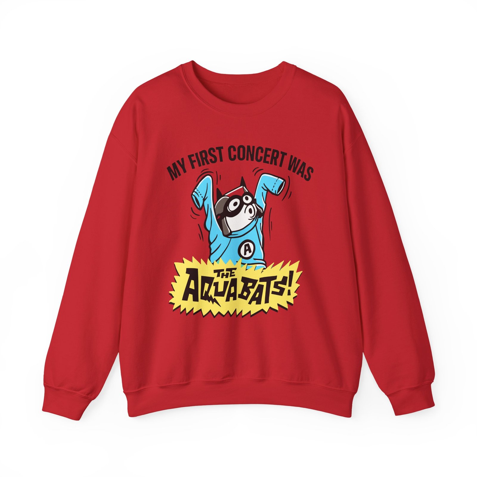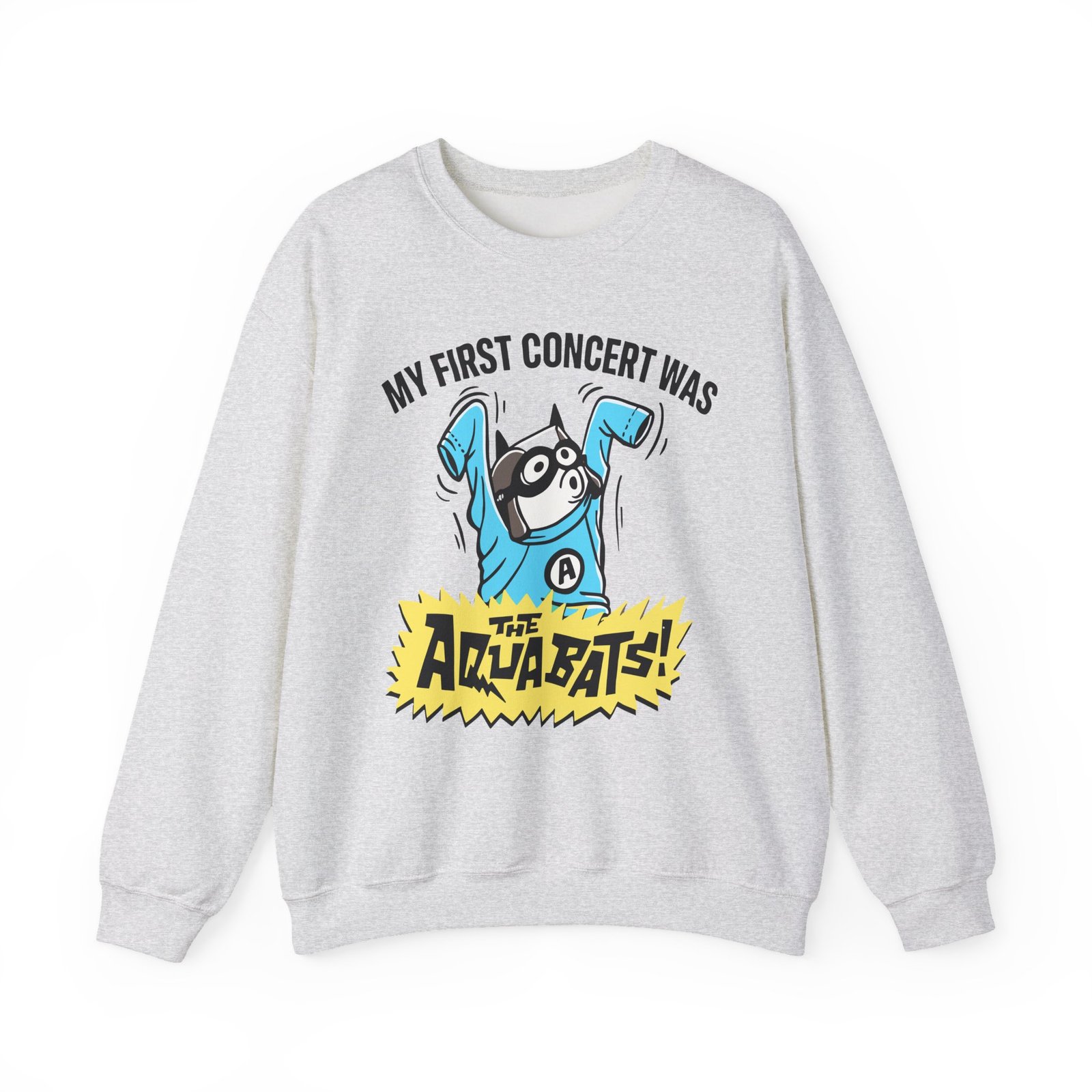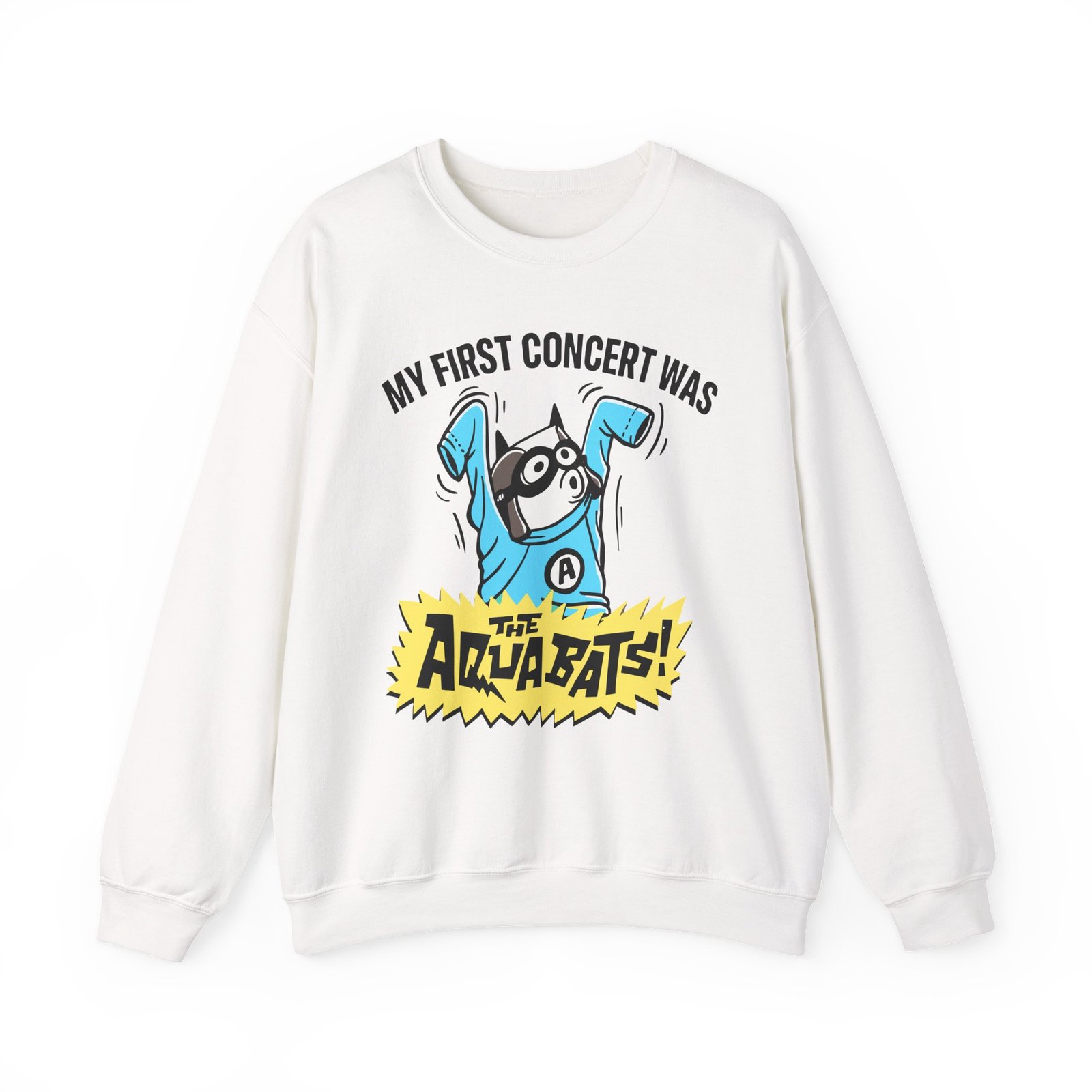 Ideal for any situation, a The Aquabats My First Concert unisex heavy blend crewneck sweatshirt is pure comfort. These garments are made from polyester and cotton. This combination helps designs come out looking fresh and beautiful. The collar is ribbed knit, so it retains its shape even after washing. There are no itchy side seams on these sweaters.