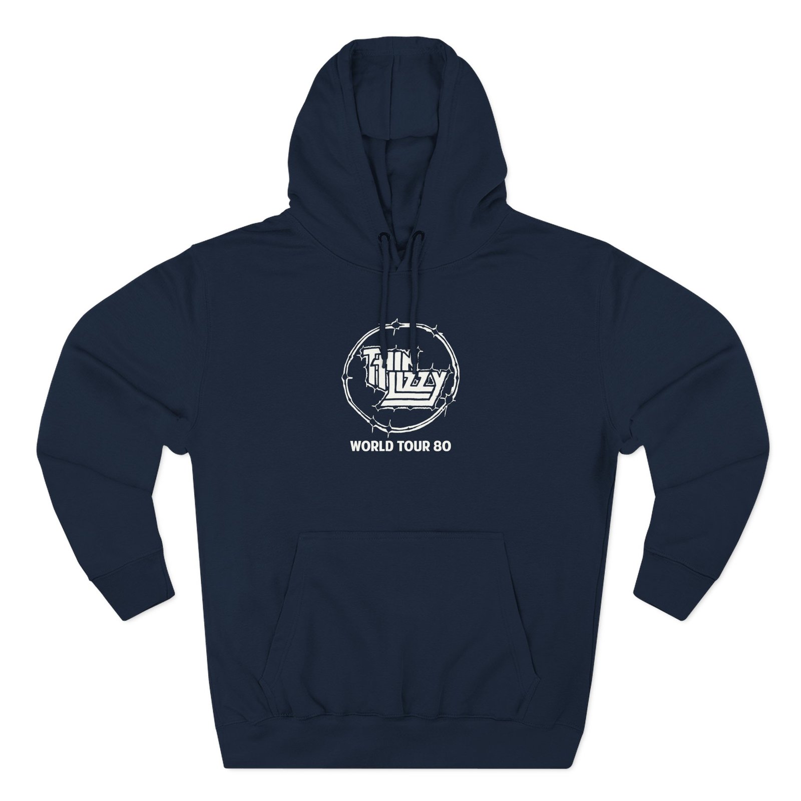 Beat the cold with this Thin Lizzy World Tour 80 premium pullover hoodie that’s just the right layer of warm and cozy. Made with three-panel fleece lining, this pullover is double stitched for durability and roomy. Pick one in your favorite color to match your style.