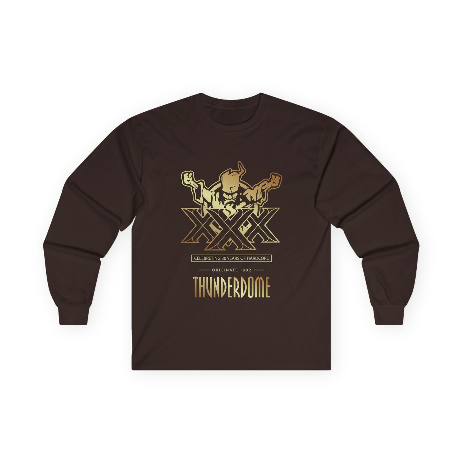 A bit more formal than a standard-issue t-shirt, the Thunderdome 30 Years of Hardcore ultra cotton long sleeve tee is a clear comfort winner. The sleeves also act as a nice frame. There are no side seams. The shoulders are taped for improved durability. This makes for a good fitting around the shoulders and neck. The cotton used for these shirts is environmentally friendly.