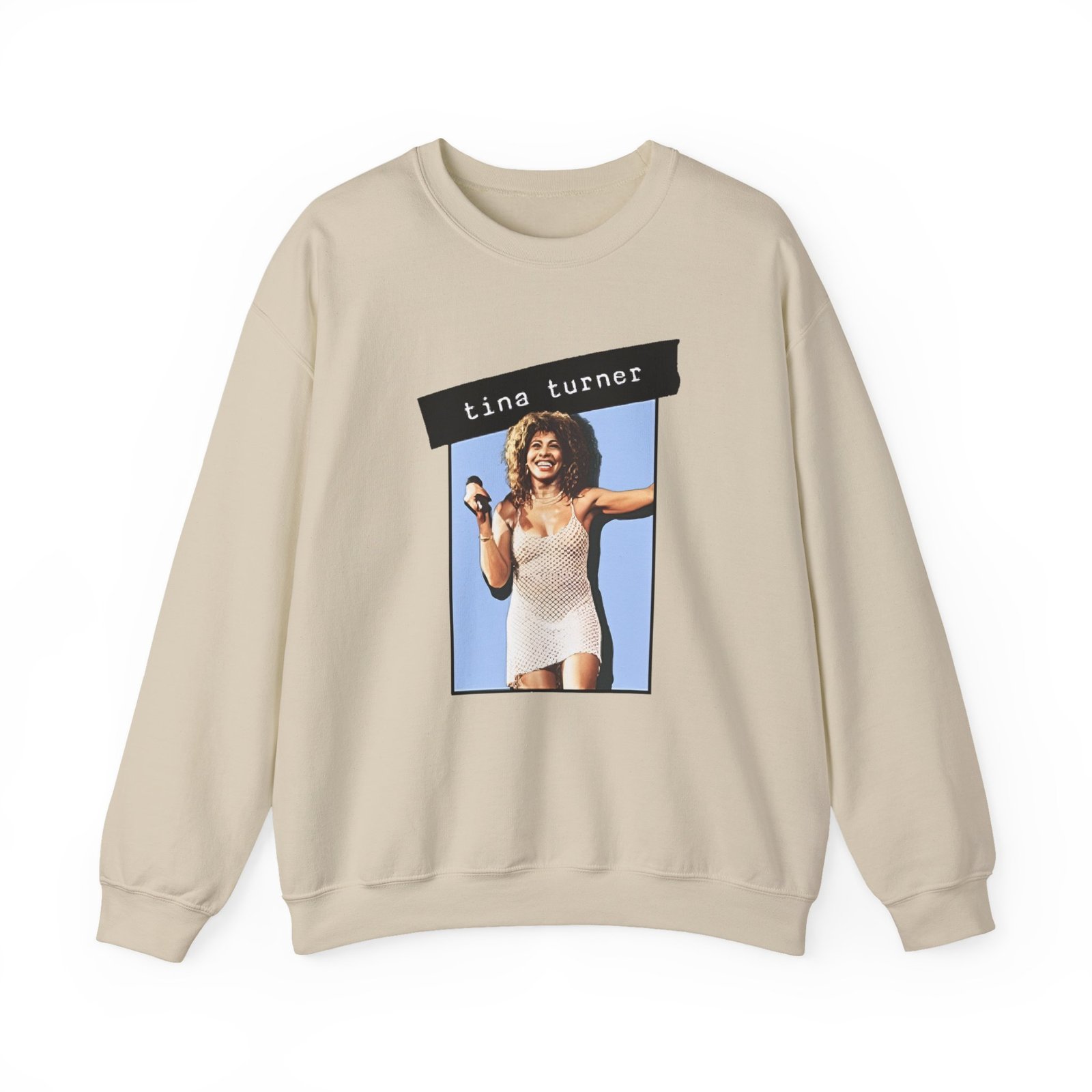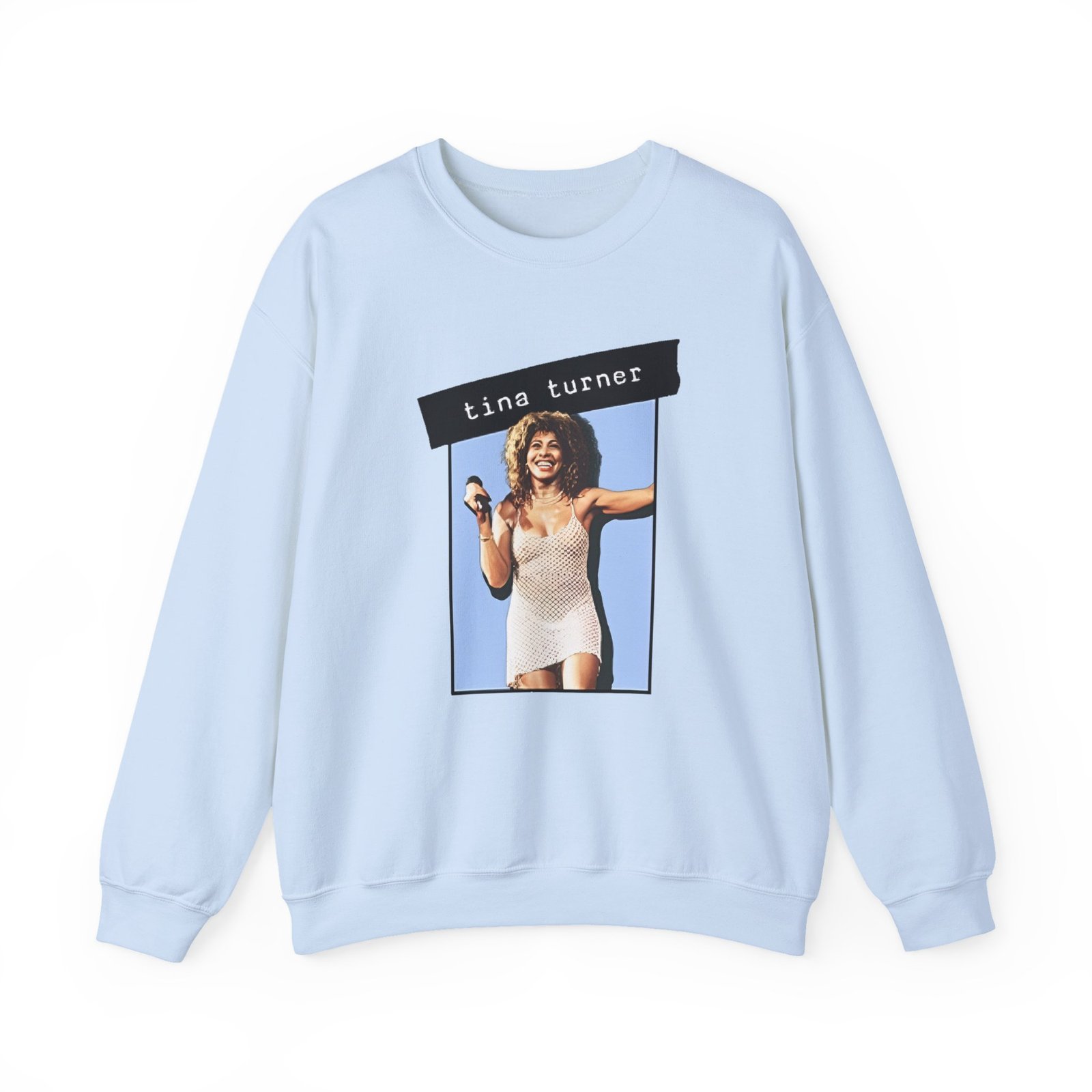 Ideal for any situation, a Tina Turner unisex heavy blend crewneck sweatshirt is pure comfort. These garments are made from polyester and cotton. This combination helps designs come out looking fresh and beautiful. The collar is ribbed knit, so it retains its shape even after washing. There are no itchy side seams on these sweaters.