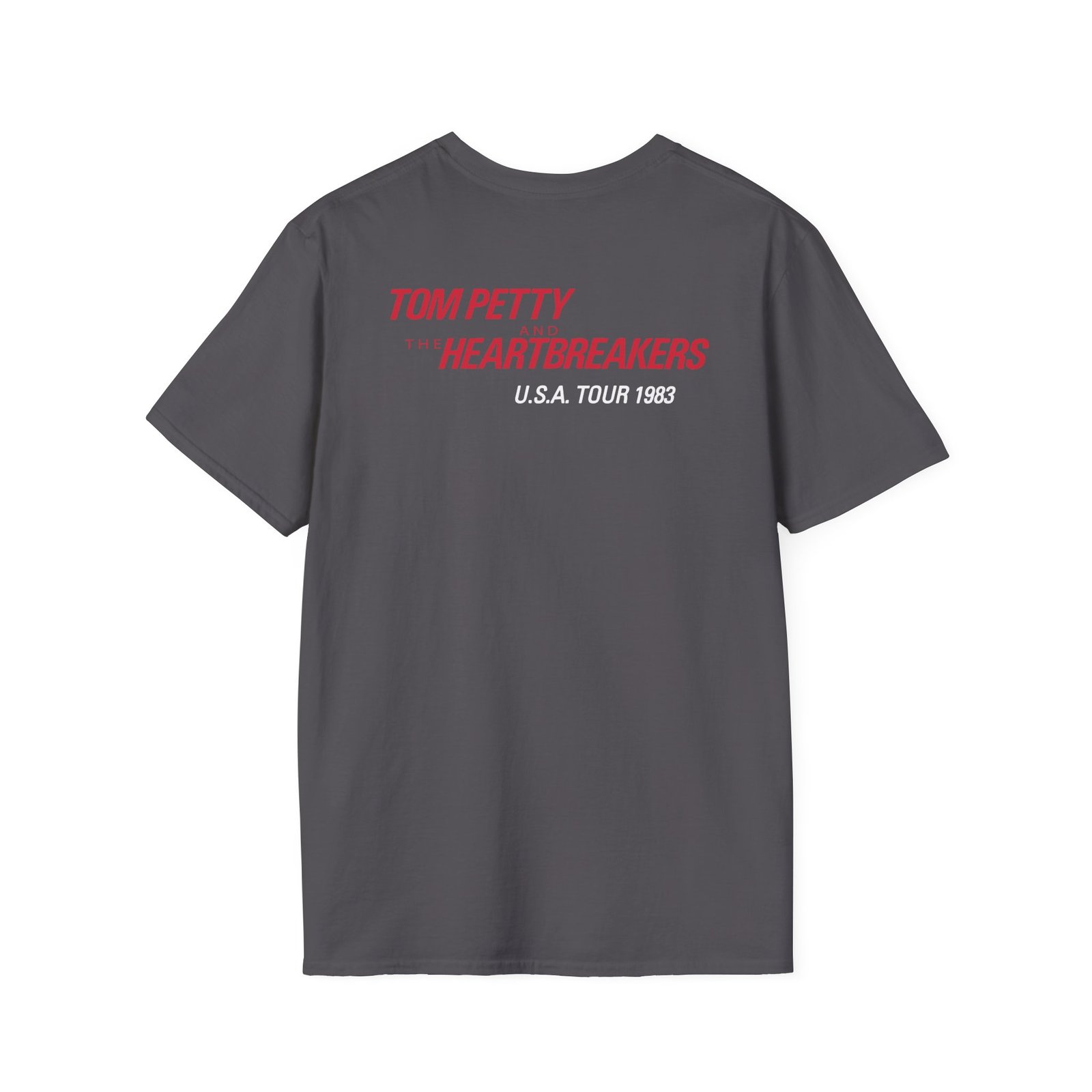 The Tom Petty 1983 Long After Dark Tour unisex soft-style t-shirt puts a new spin on casual comfort. Made from very soft materials, this tee is 100% cotton for solid colors. Heather colors and sports grey include polyester. The shoulders have twill tape for improved durability. There are no side seams. The collar is made with ribbed knitting to prevent curling damage.