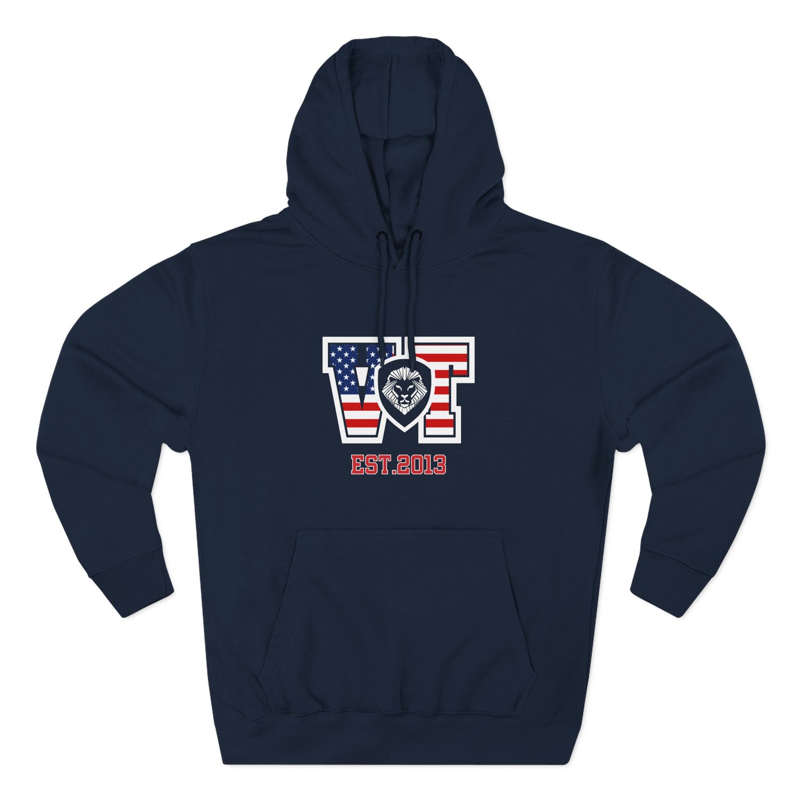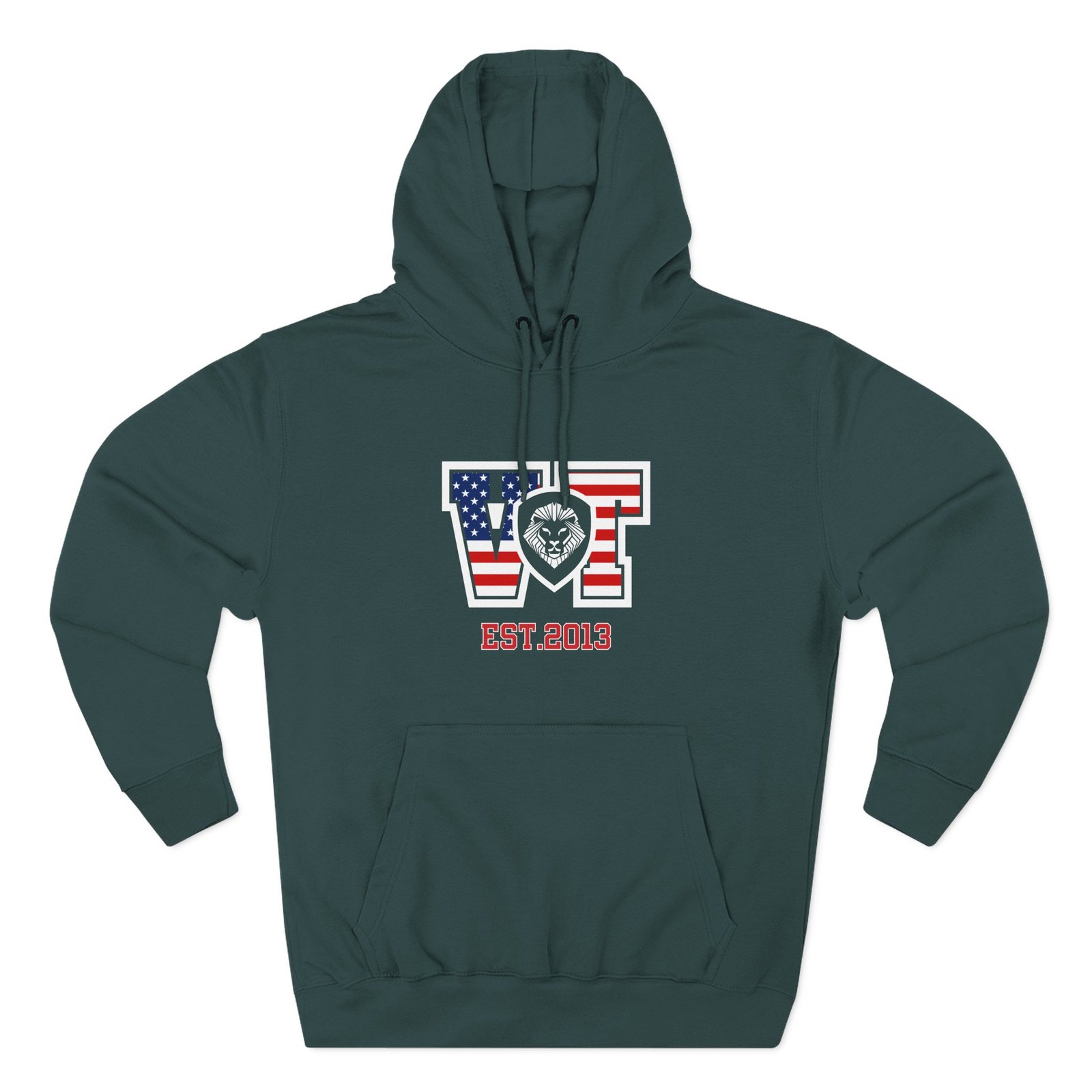 Beat the cold with this Valuetainment Collegiate Vt premium pullover hoodie that’s just the right layer of warm and cozy. Made with three-panel fleece lining, this pullover is double stitched for durability and roomy. Pick one in your favorite color to match your style.