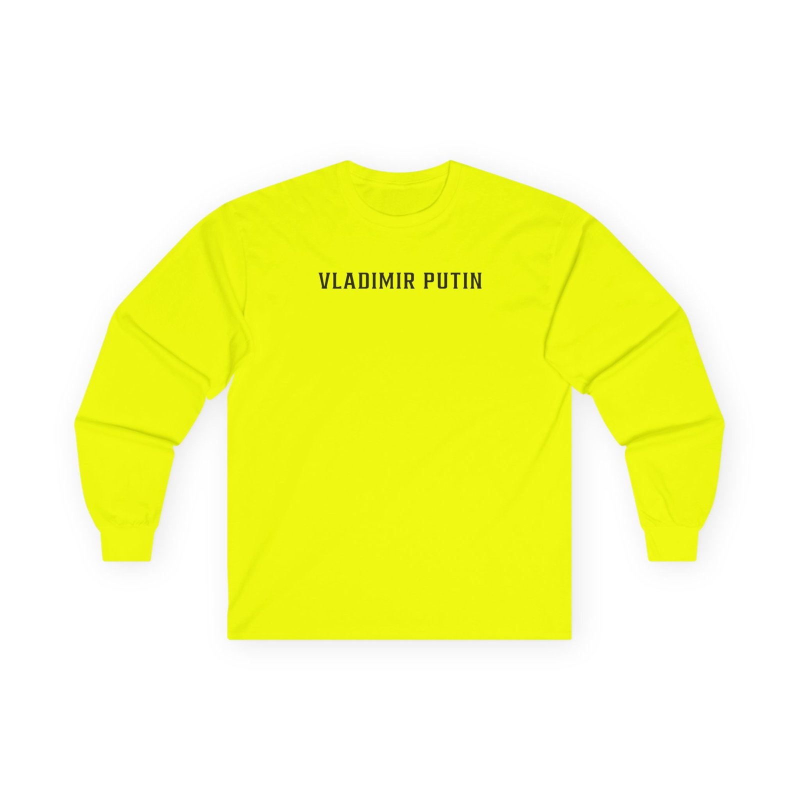 A bit more formal than a standard-issue t-shirt, the Vladimir Putin ultra cotton long sleeve tee is a clear comfort winner. The sleeves also act as a nice frame. There are no side seams. The shoulders are taped for improved durability. This makes for a good fitting around the shoulders and neck. The cotton used for these shirts is environmentally friendly.
