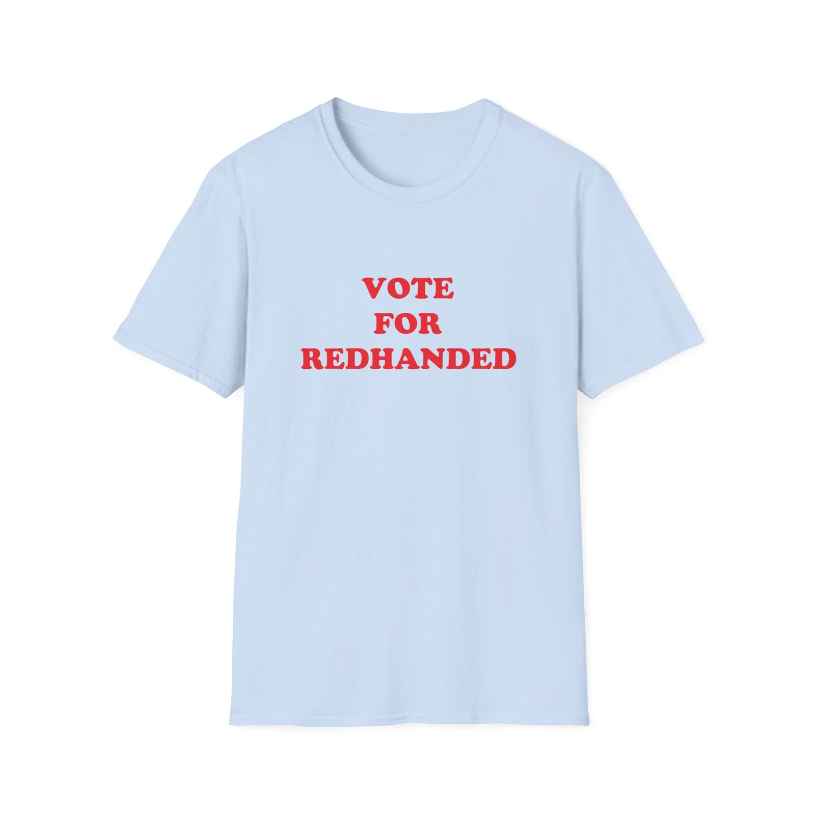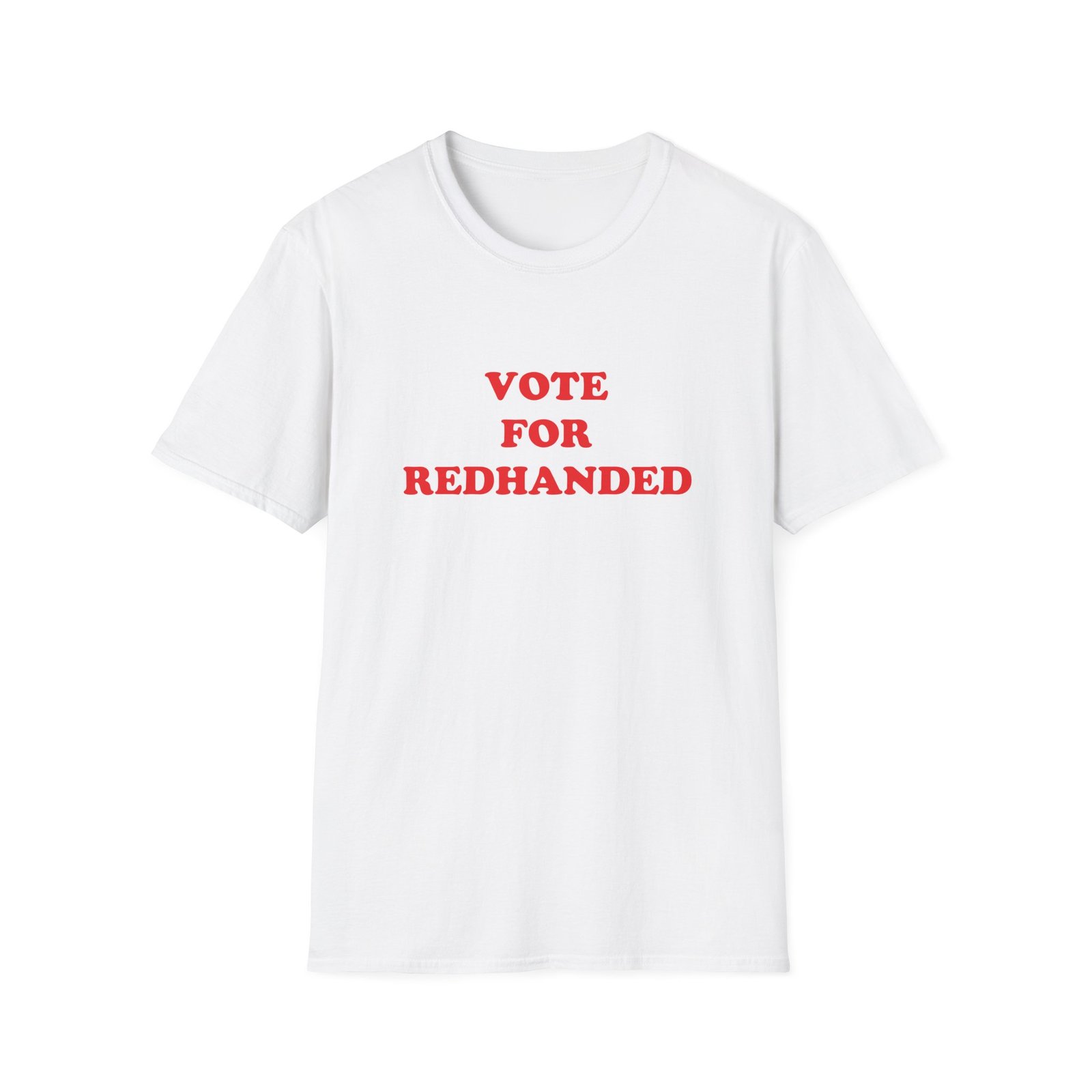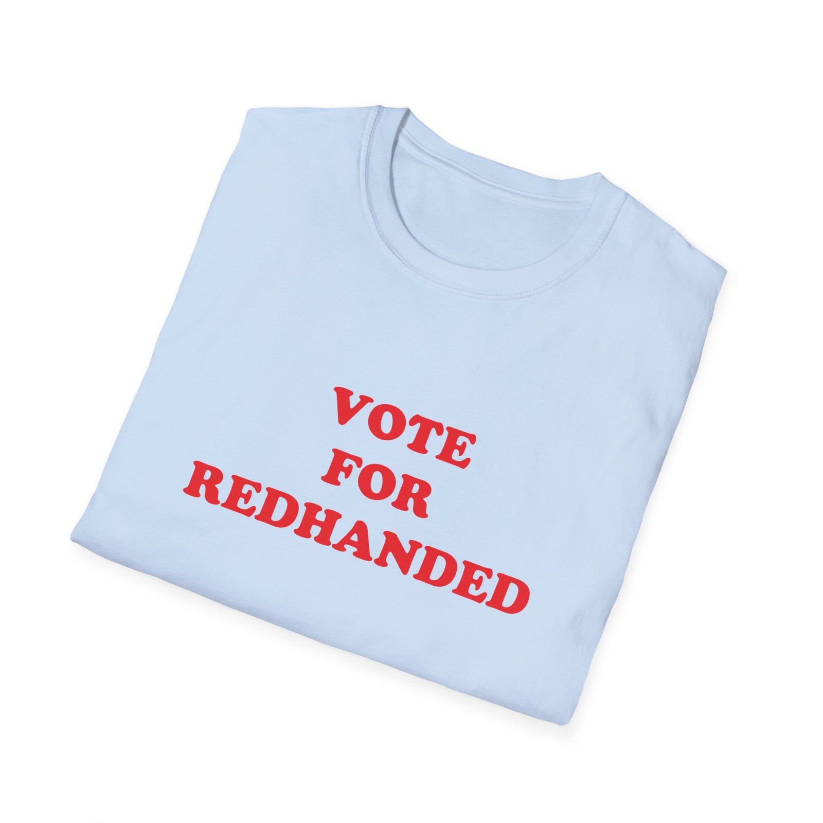 The Vote for Redhanded unisex soft-style t-shirt puts a new spin on casual comfort. Made from very soft materials, this tee is 100% cotton for solid colors. Heather colors and sports grey include polyester. The shoulders have twill tape for improved durability. There are no side seams. The collar is made with ribbed knitting to prevent curling damage.
